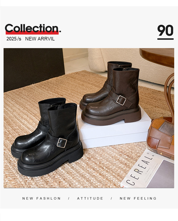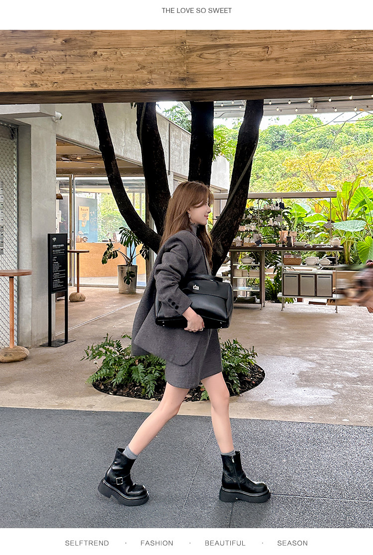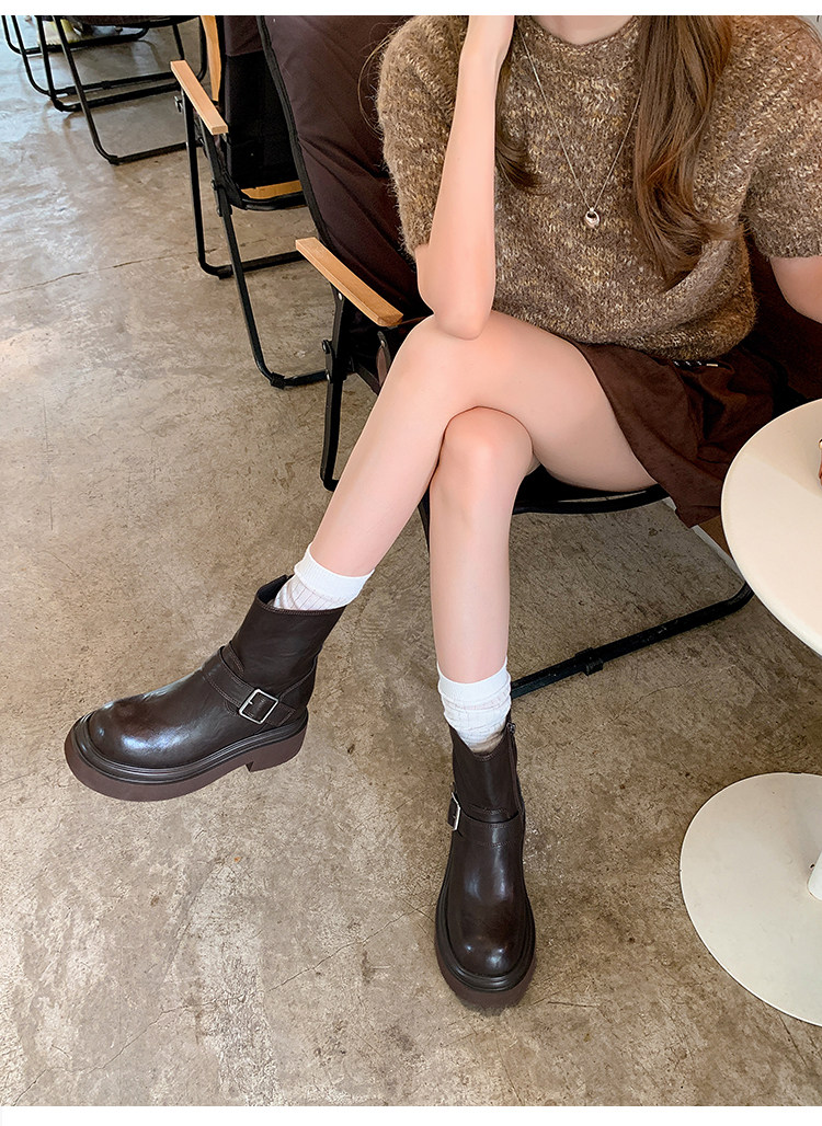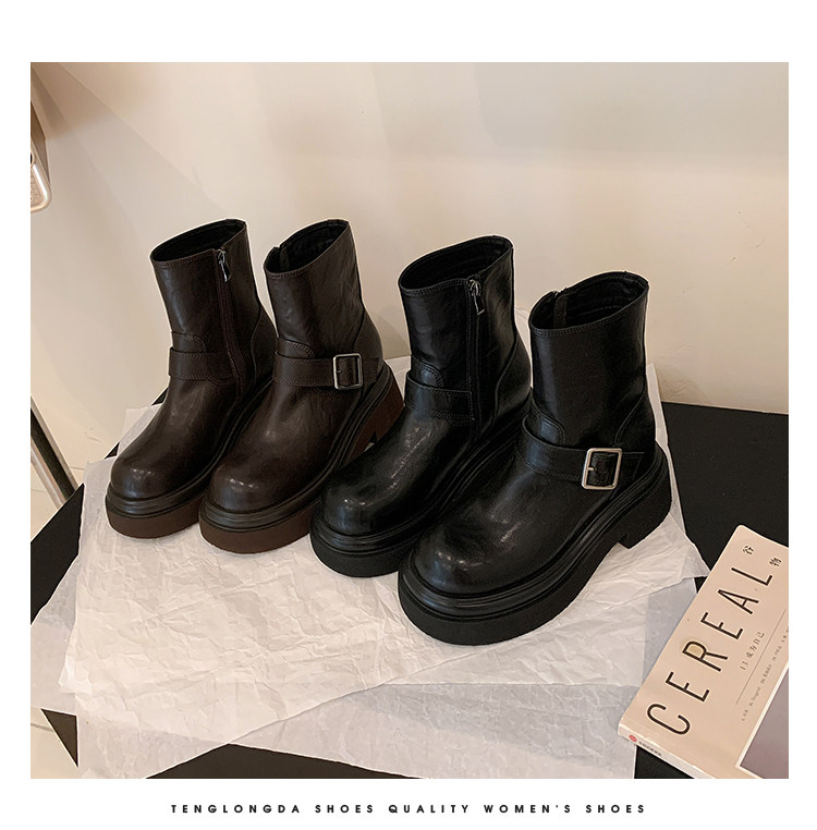 馬大樹 增高10cm~厚底褲琯靴女小個子菸筒靴切爾西馬丁靴顯瘦秋