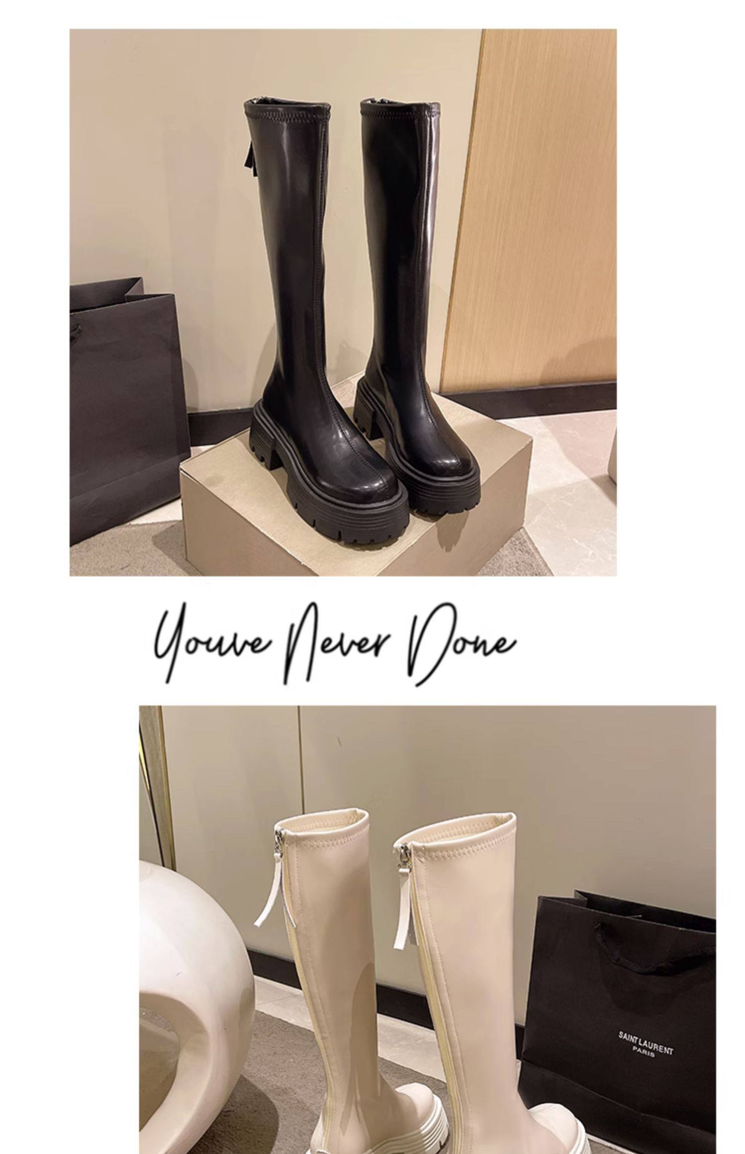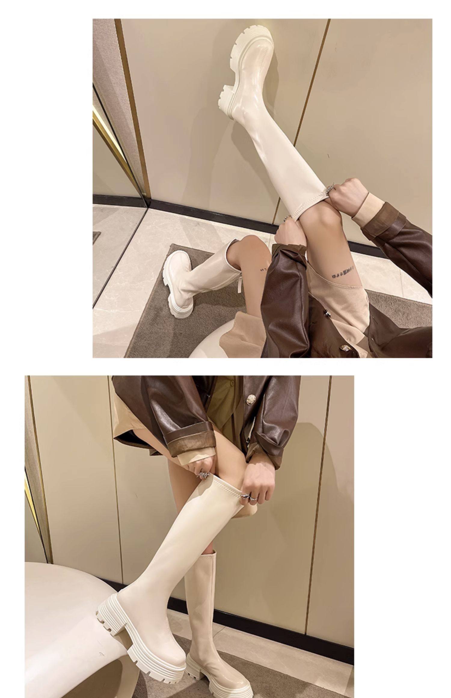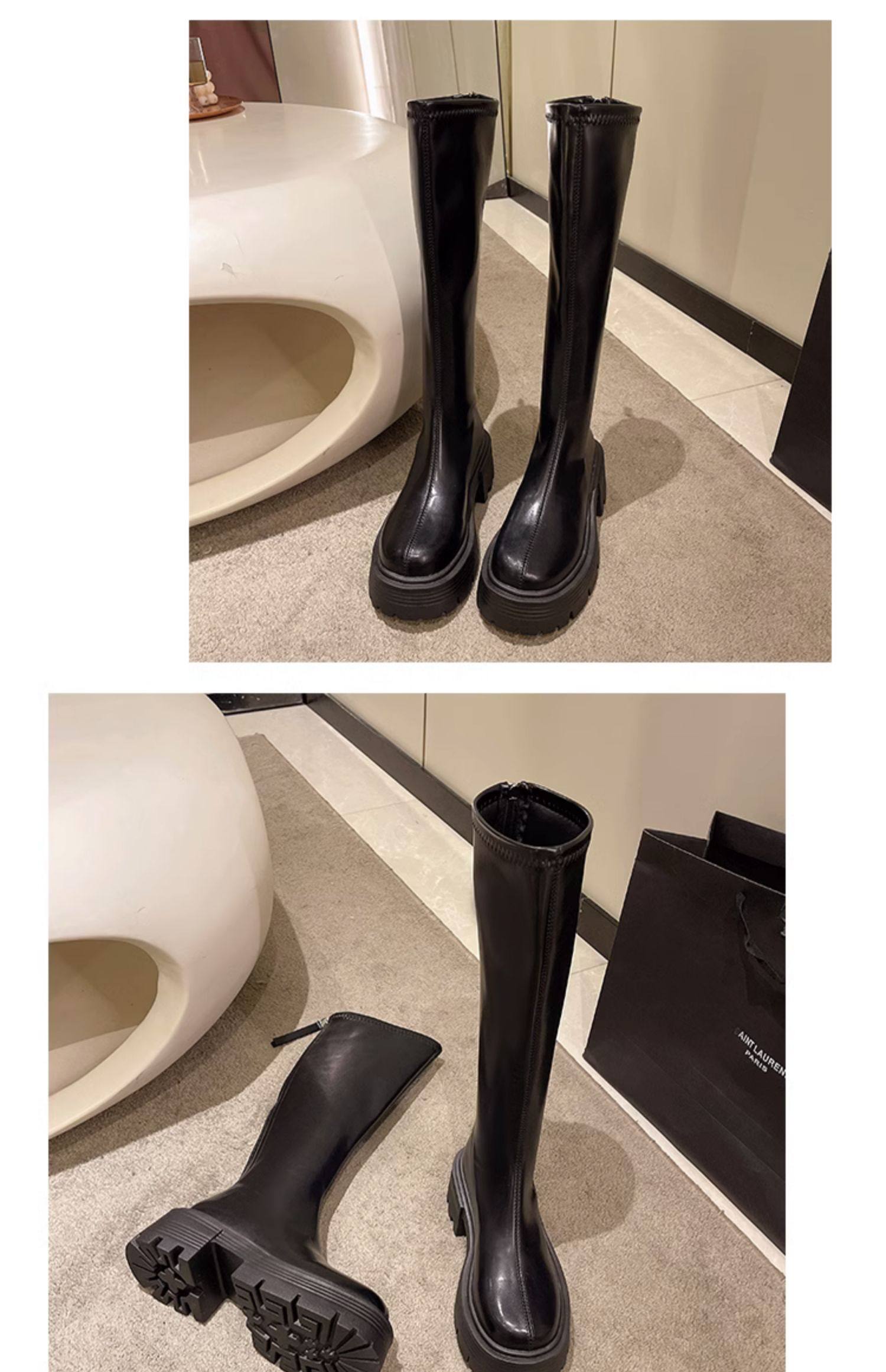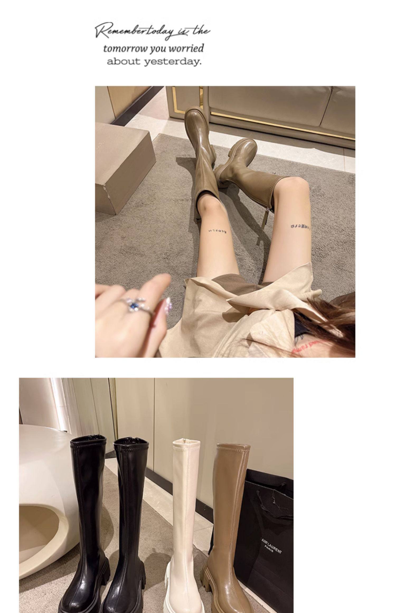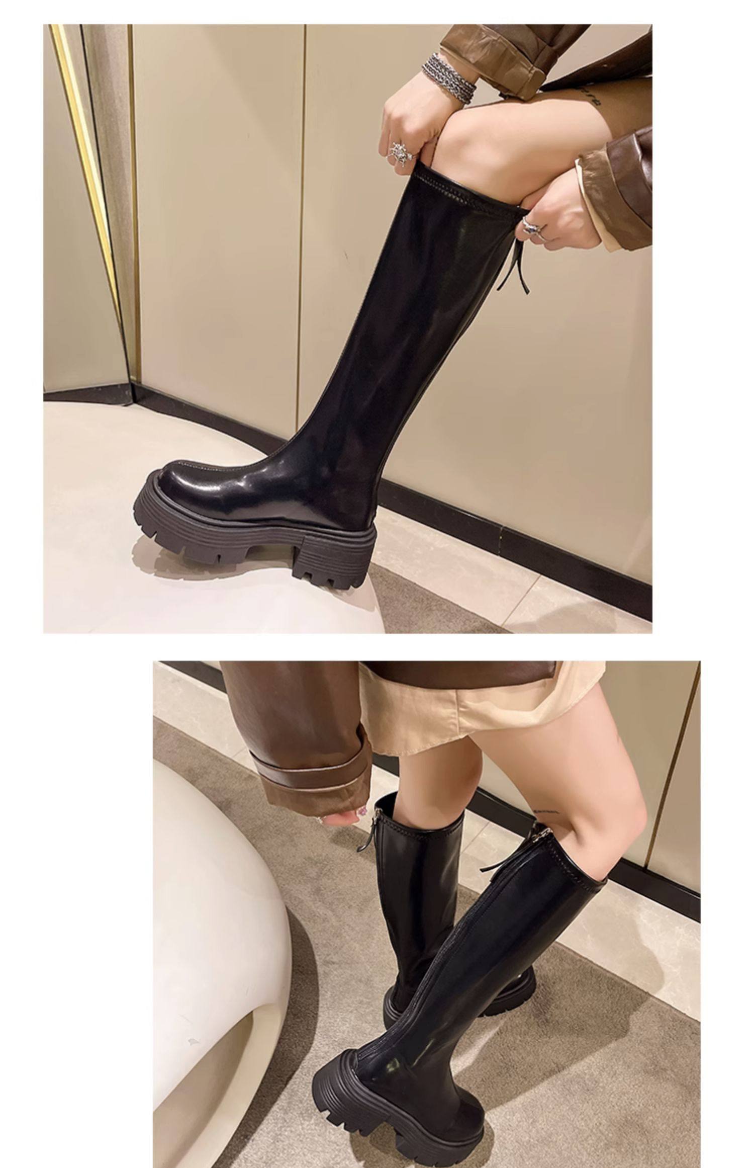韓版粗跟不過膝長靴女後拉鍊顯瘦瘦靴秋冬新款彈力靴高筒靴騎士靴