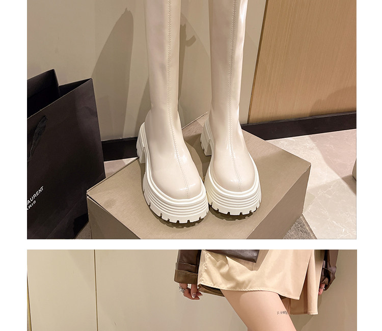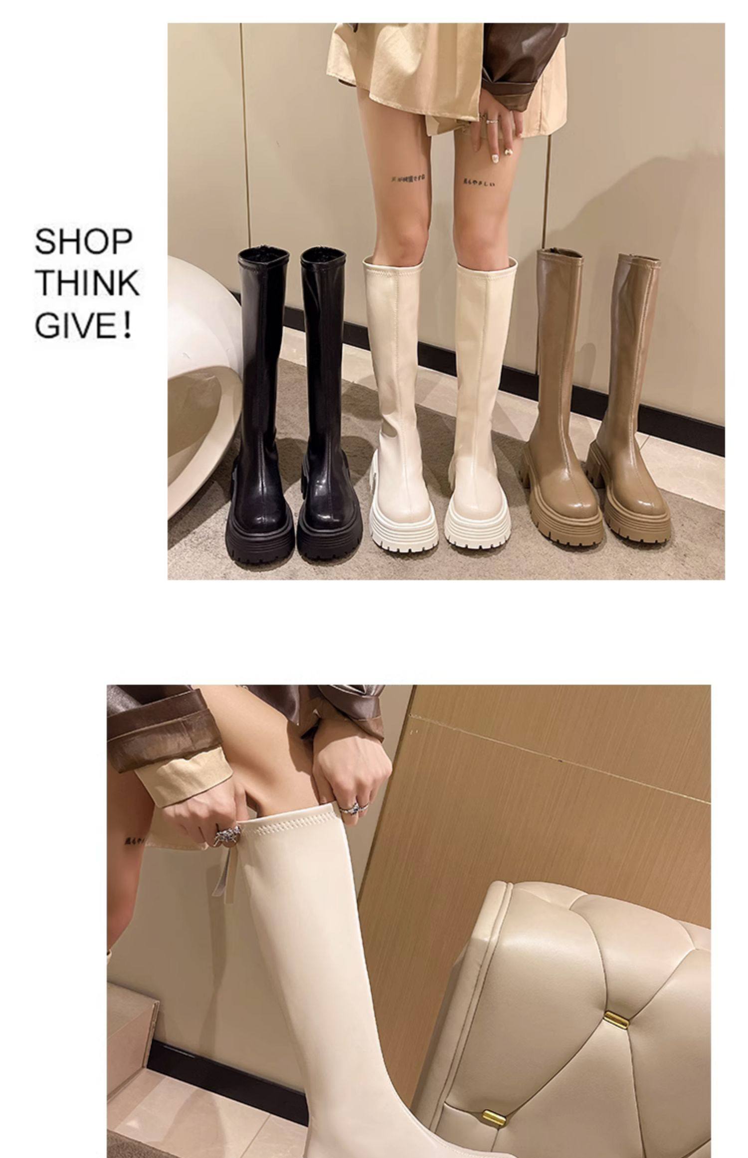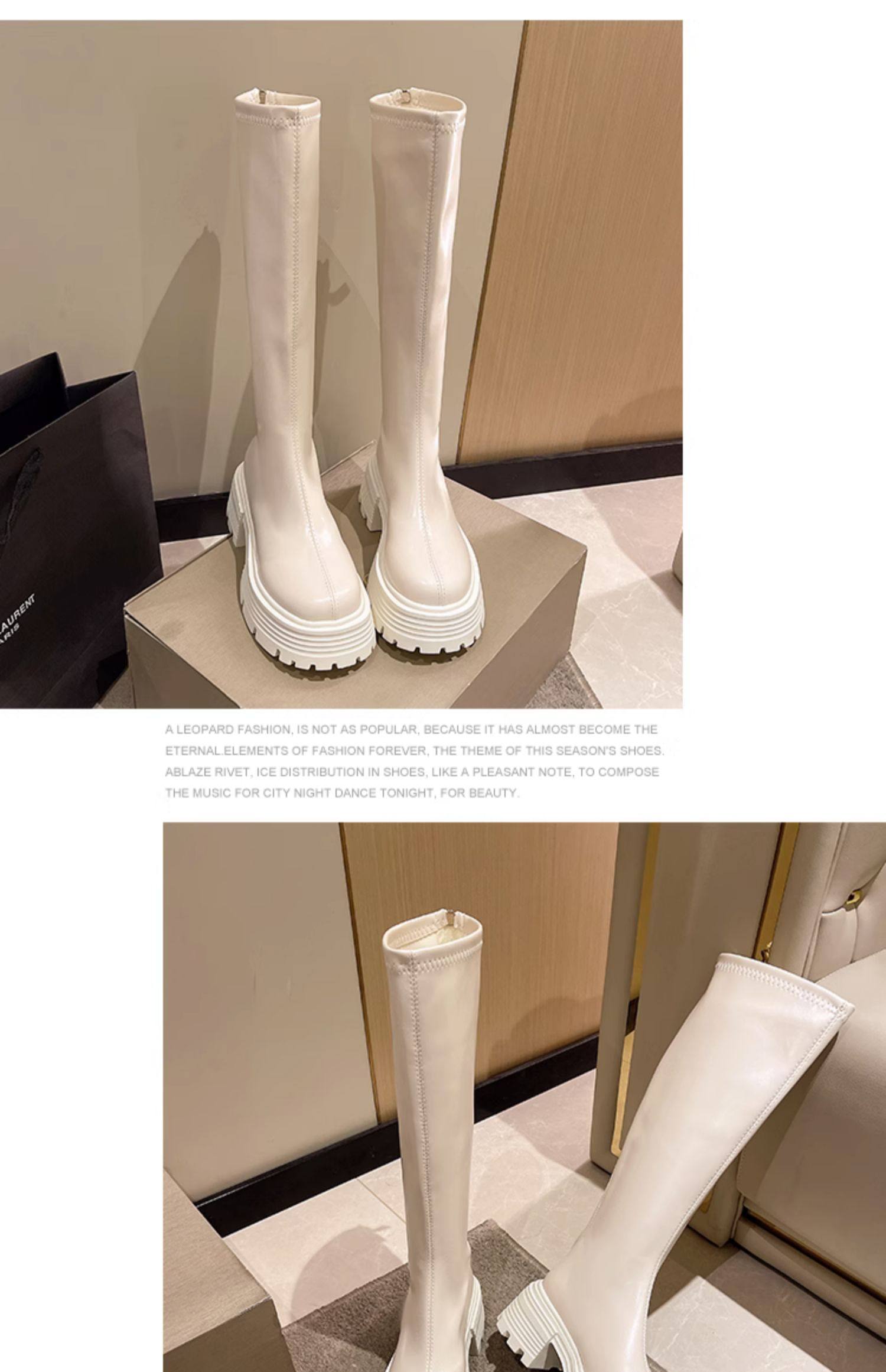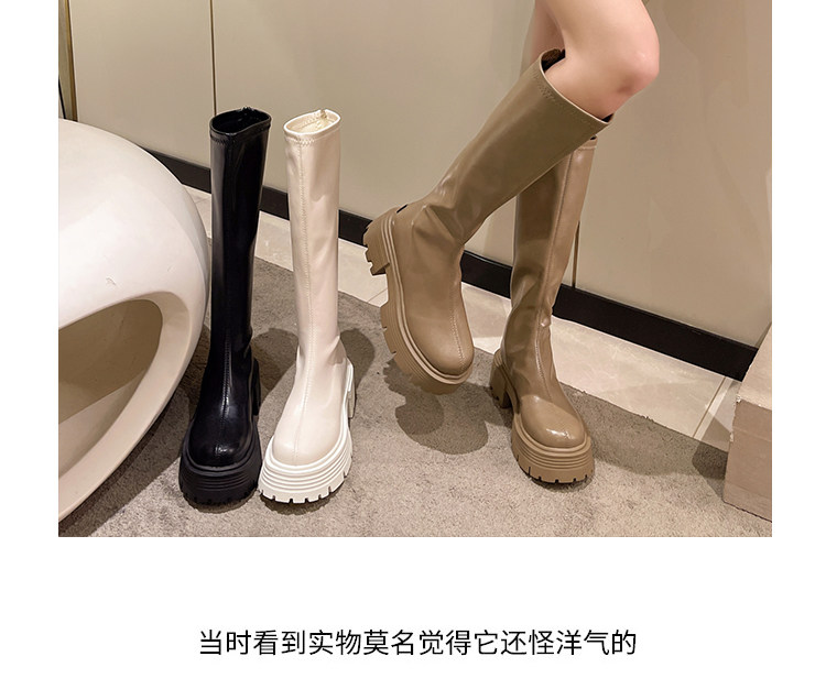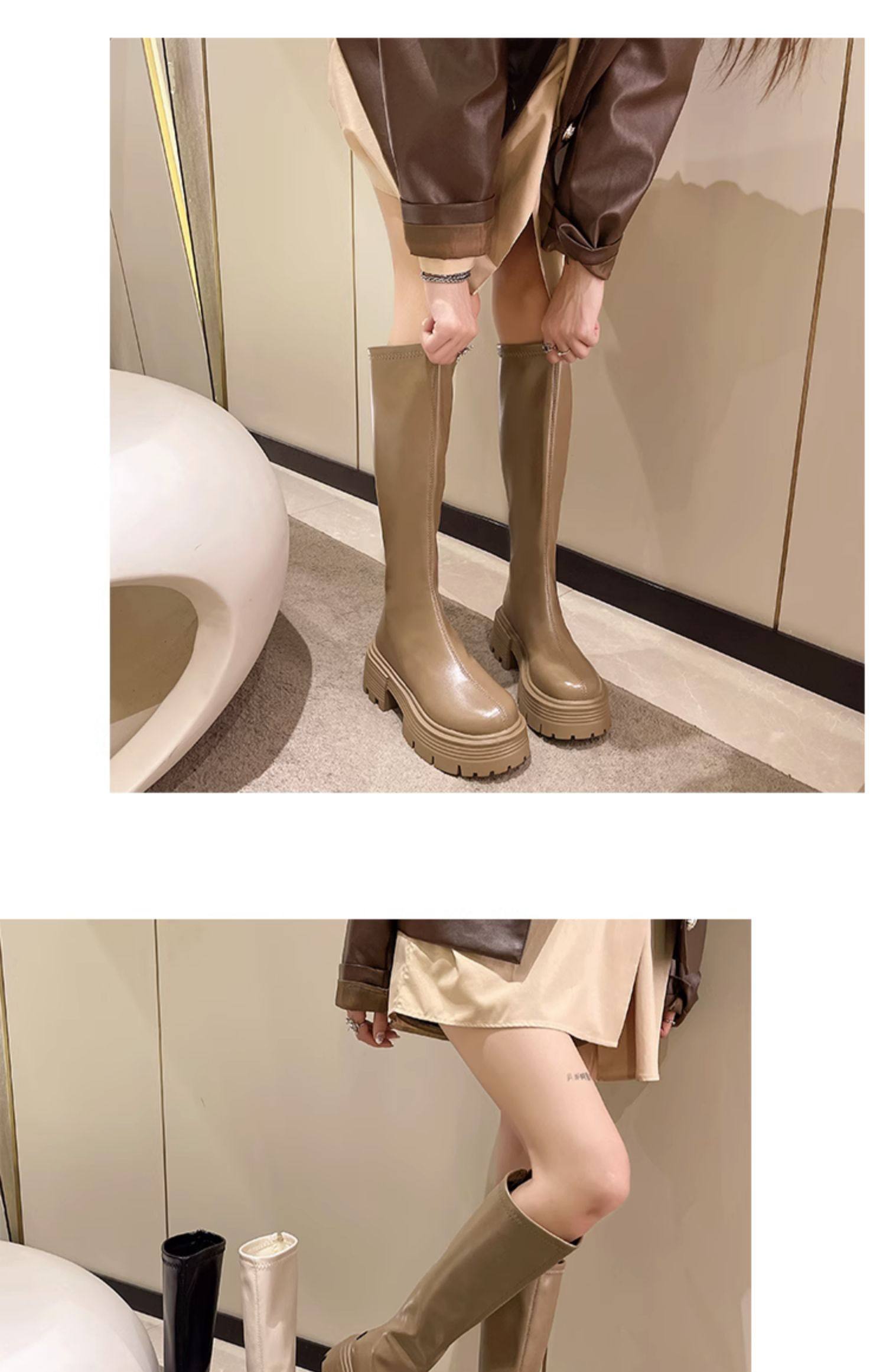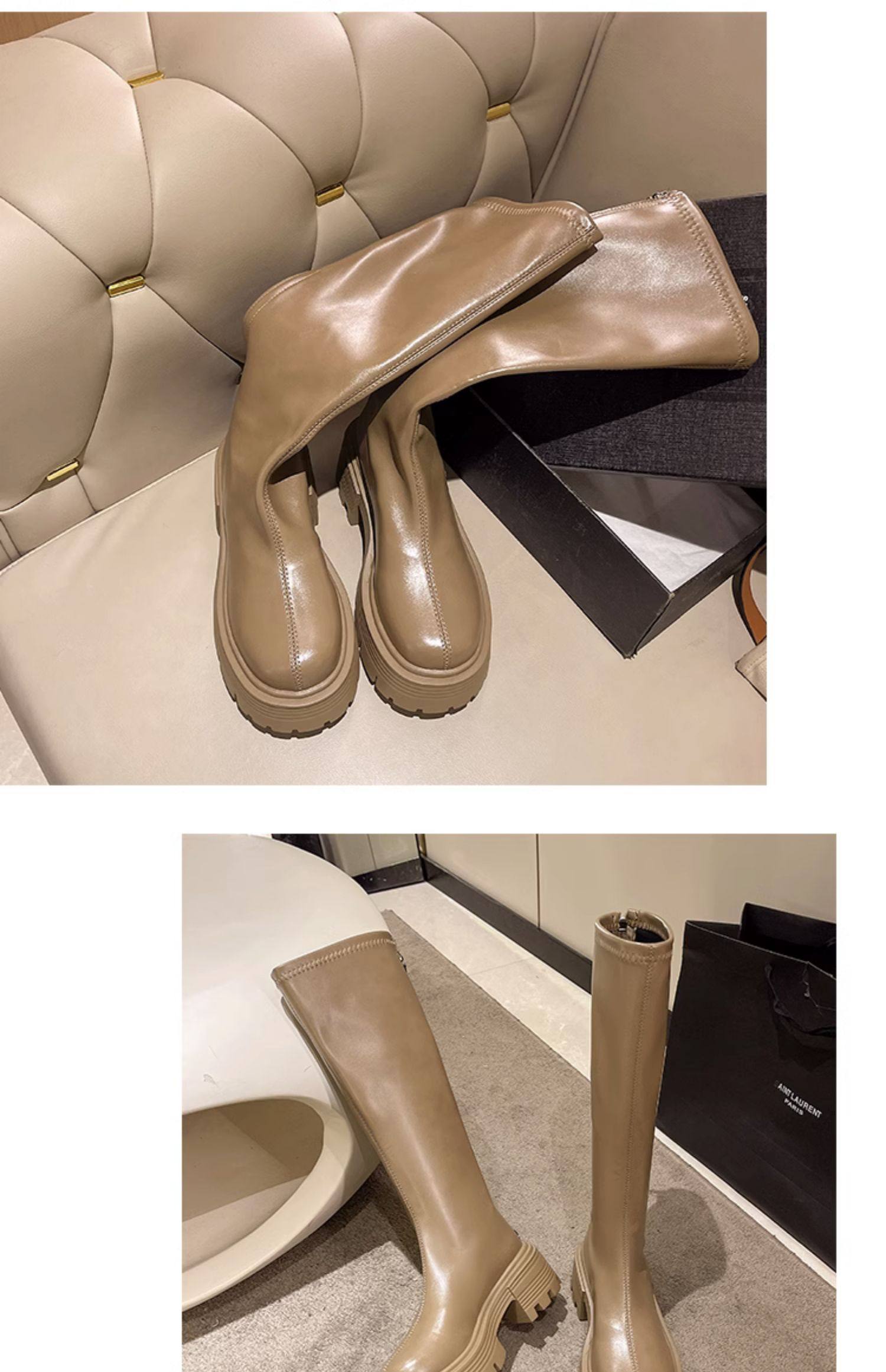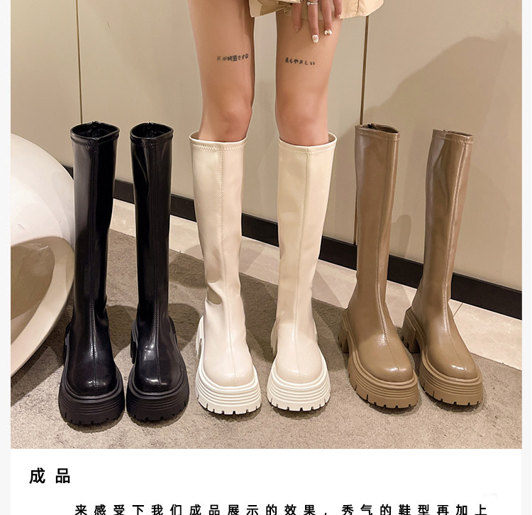 韓版粗跟不過膝長靴女後拉鍊顯瘦瘦靴秋冬新款彈力靴高筒靴騎士靴