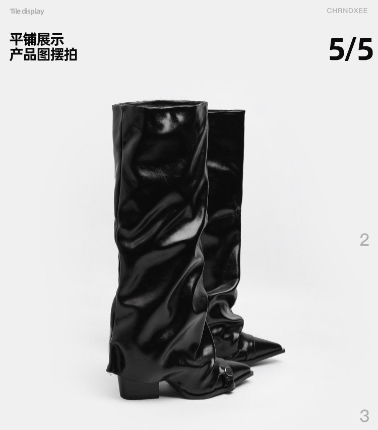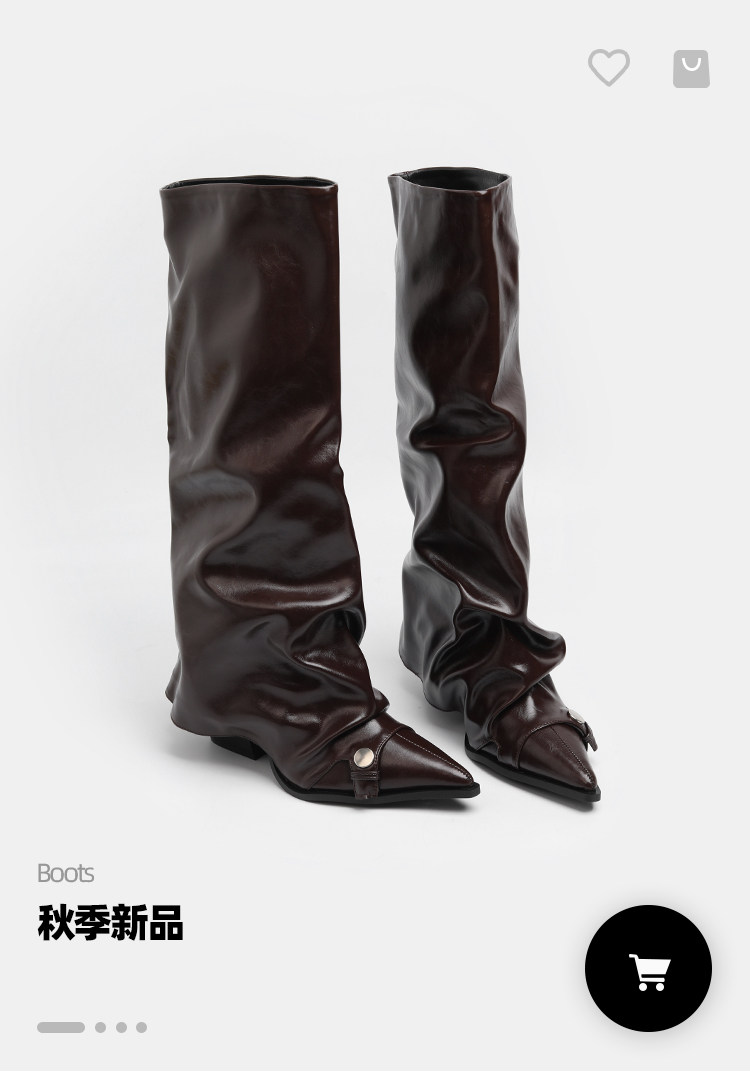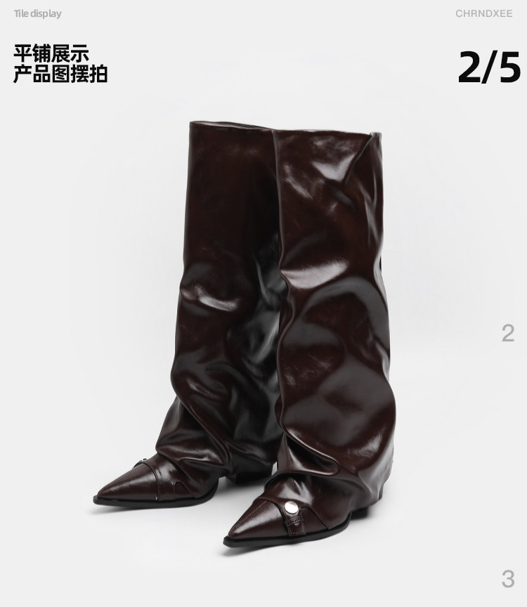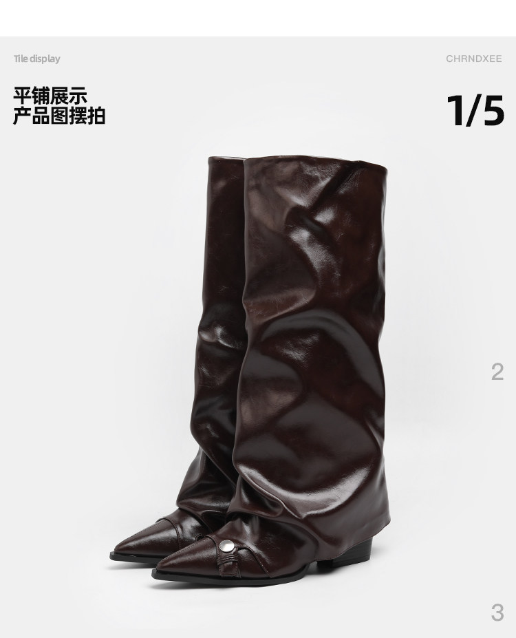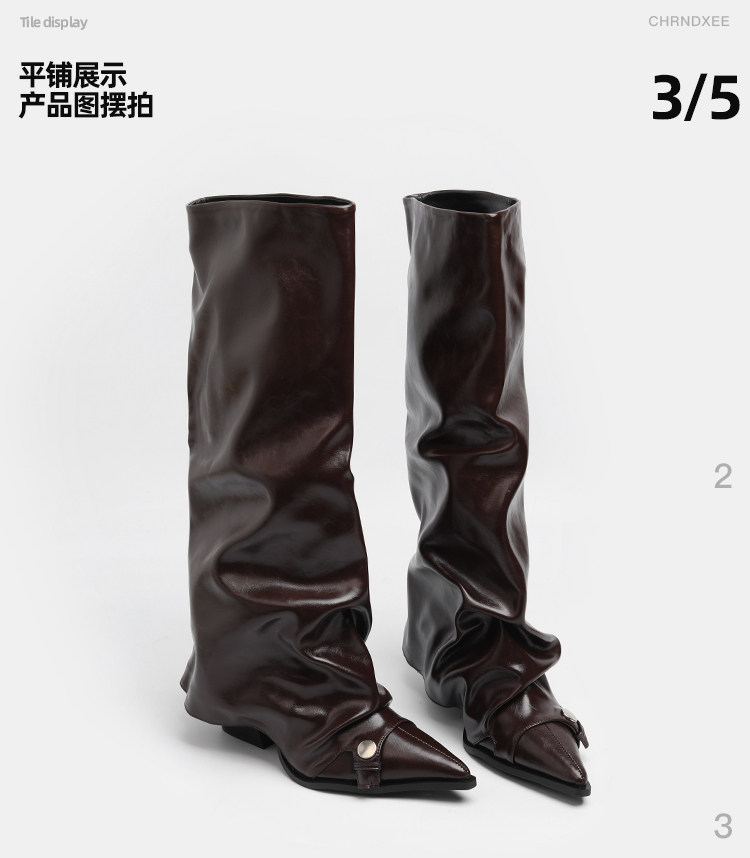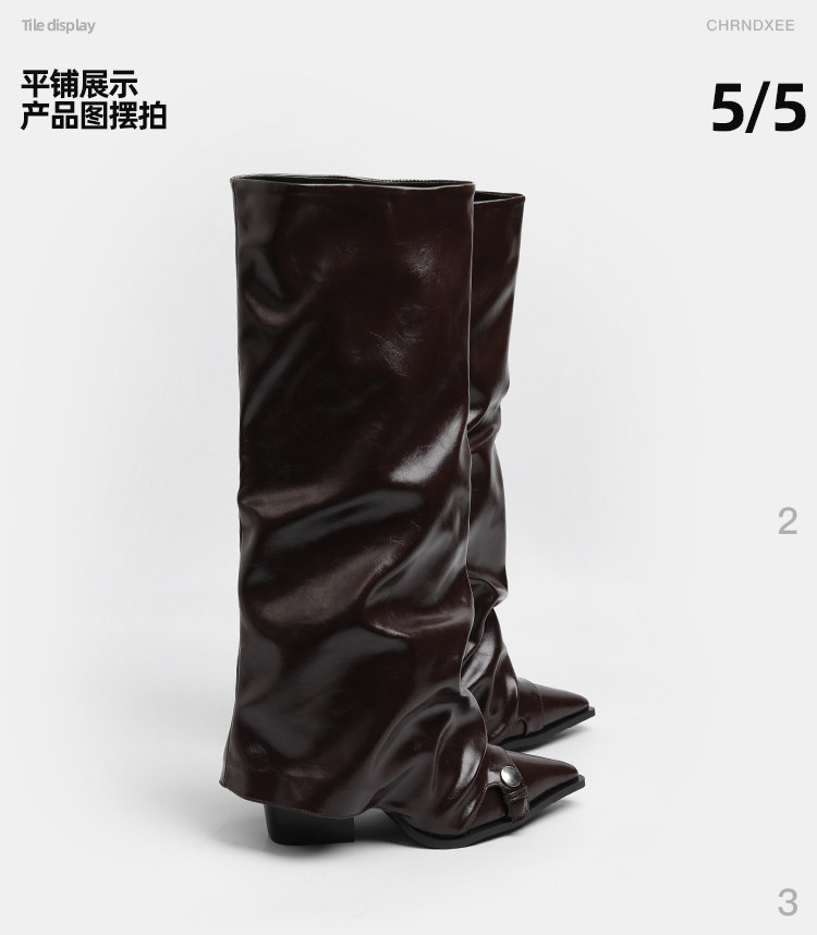 初系丨韓版時裝棕色高筒褶皺堆堆靴女高筒尖頭高跟不過膝褲琯長靴