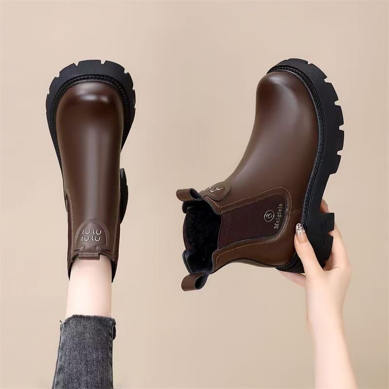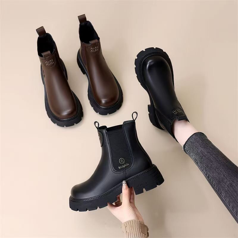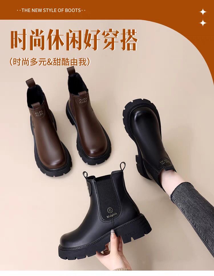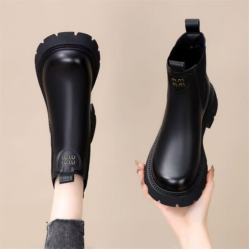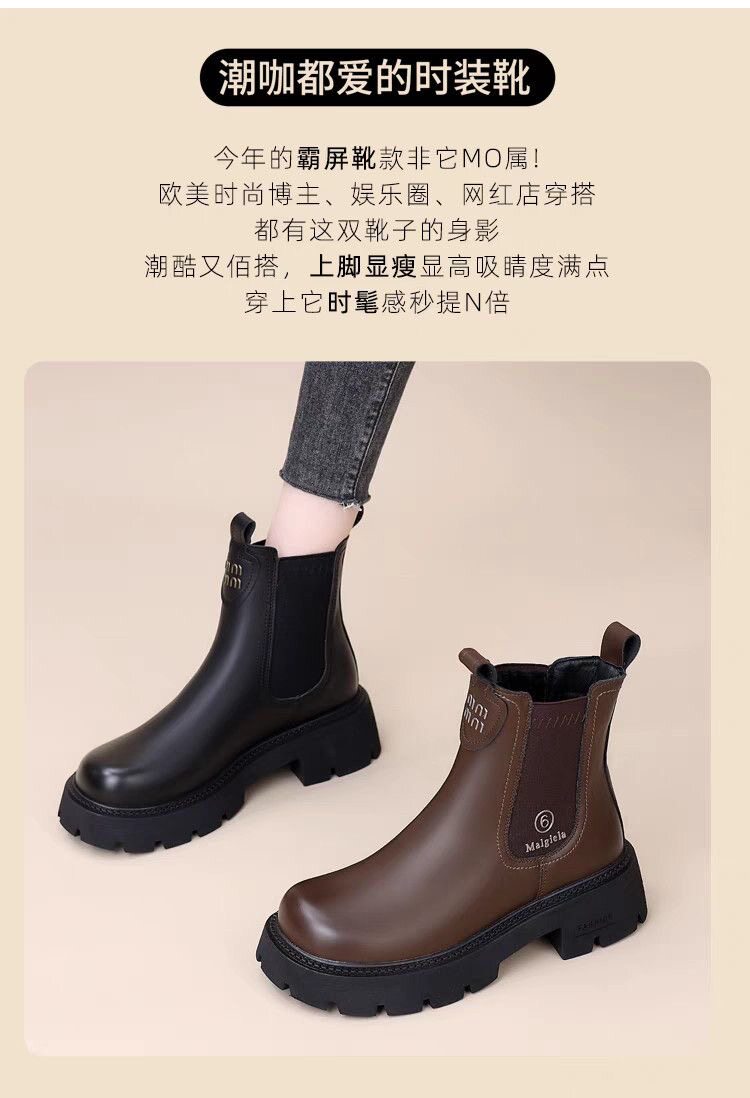 網紅爆款菸筒靴女2025年秋冬新款英倫風切爾西松緊加絨顯瘦馬丁靴