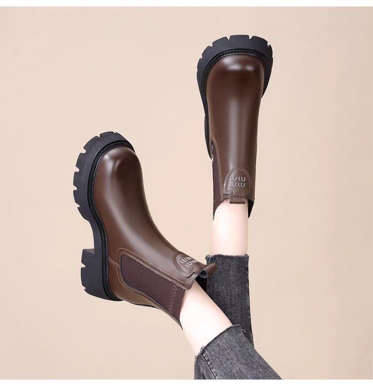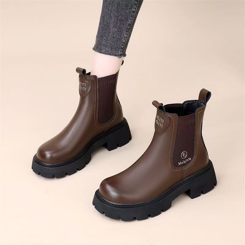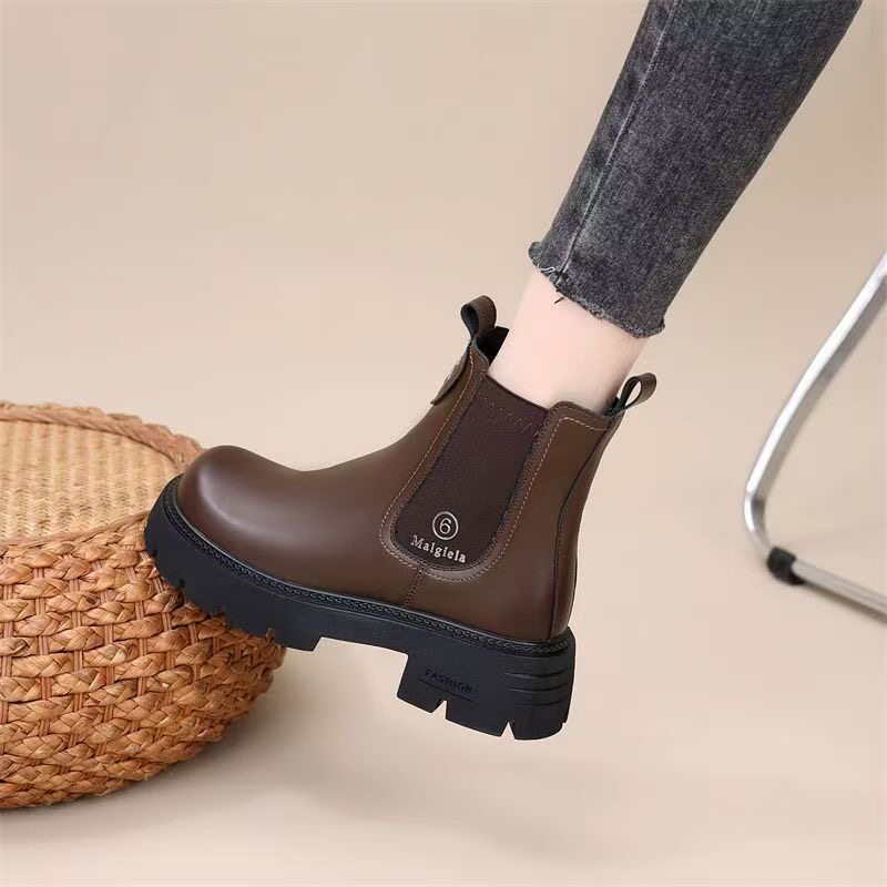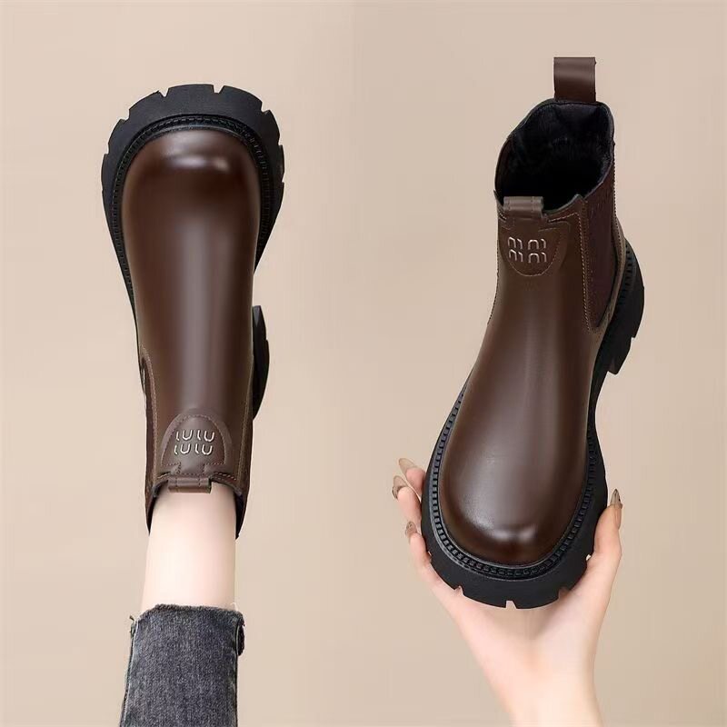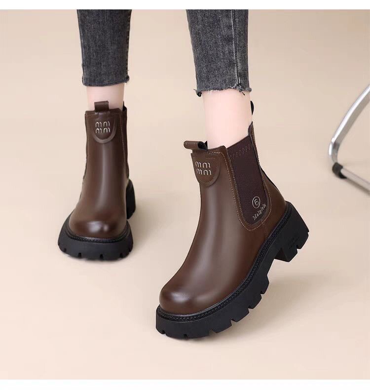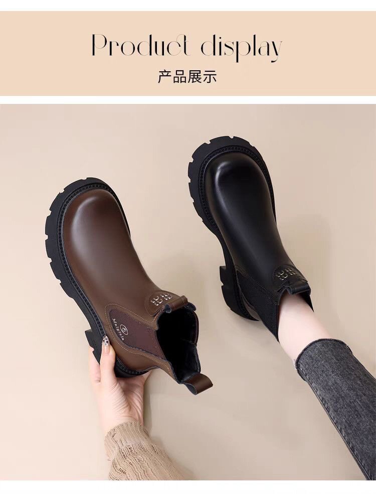 網紅爆款菸筒靴女2025年秋冬新款英倫風切爾西松緊加絨顯瘦馬丁靴