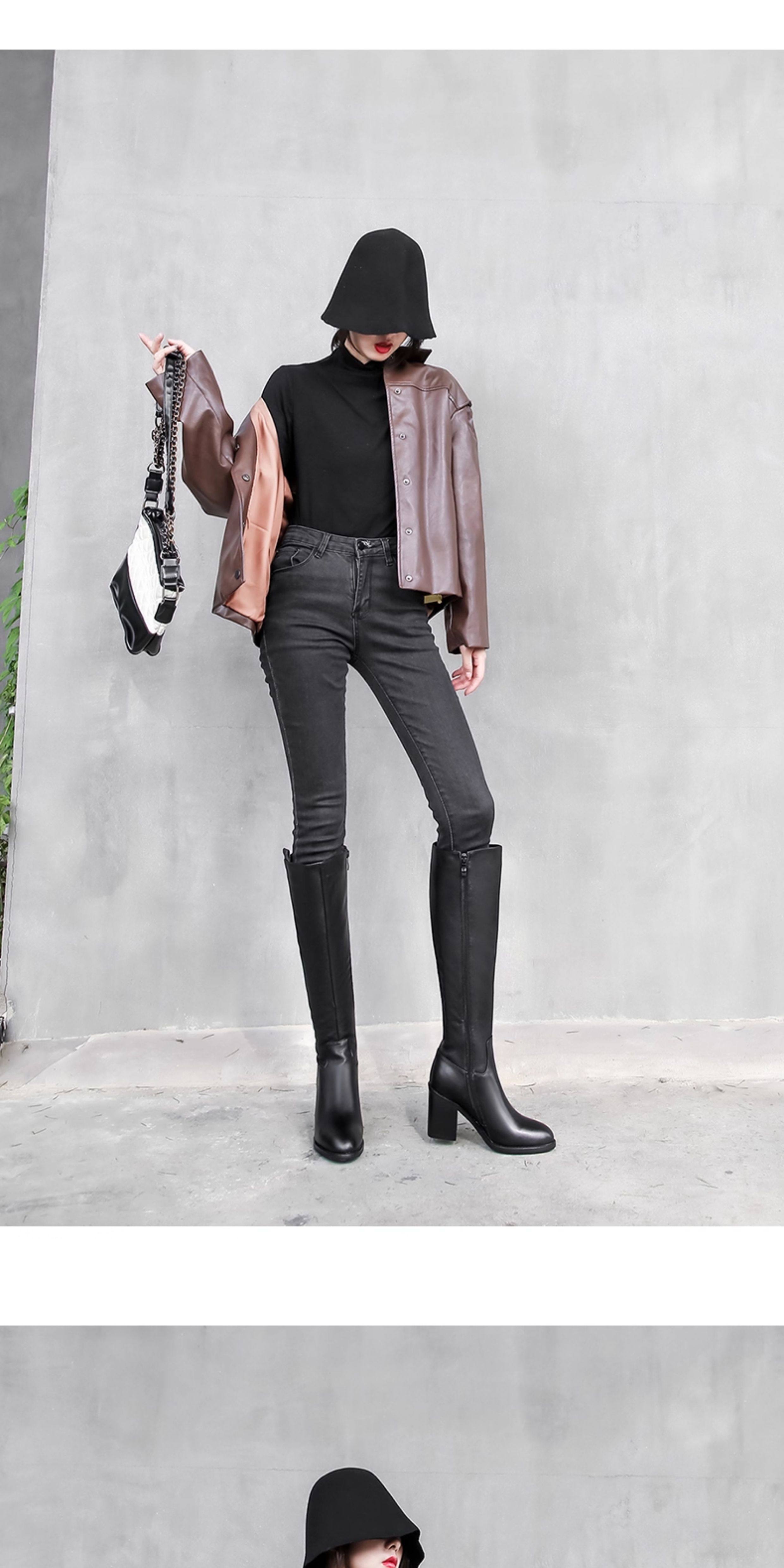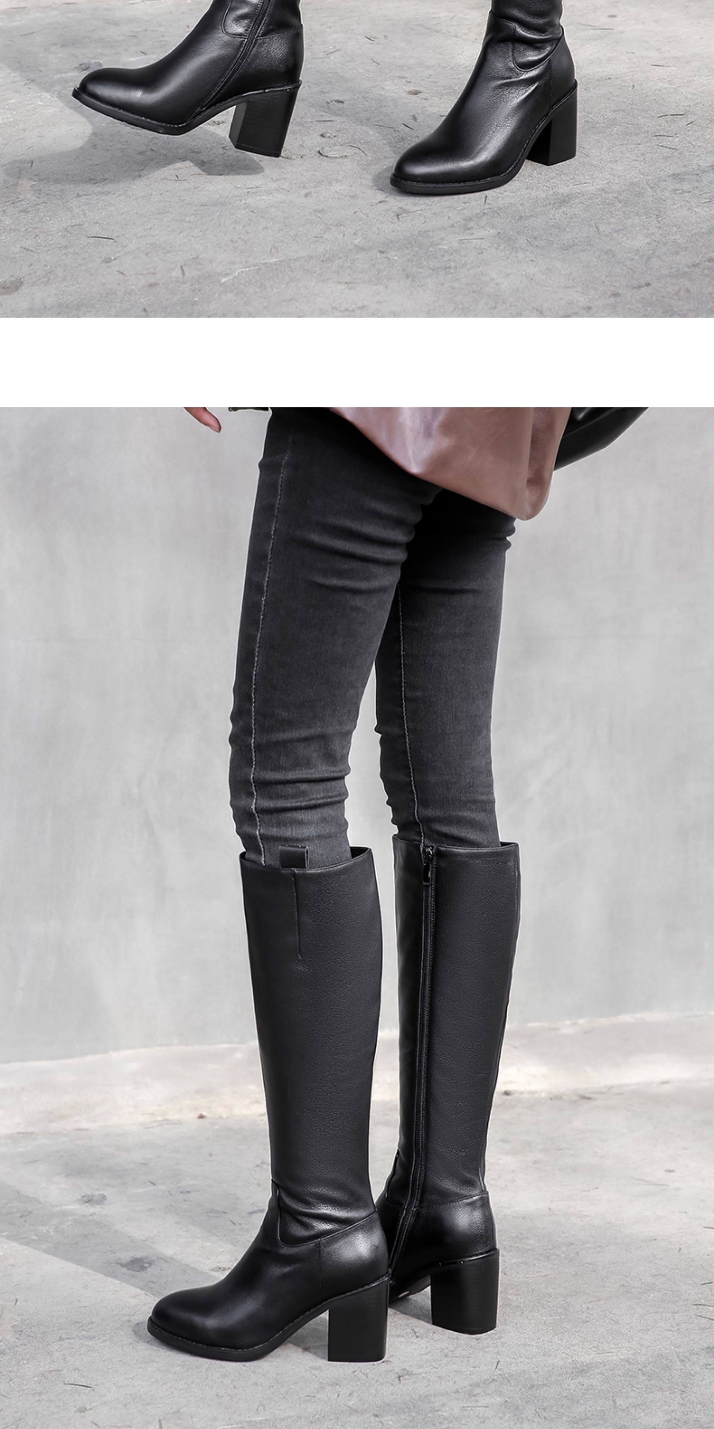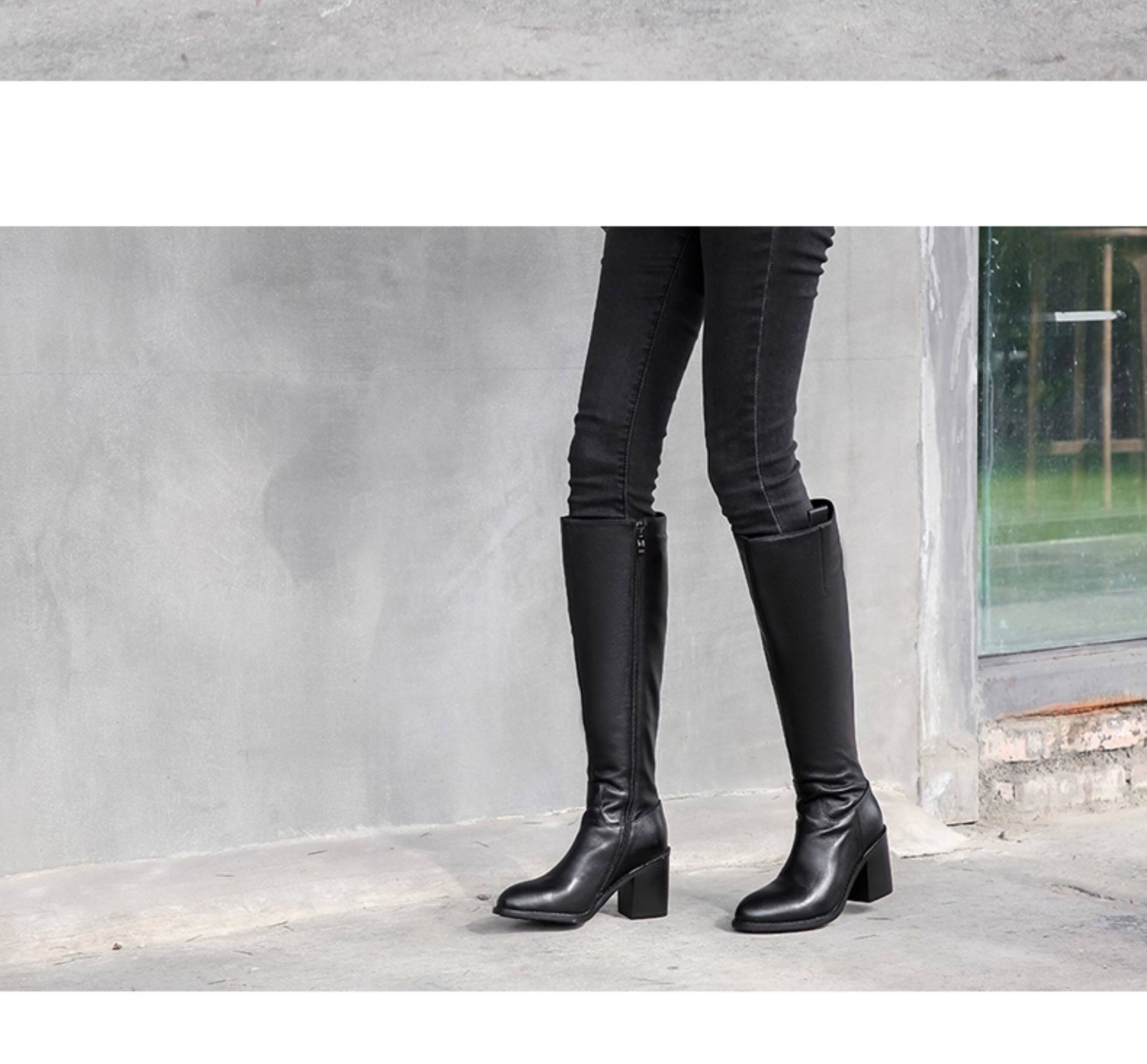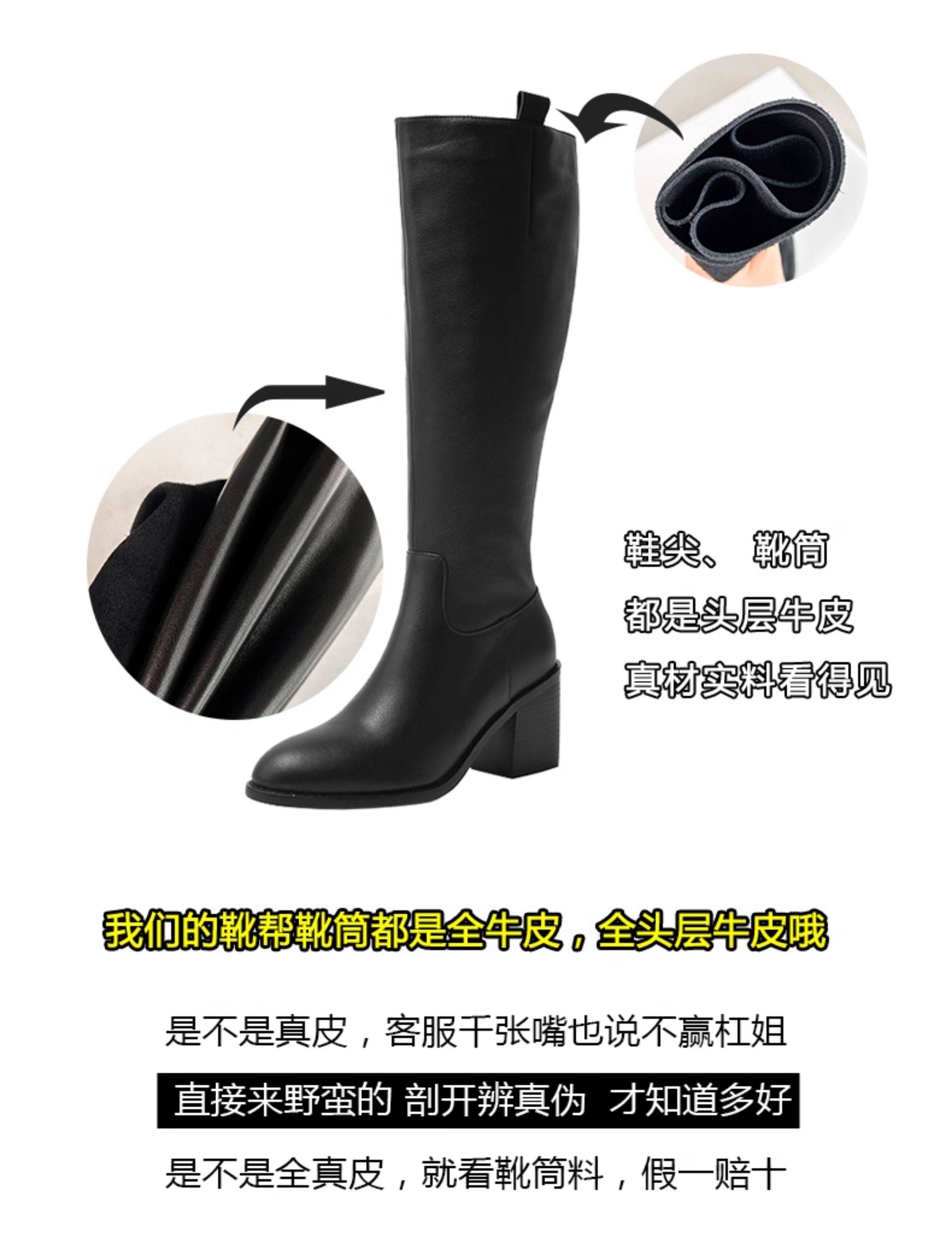 全牛皮真皮高跟騎士靴粗跟不過膝高筒靴及膝長靴秋冬新款女靴長筒