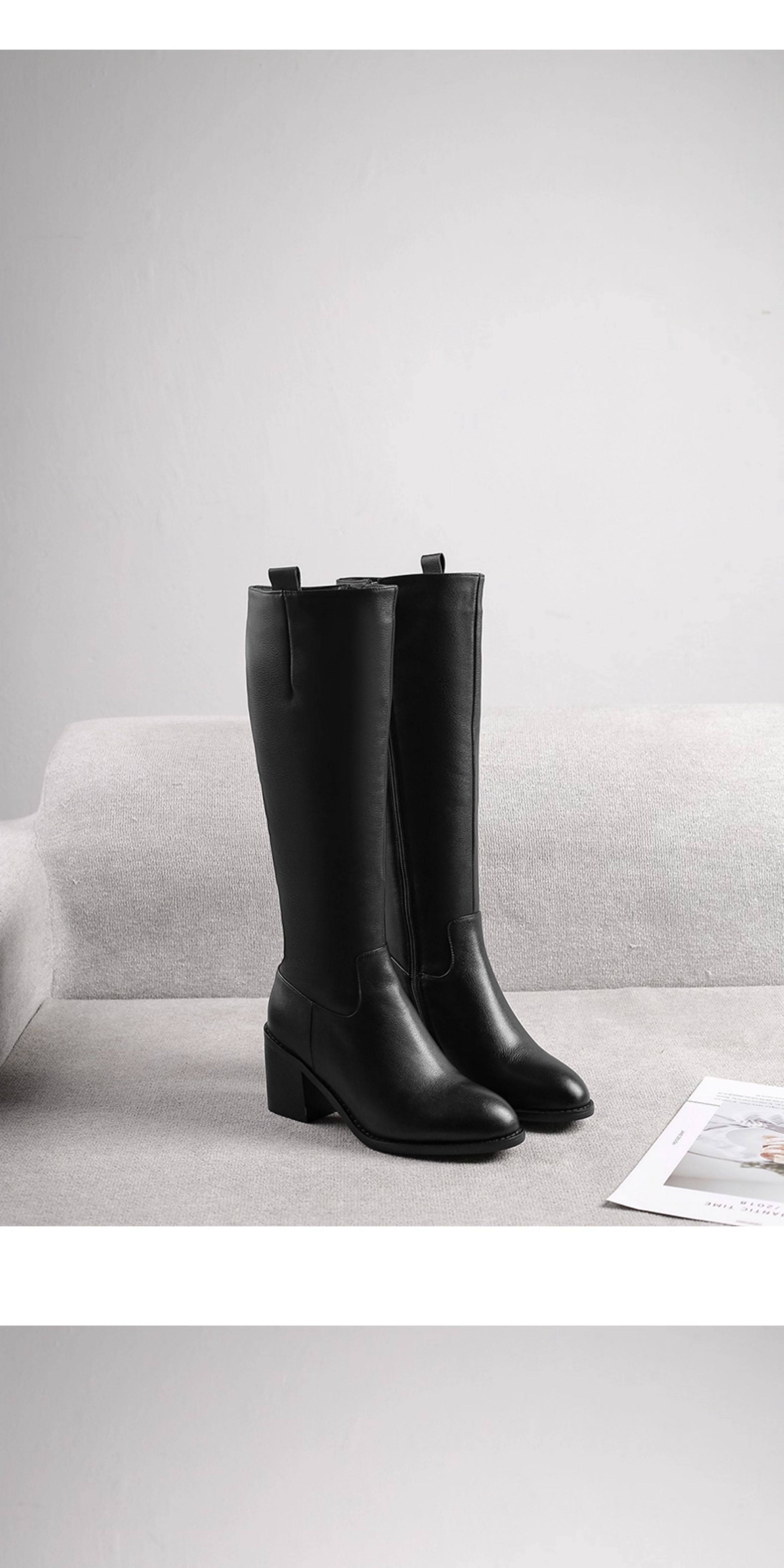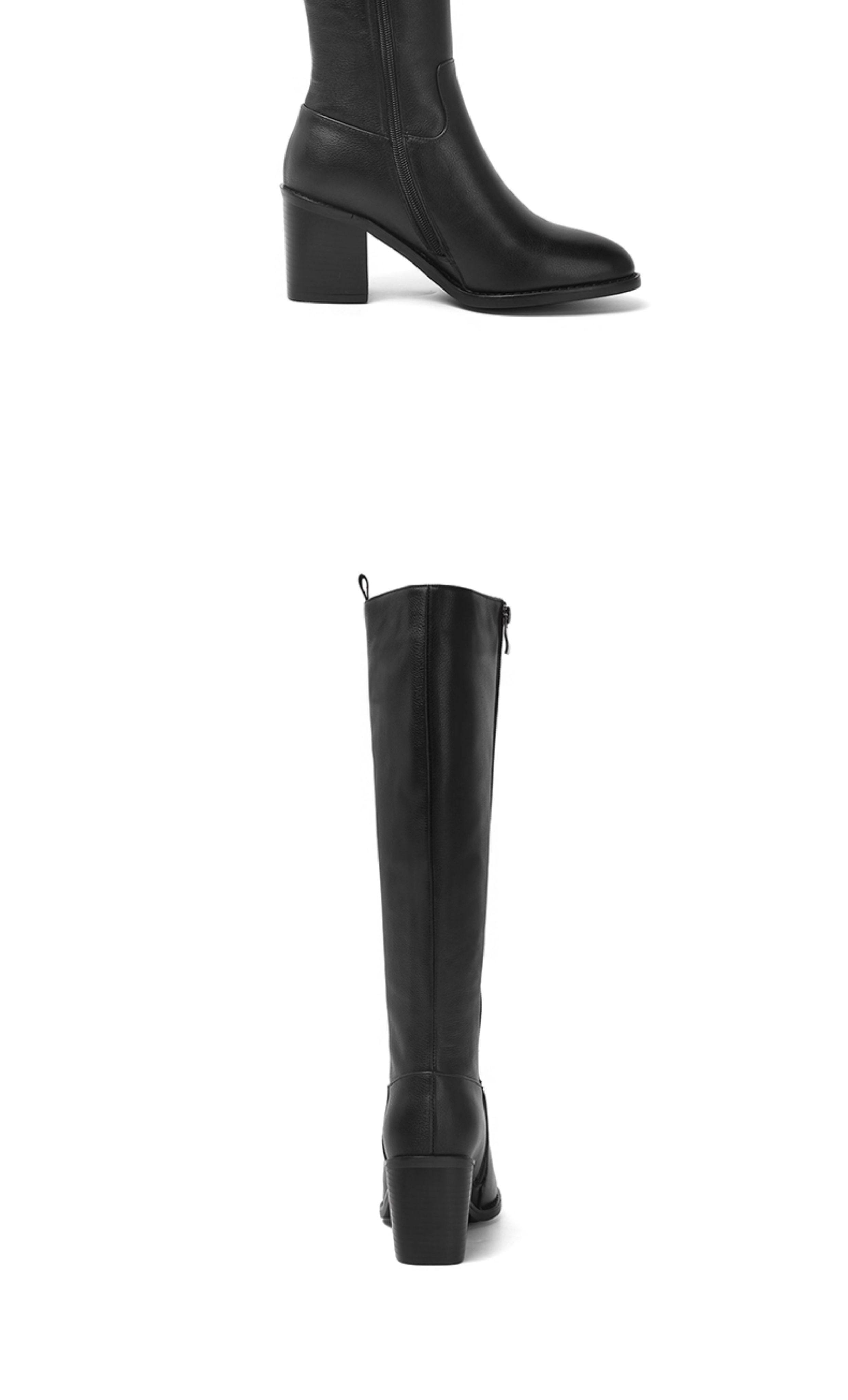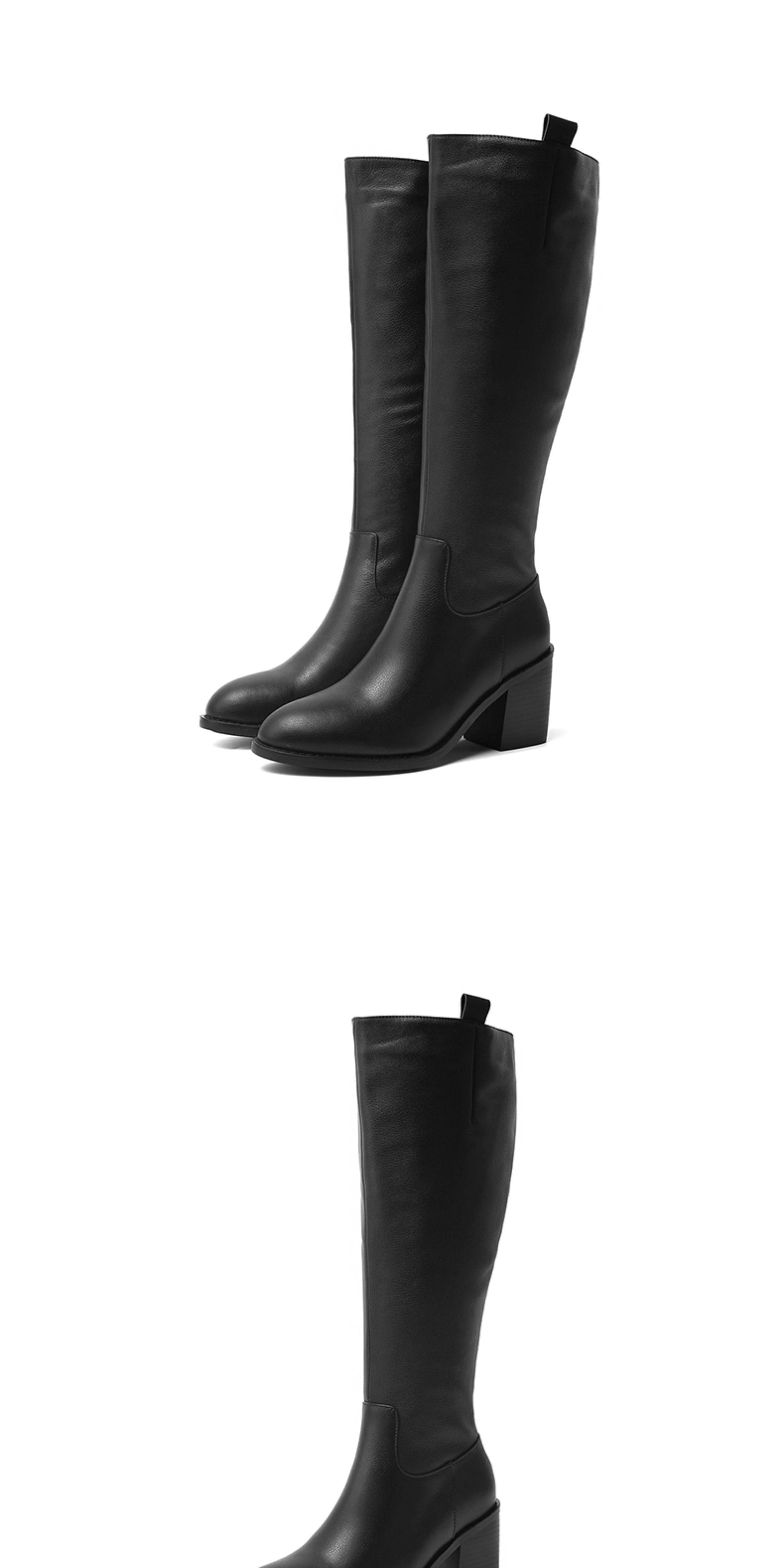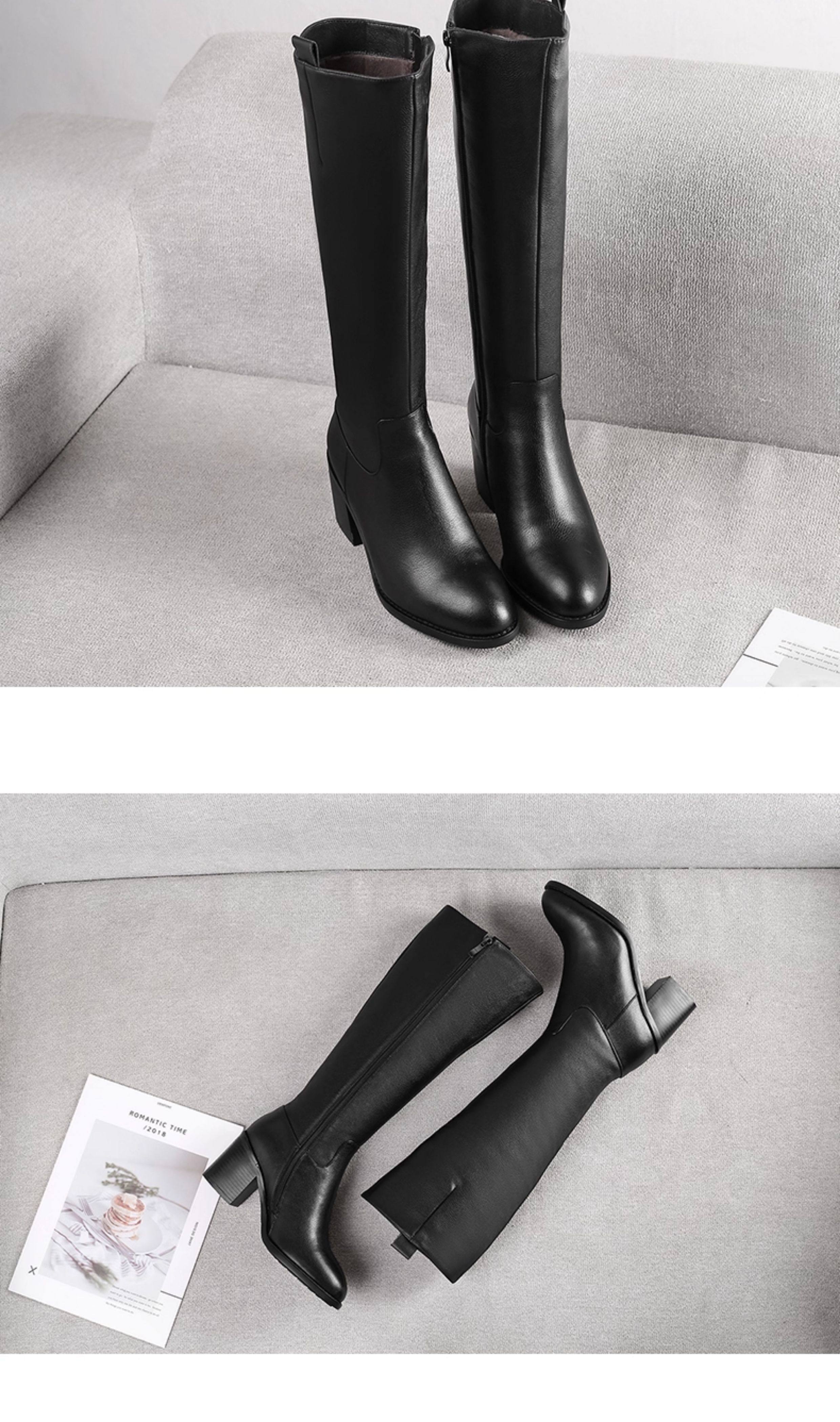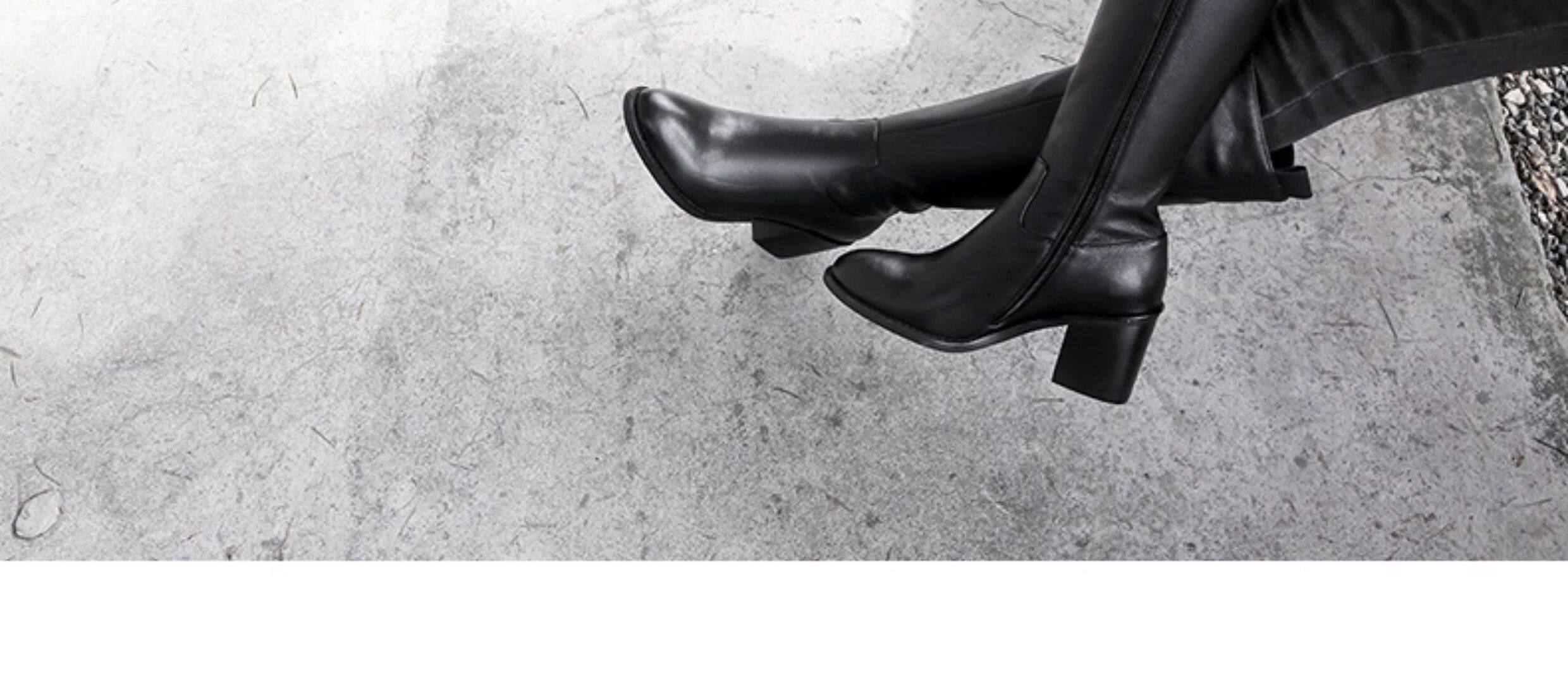 全牛皮真皮高跟騎士靴粗跟不過膝高筒靴及膝長靴秋冬新款女靴長筒