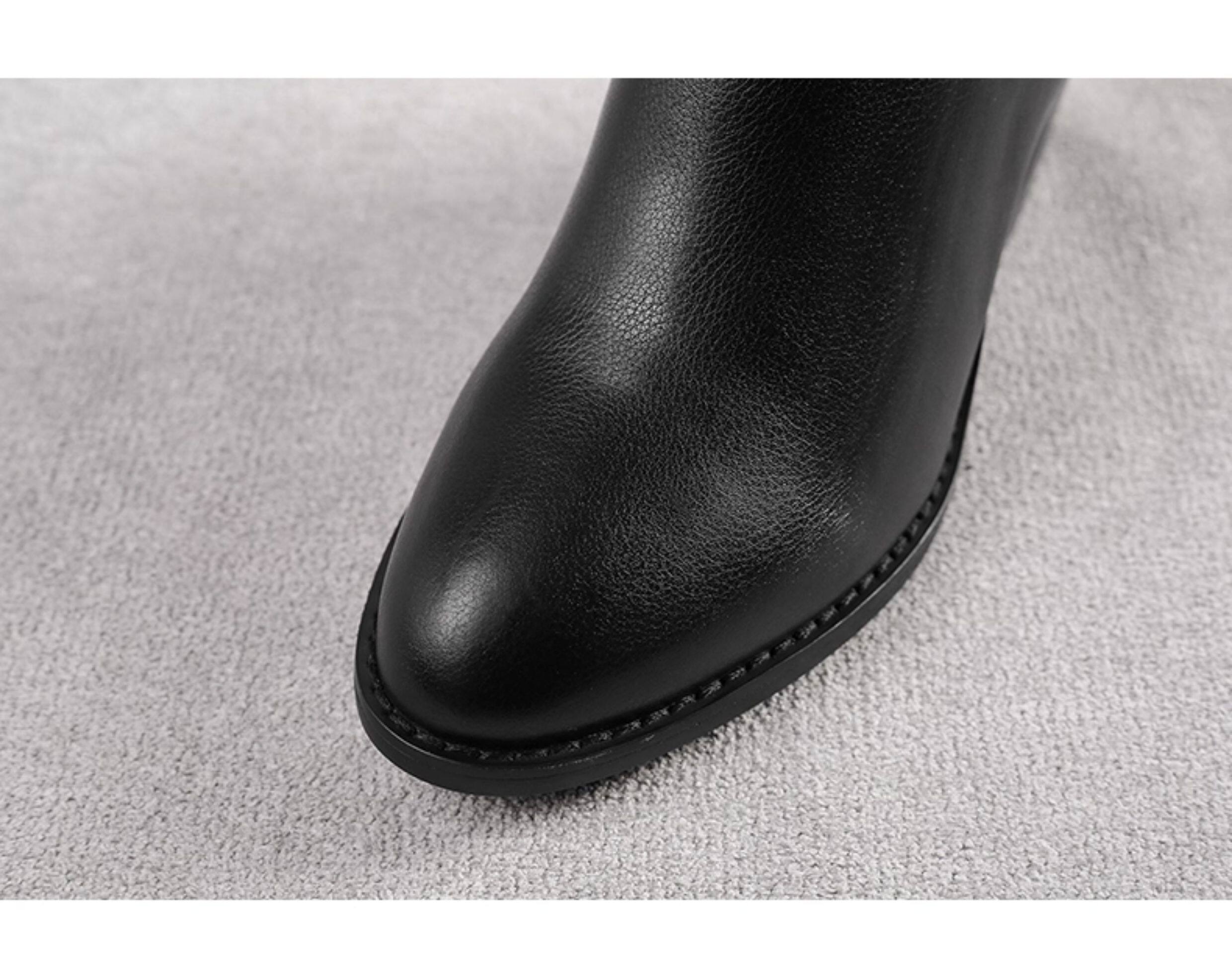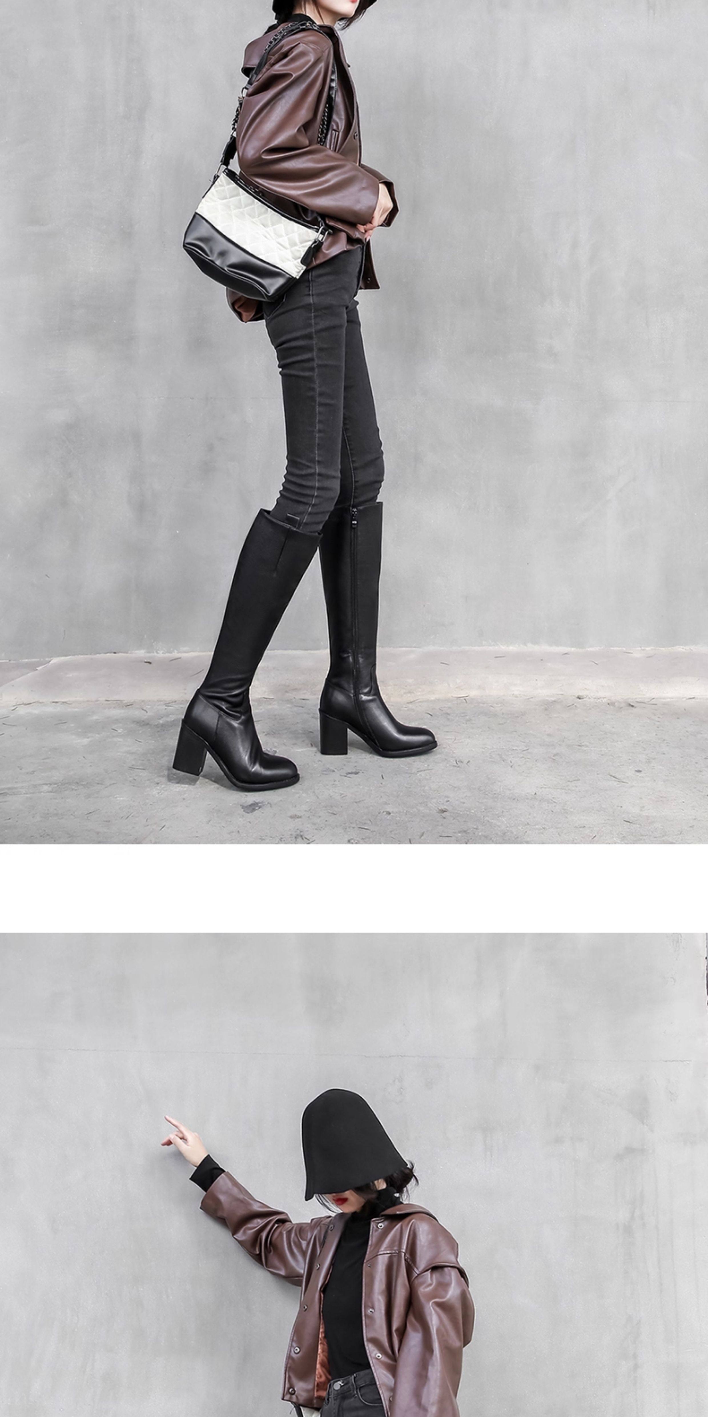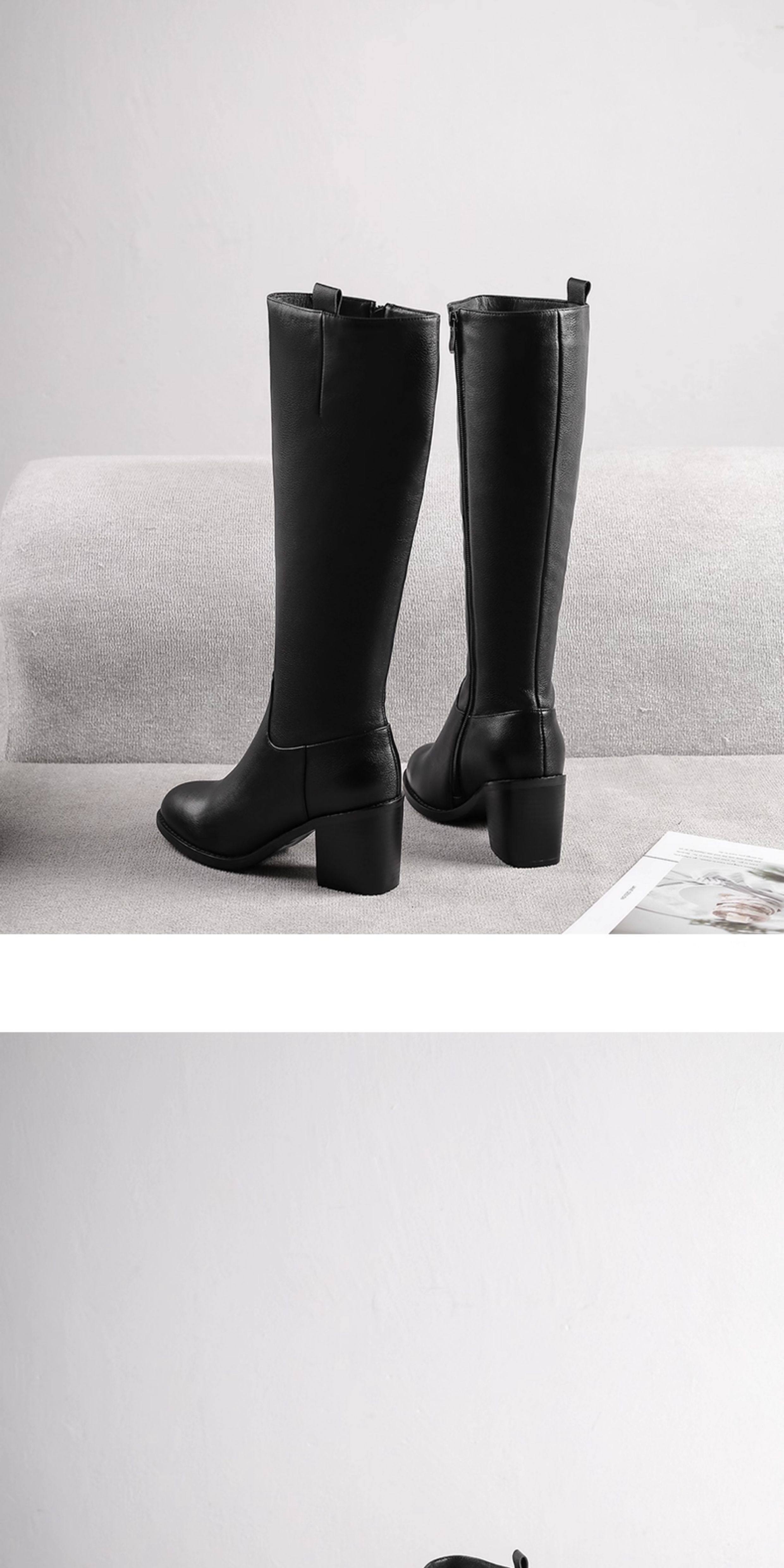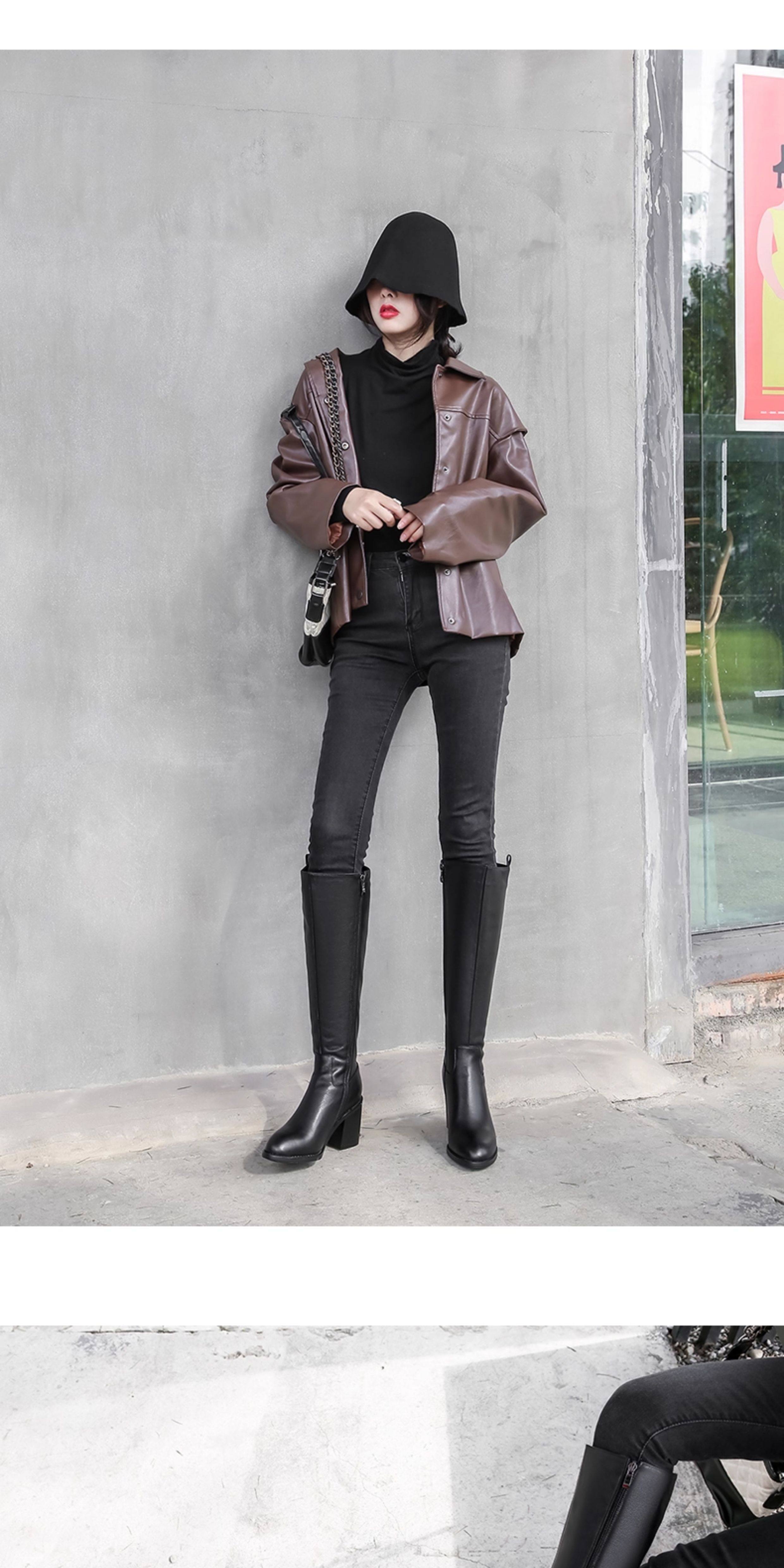 全牛皮真皮高跟騎士靴粗跟不過膝高筒靴及膝長靴秋冬新款女靴長筒