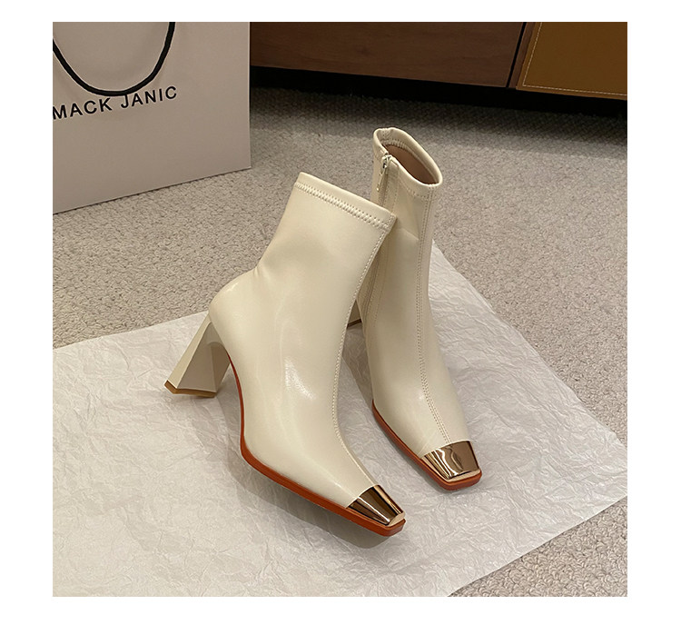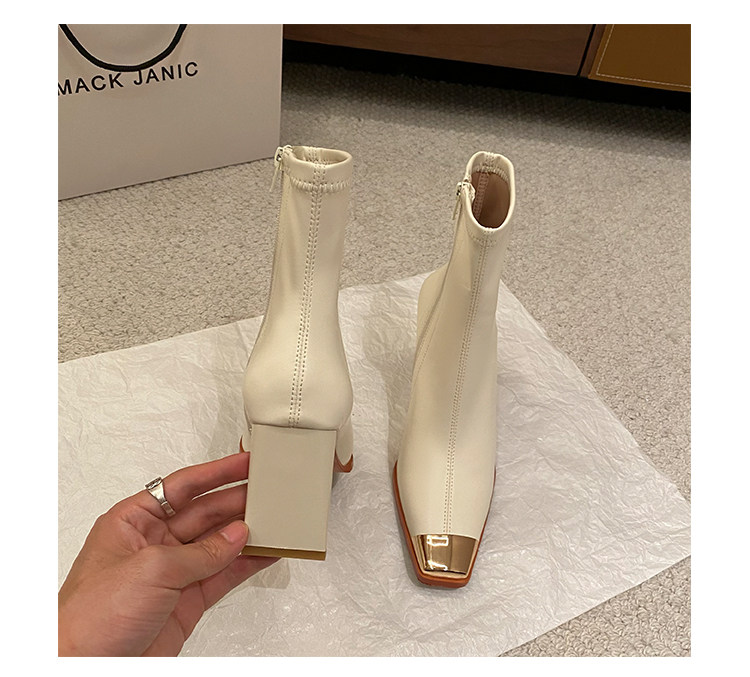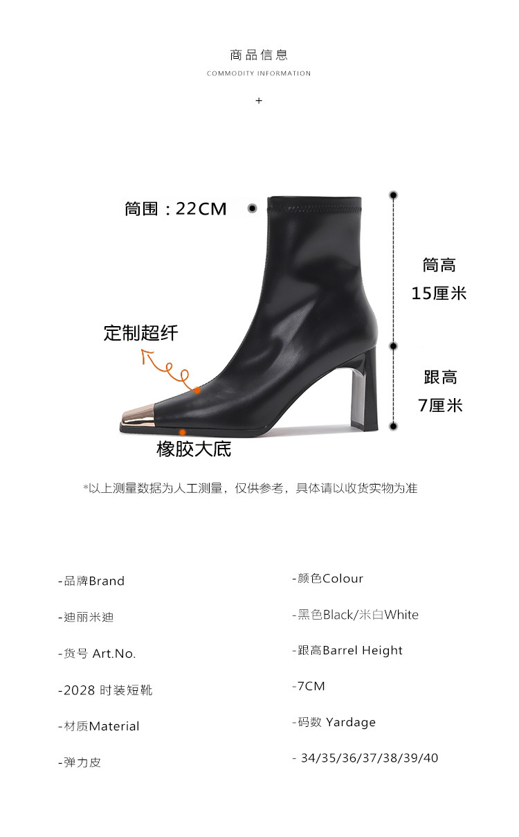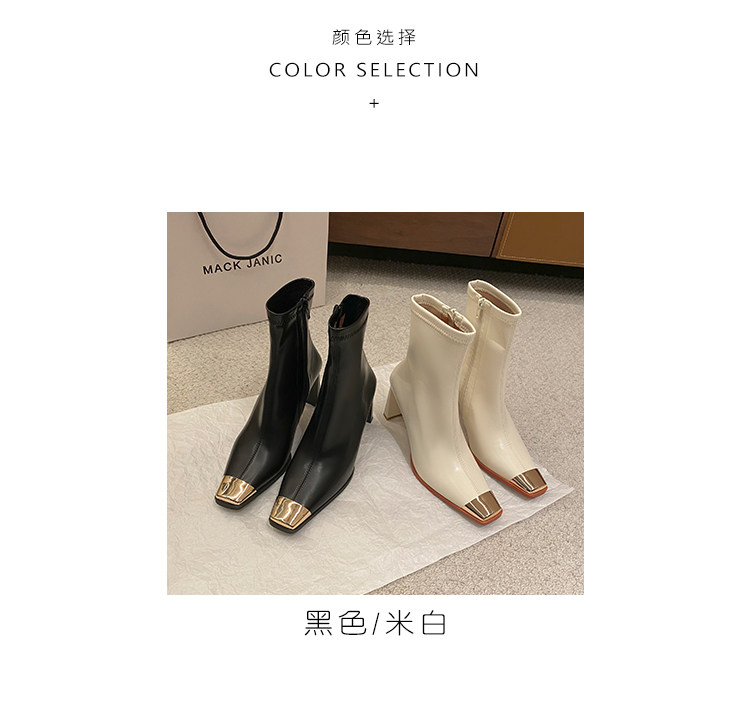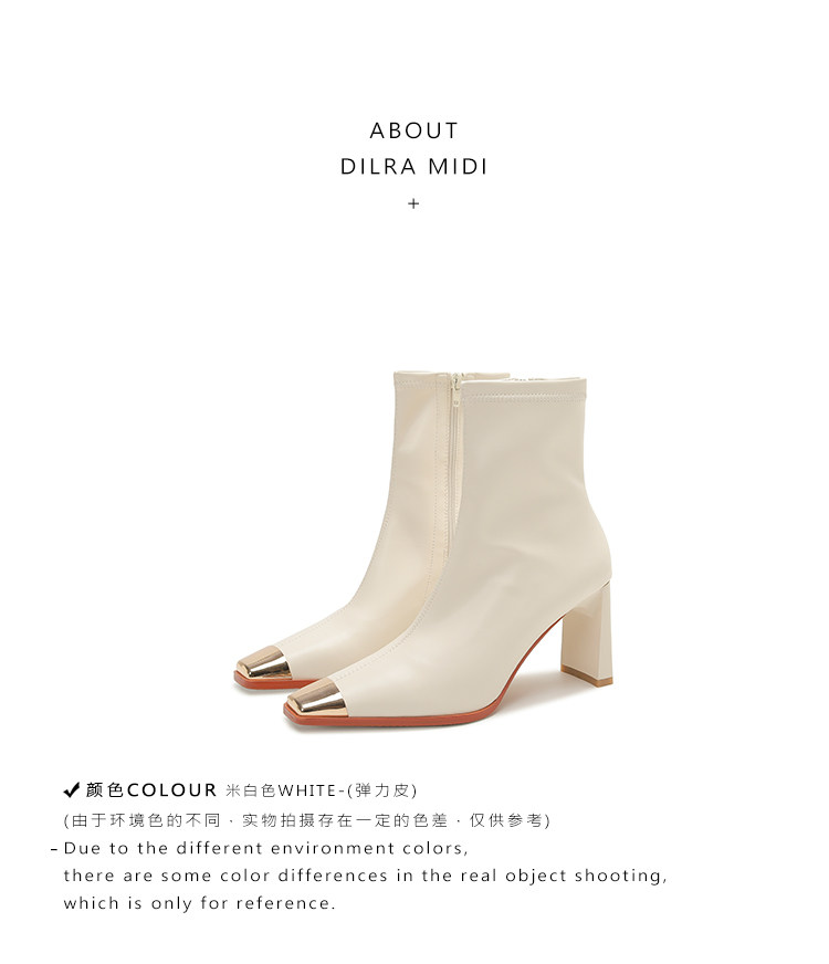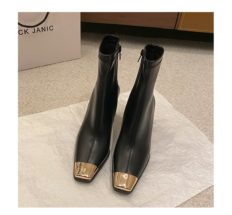 迪麗米迪 靴子女秋冬粗跟金屬方頭短靴女2025新款爆款高跟瘦瘦靴