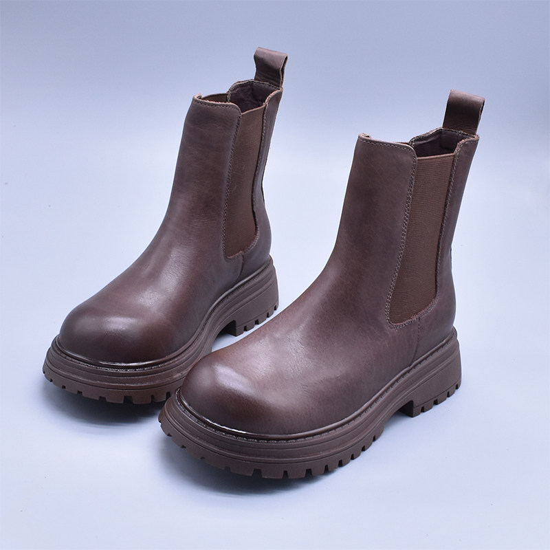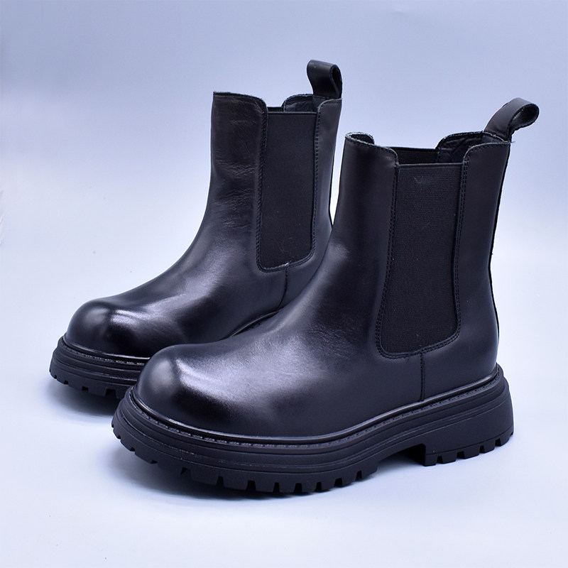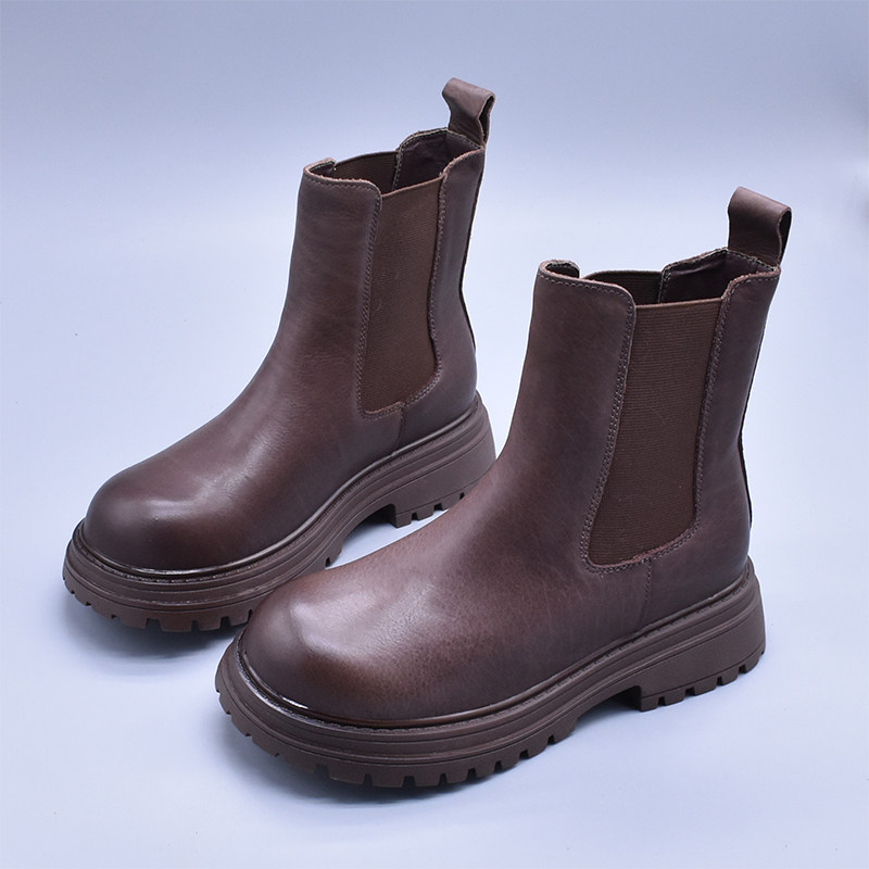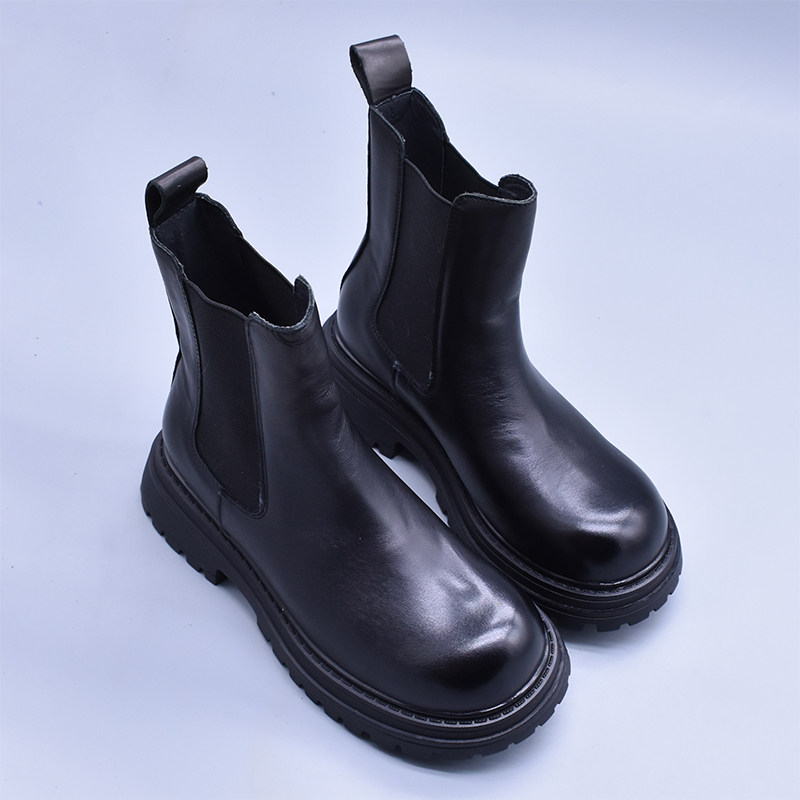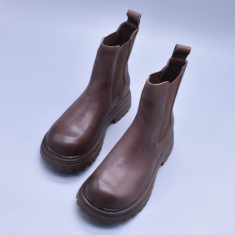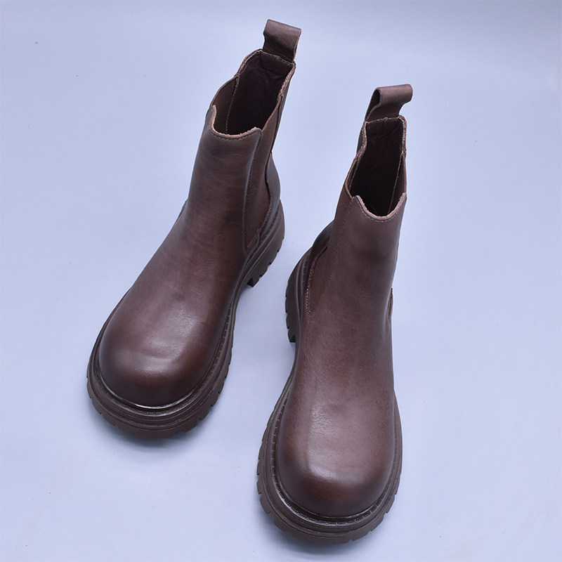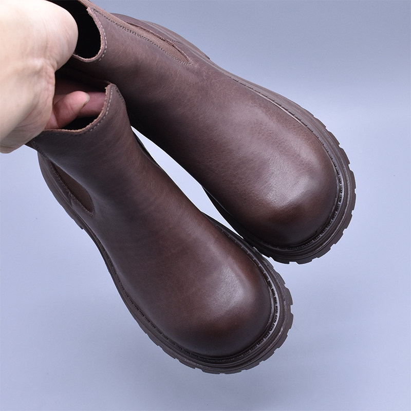 清~輕便百搭顯瘦真皮厚底切爾西靴女英倫氣質水洗頭層牛皮菸筒靴