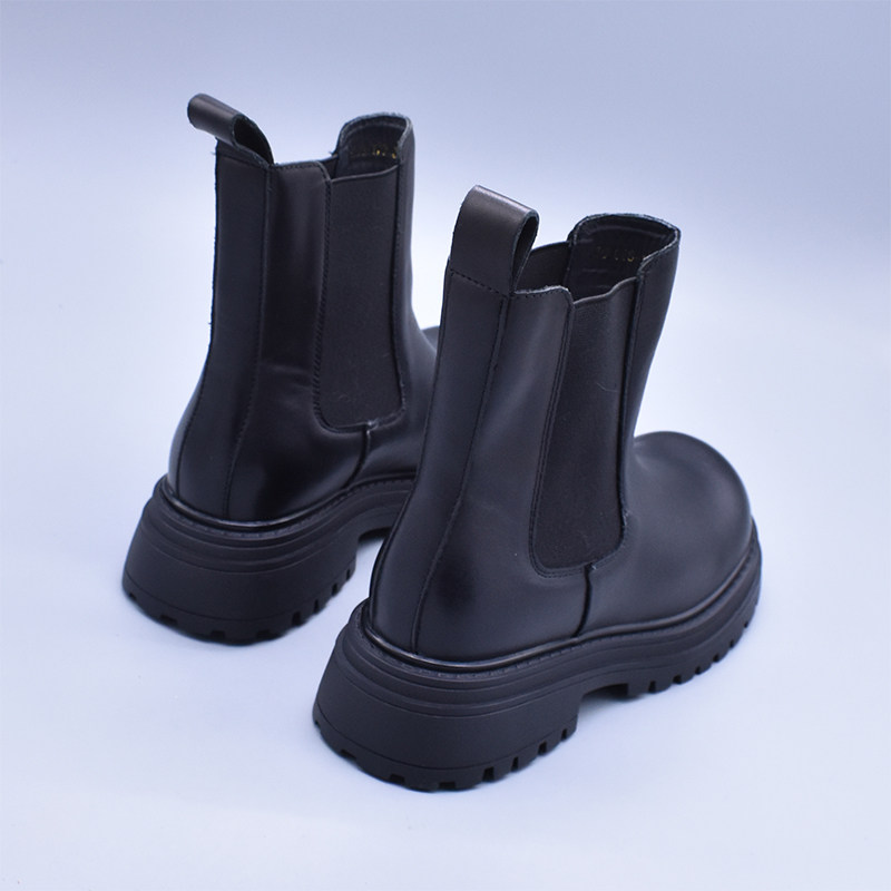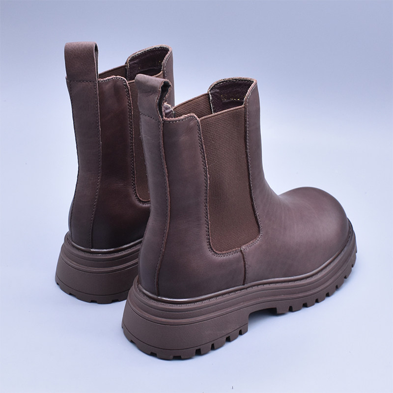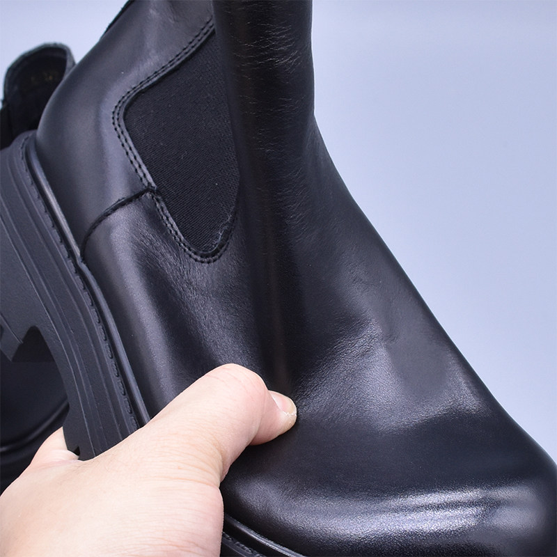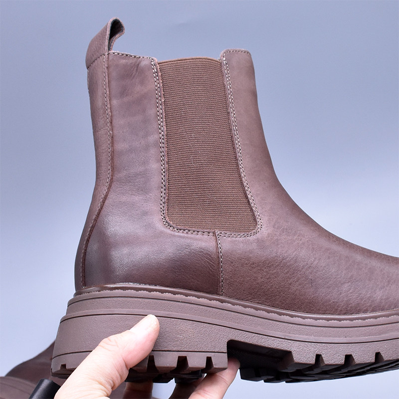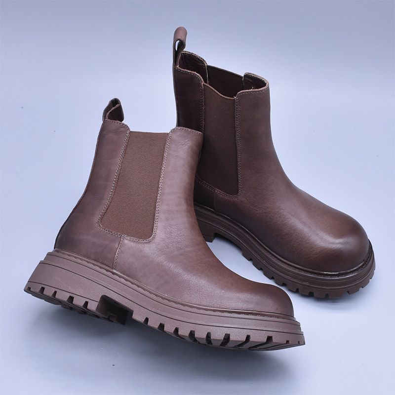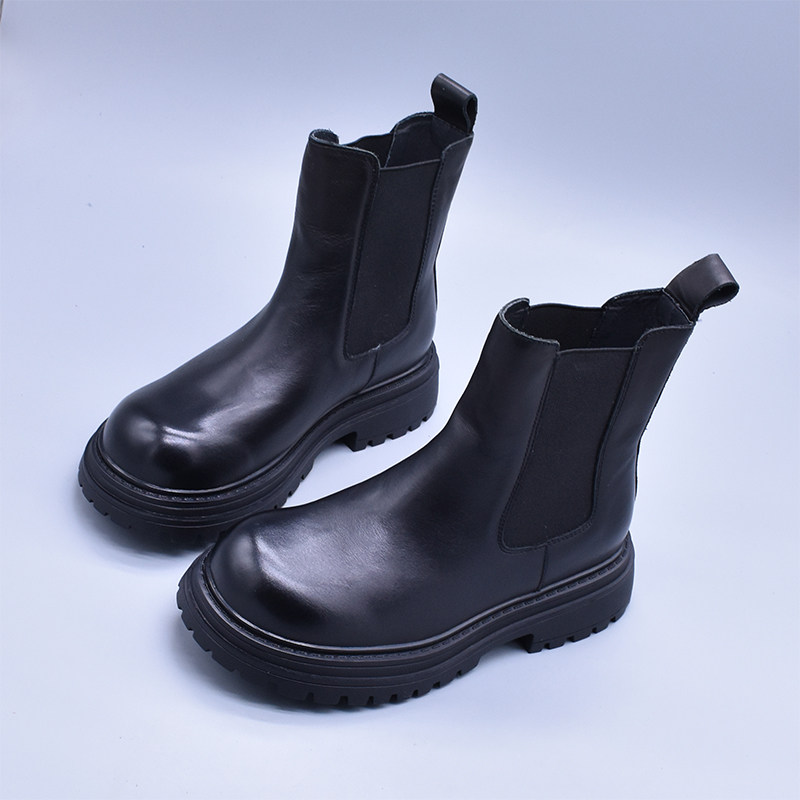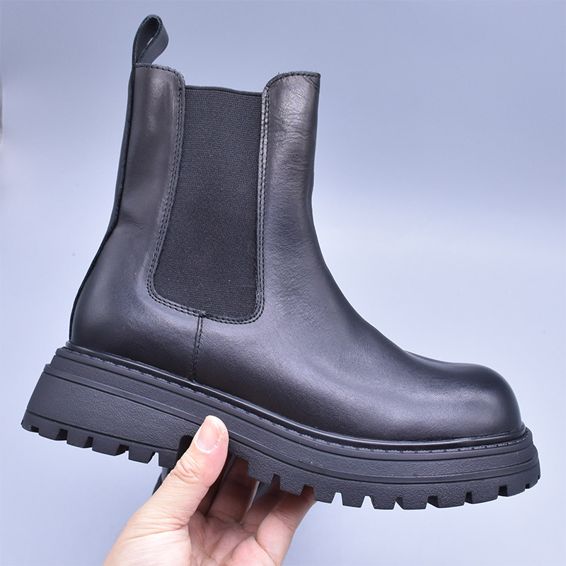 清~輕便百搭顯瘦真皮厚底切爾西靴女英倫氣質水洗頭層牛皮菸筒靴
