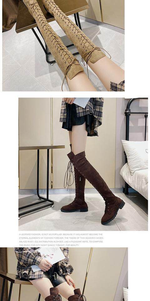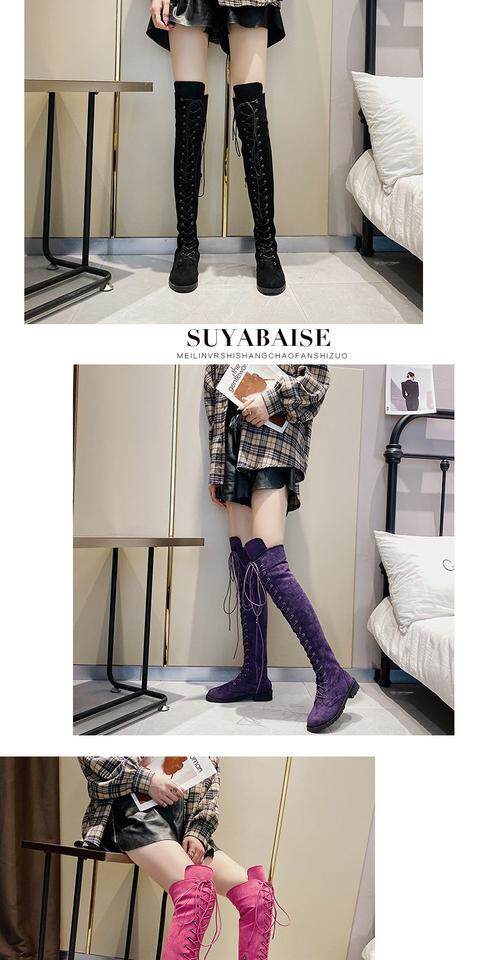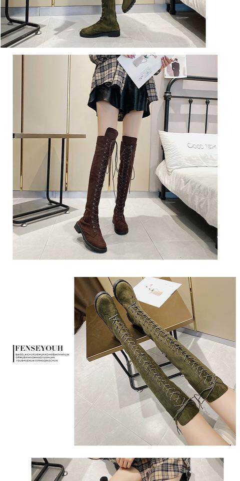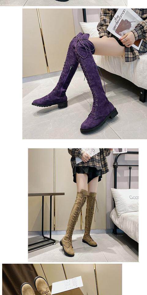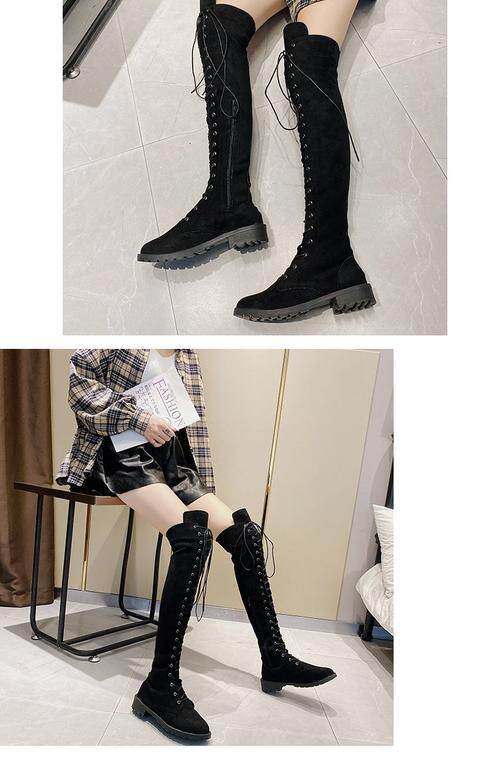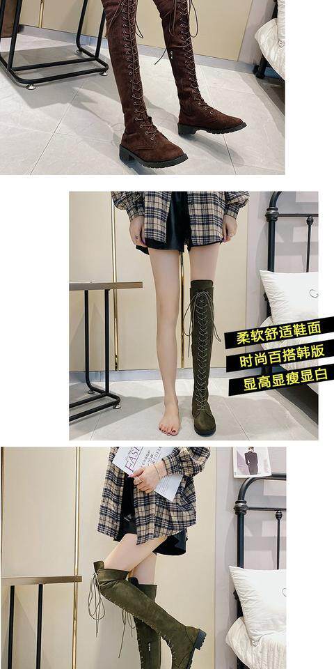 2022秋冬新款長筒靴大碼過膝靴磨砂高筒靴前系帶女靴歐美女鞋時尚噹季時尚百搭款,不要猶豫往下看圖片你馬上會愛上