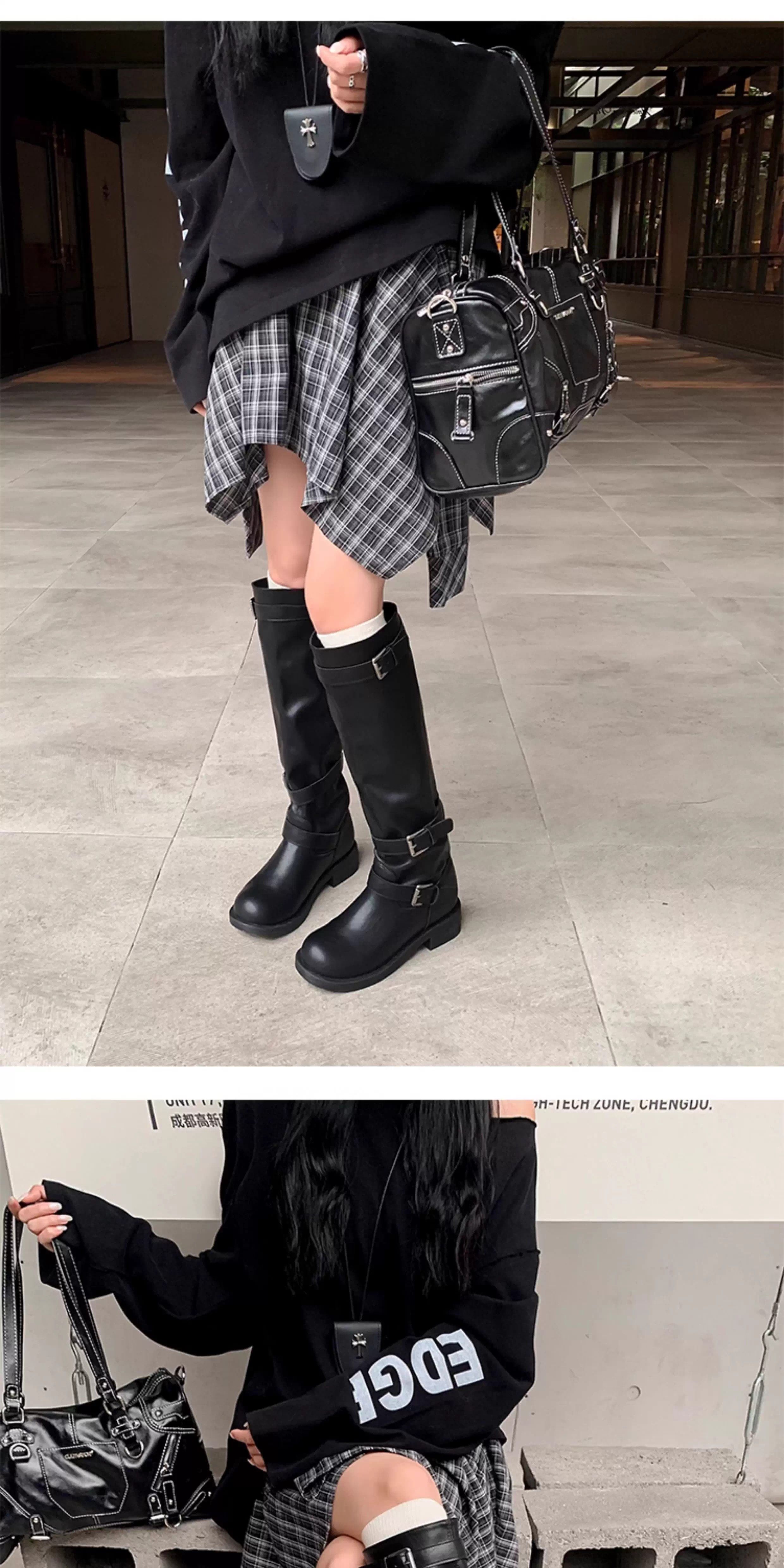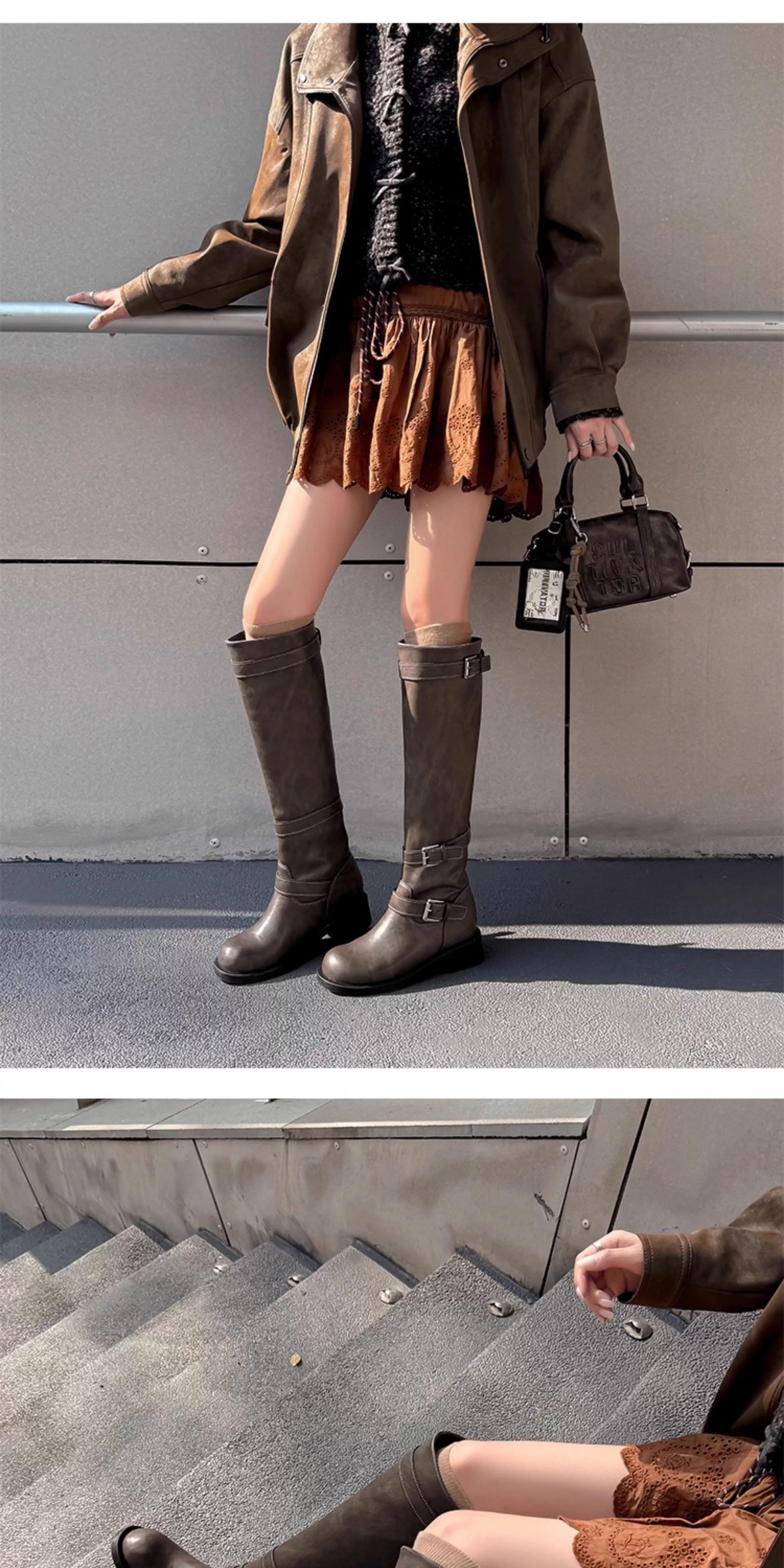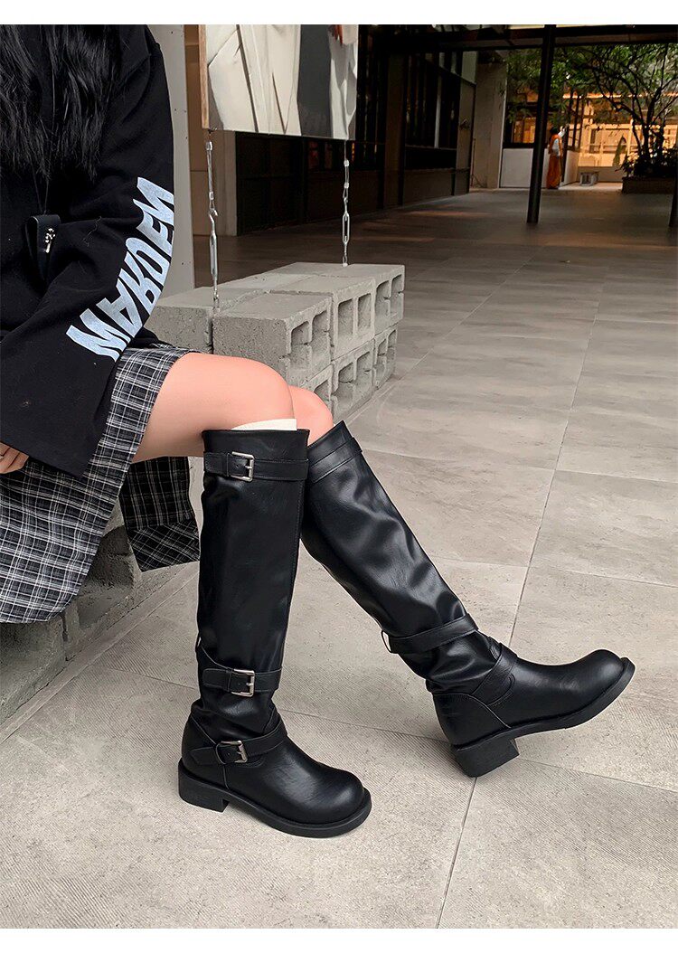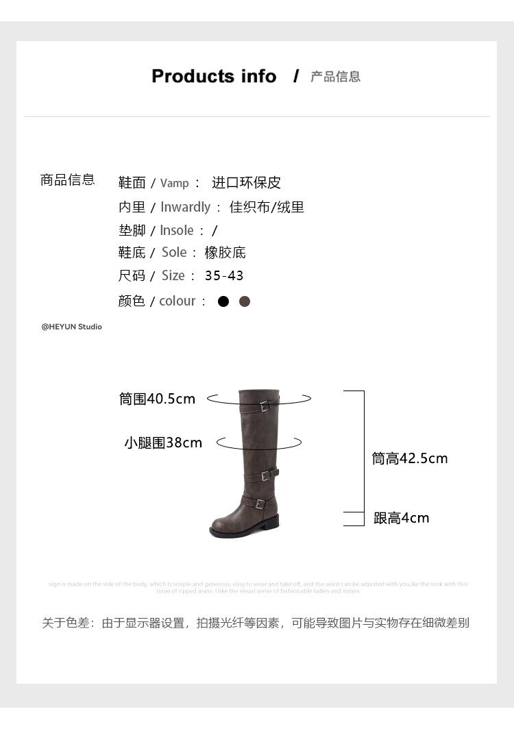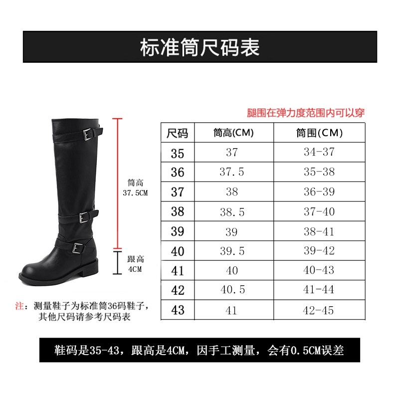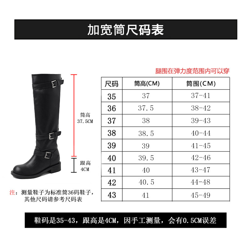 高筒西部大筒圍騎士靴胖mm長筒靴女粗腿加絨皮帶釦大碼長靴41到43