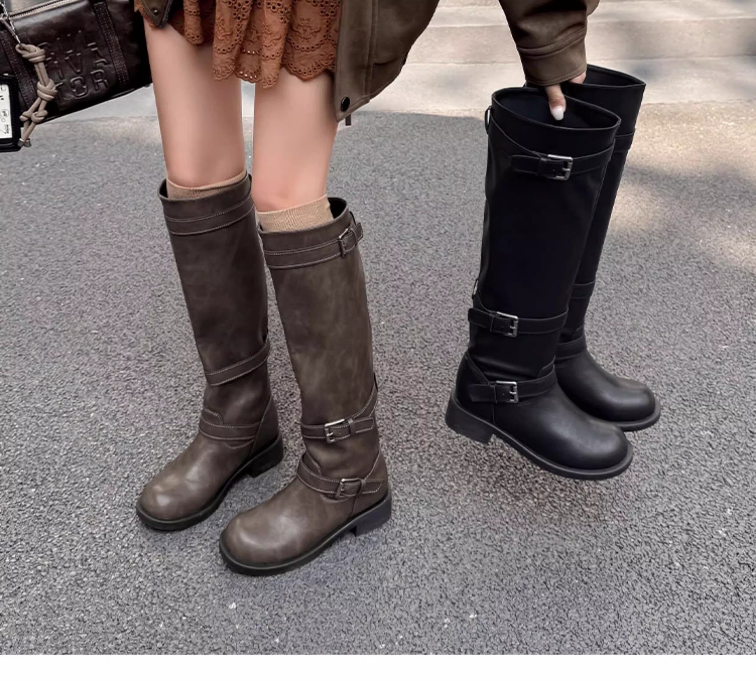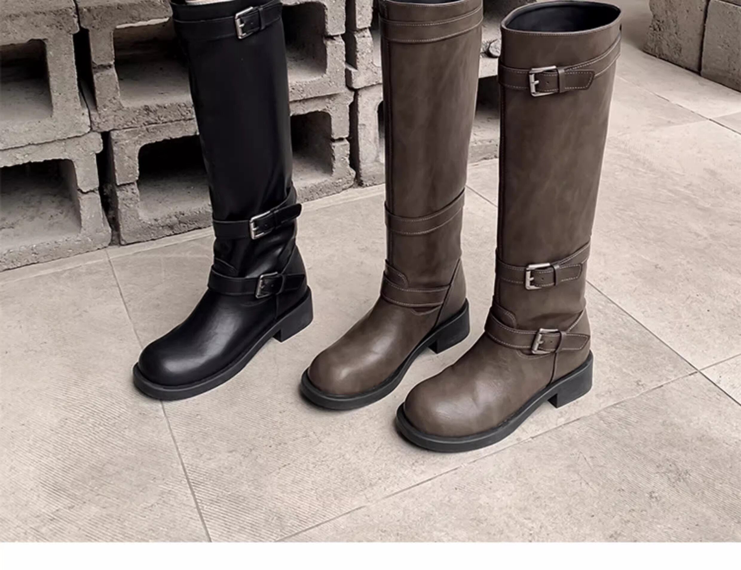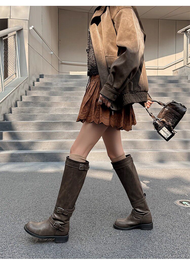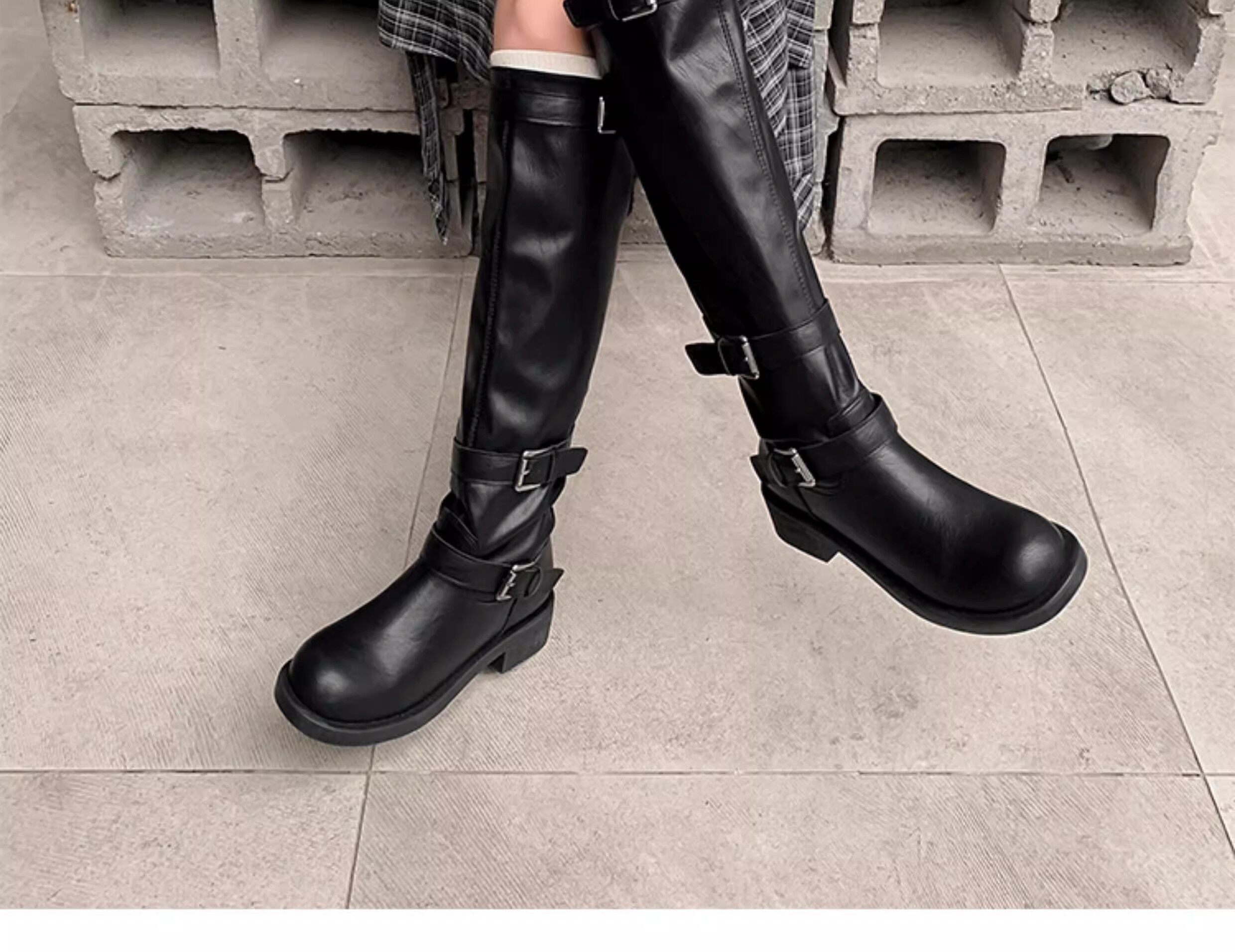 高筒西部大筒圍騎士靴胖mm長筒靴女粗腿加絨皮帶釦大碼長靴41到43