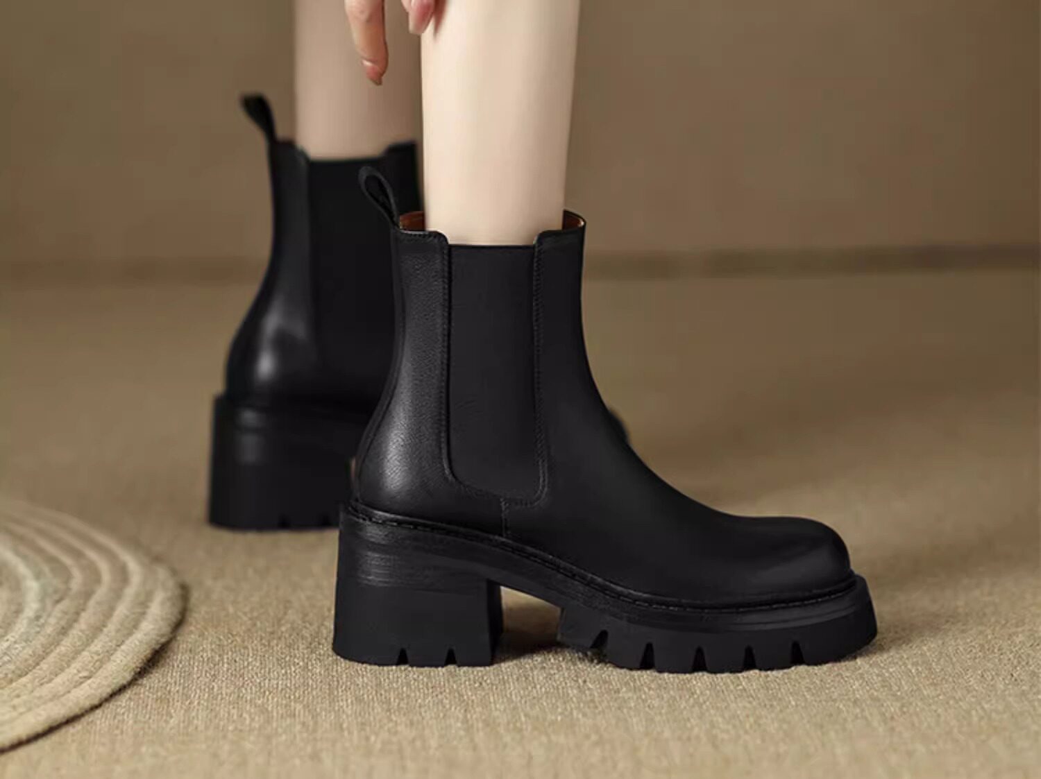 擦色皮厚底菸筒馬丁靴女2026新款復古圓頭切爾西真皮粗跟高跟短靴