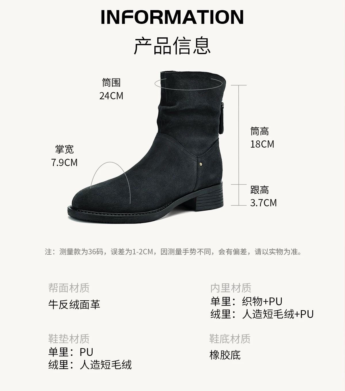| 靴筒面材質 | 牛反絨(磨砂皮) |