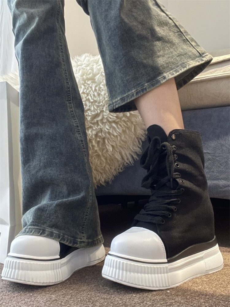 14cm隱形內增高帆布鞋女超高跟2025春季新款透氣超輕厚底小個子潮