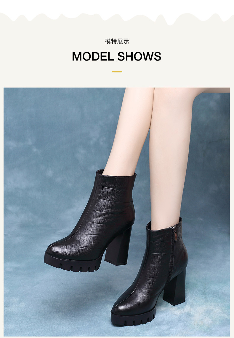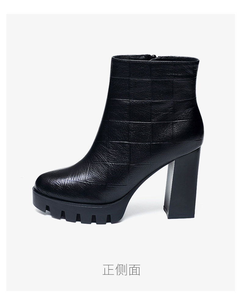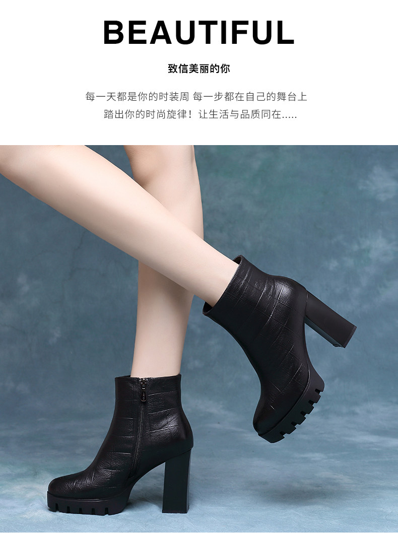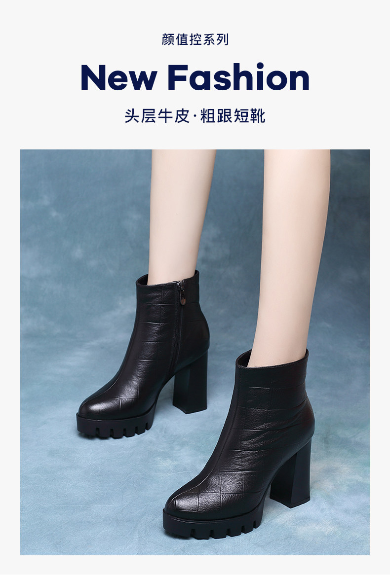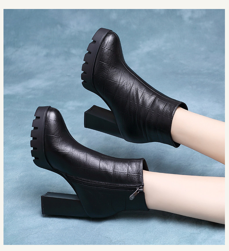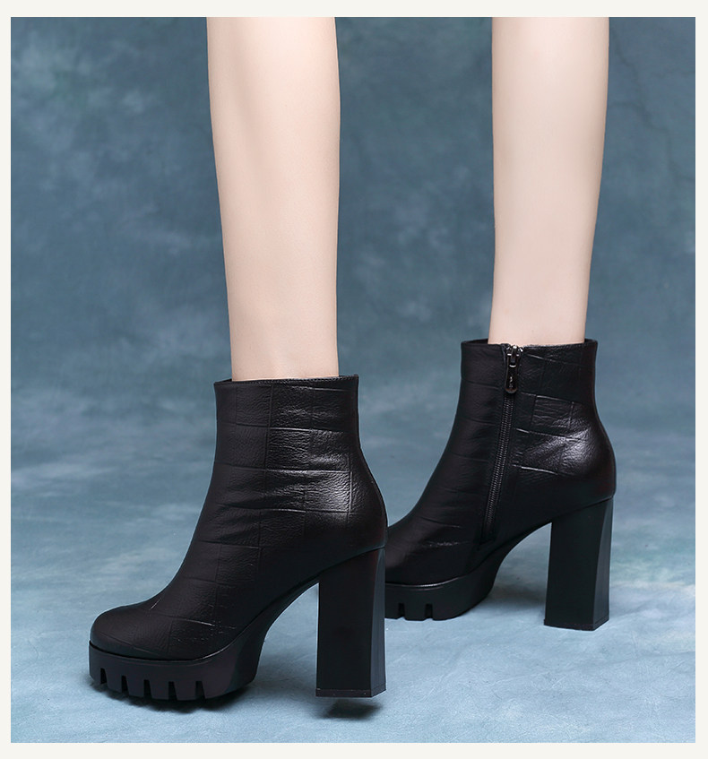 時裝女靴2025年新款高跟防水台馬丁靴真皮厚底短靴女粗跟秋冬單靴