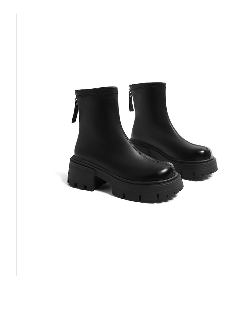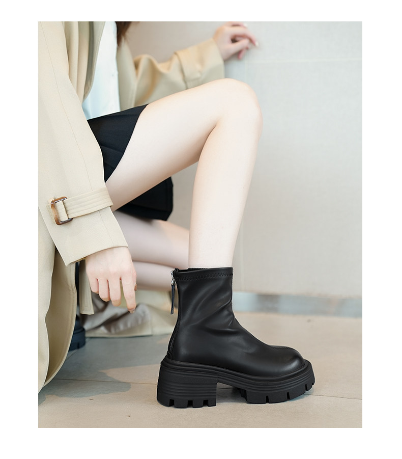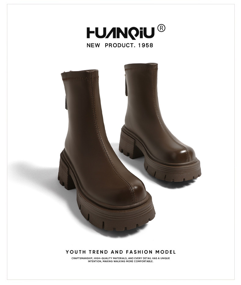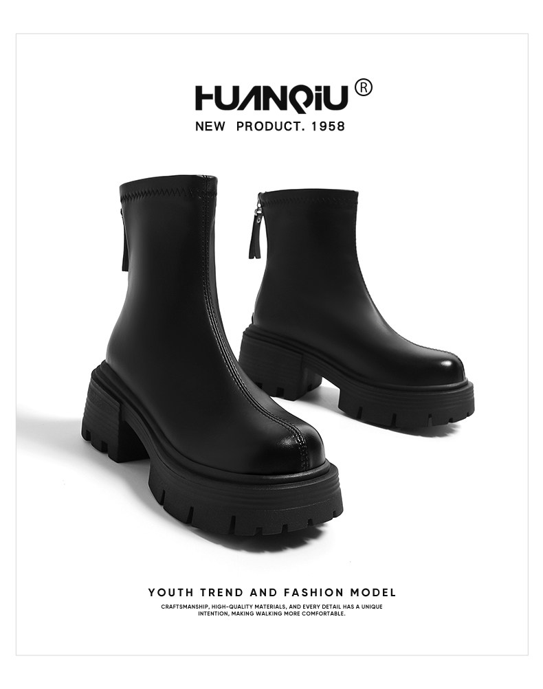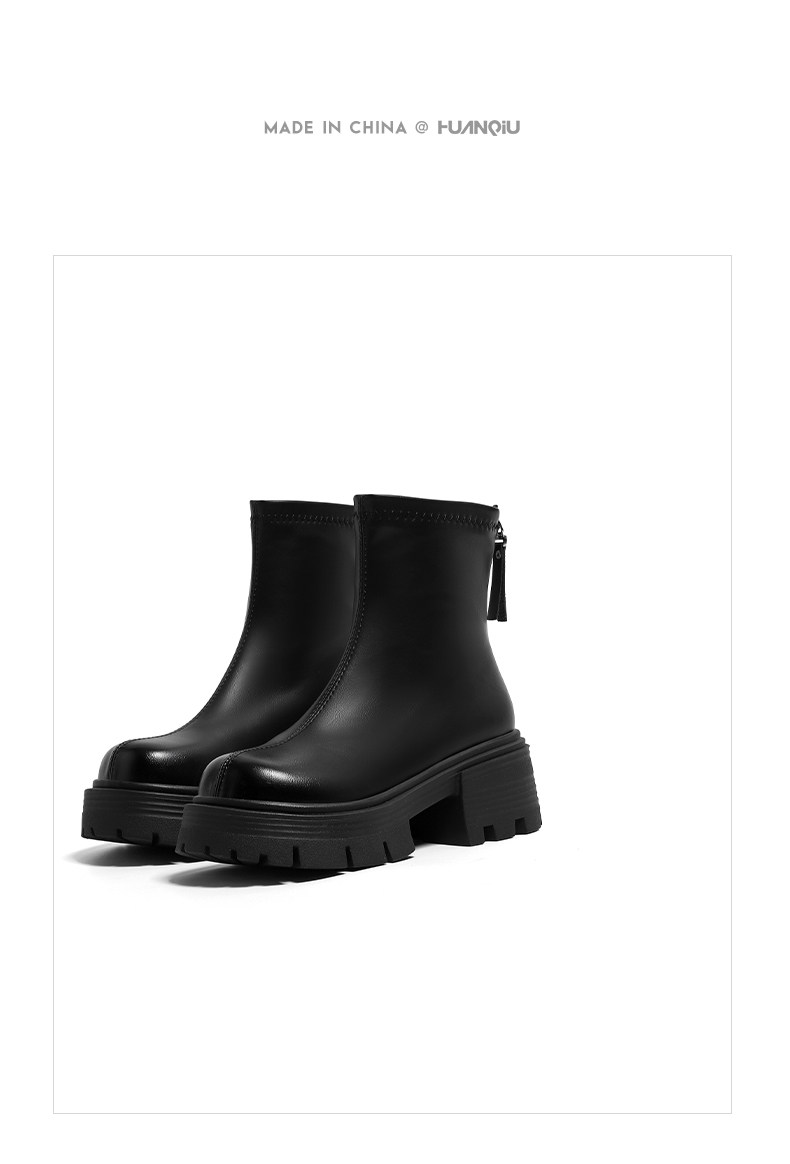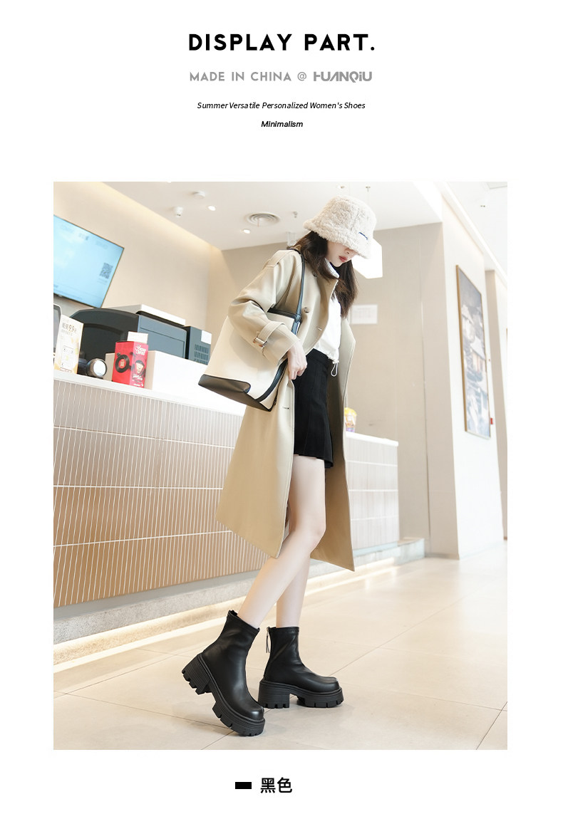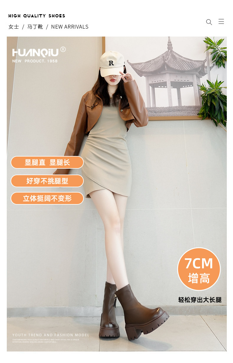 環球厚底馬丁靴女款2026春季新款英倫風黑色增高靴子女皮面短靴