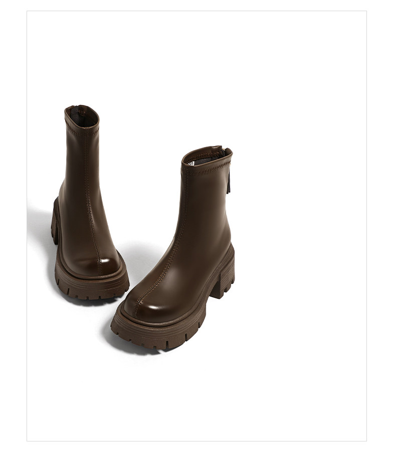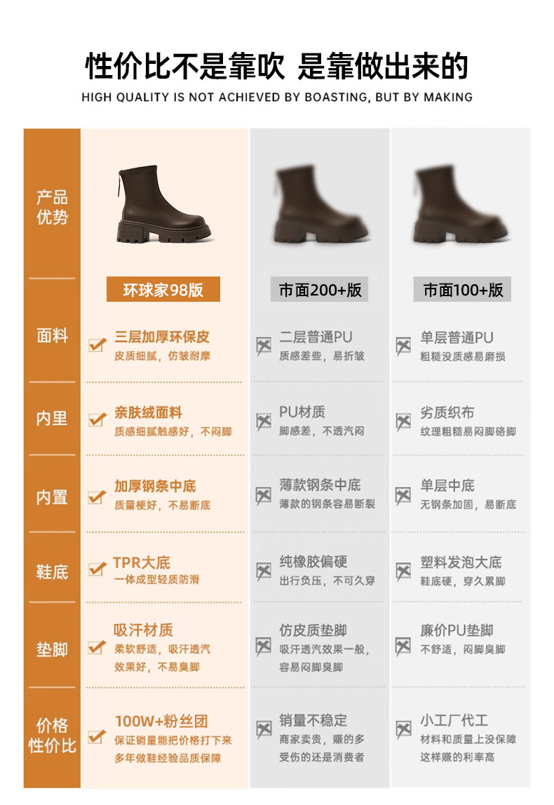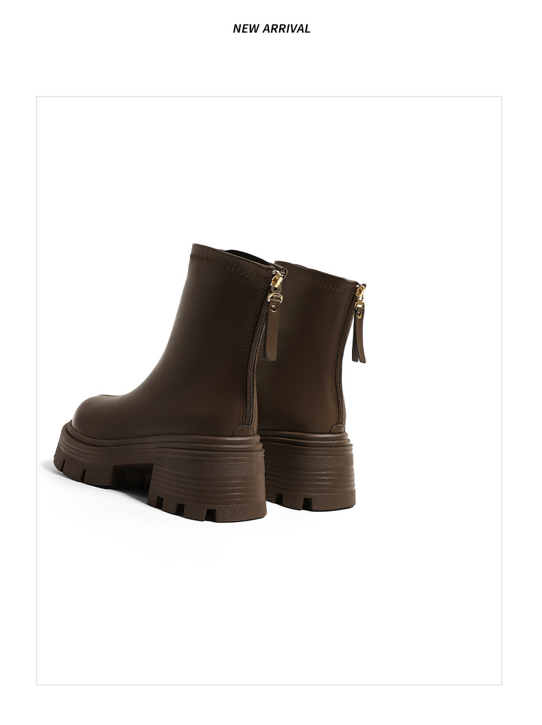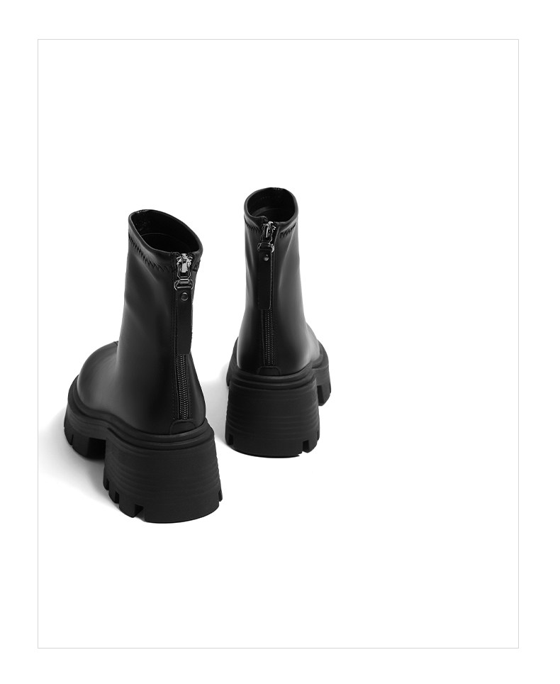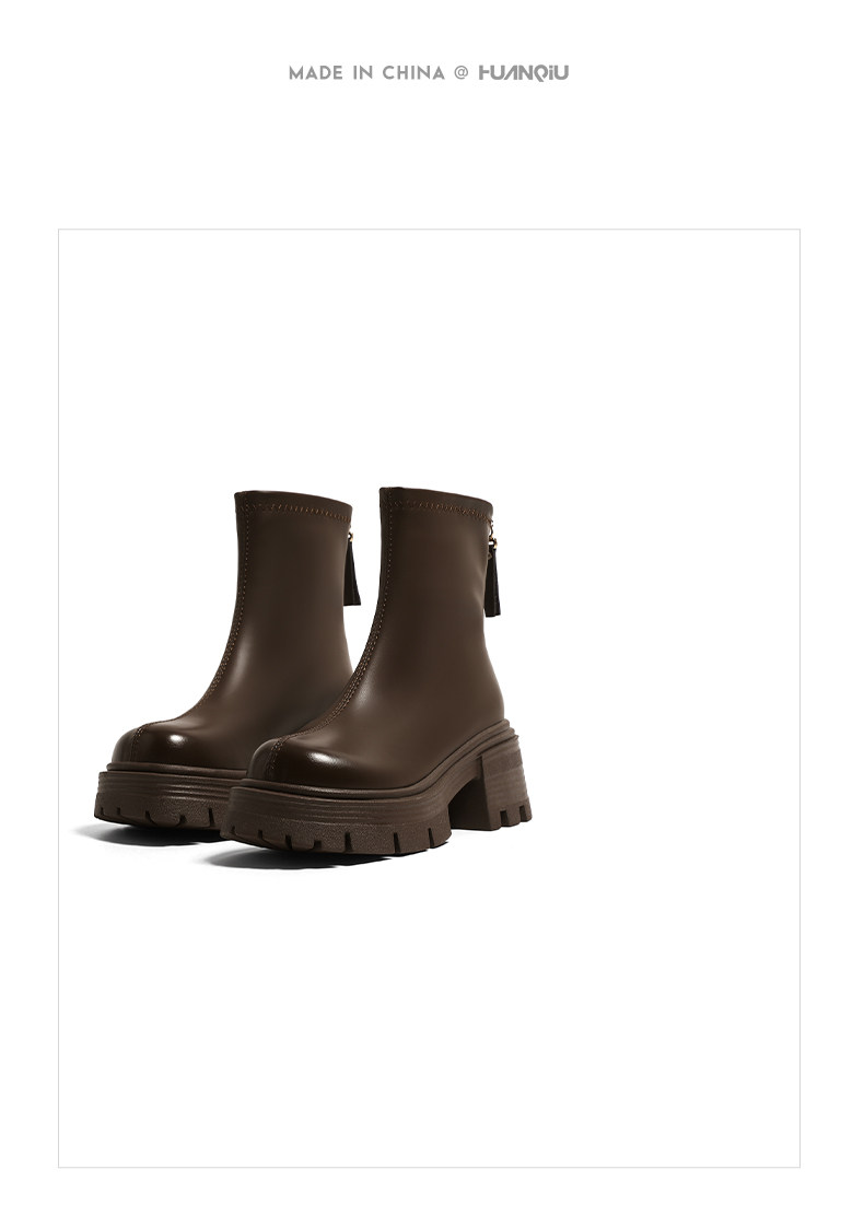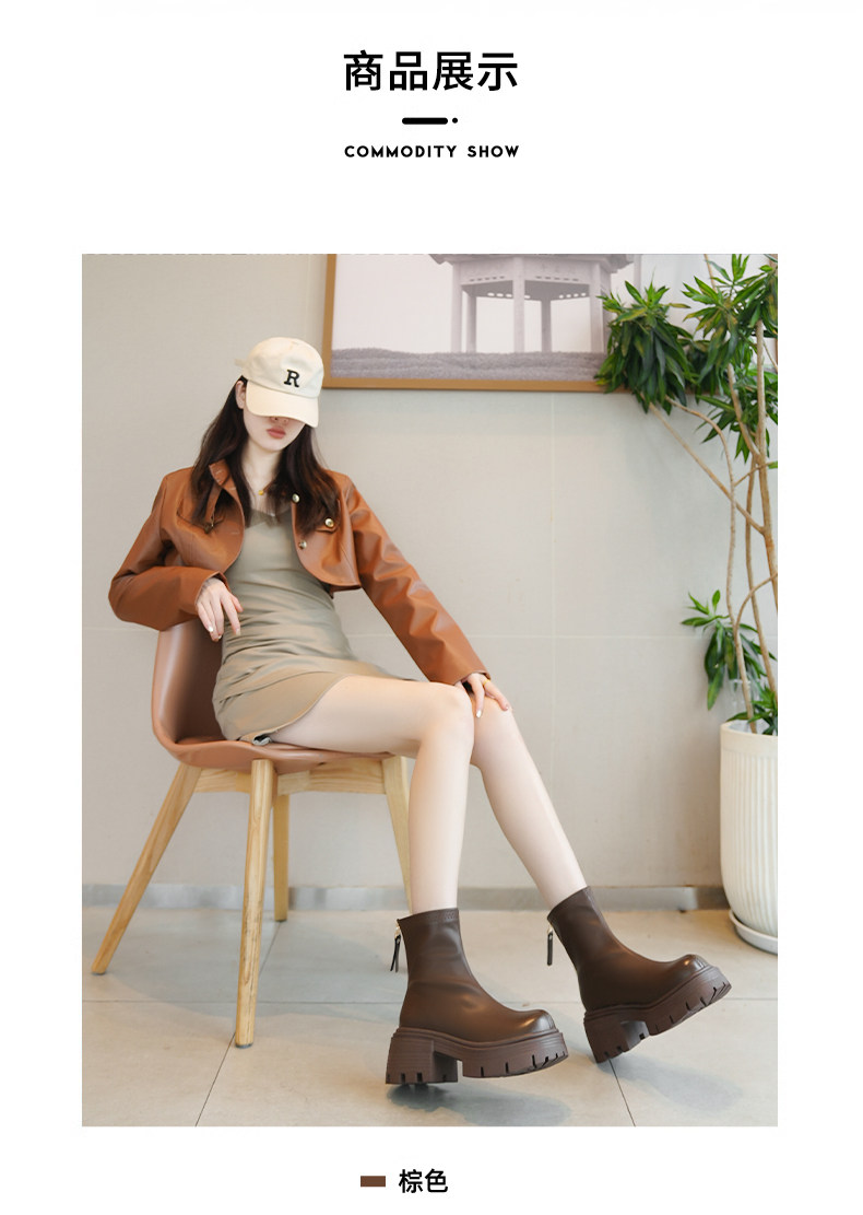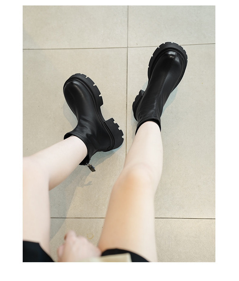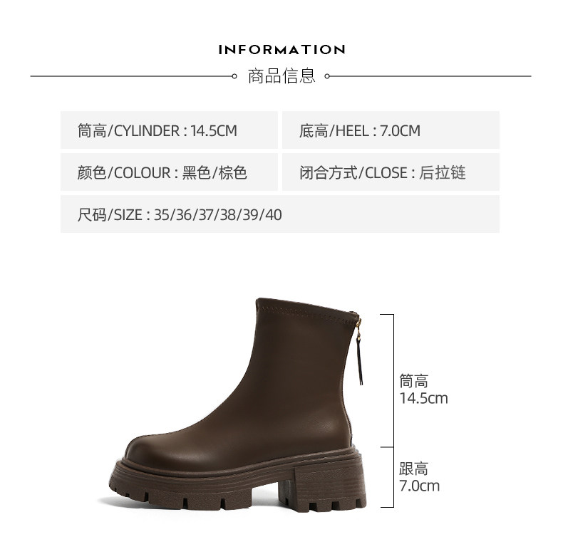 環球厚底馬丁靴女款2026春季新款英倫風黑色增高靴子女皮面短靴