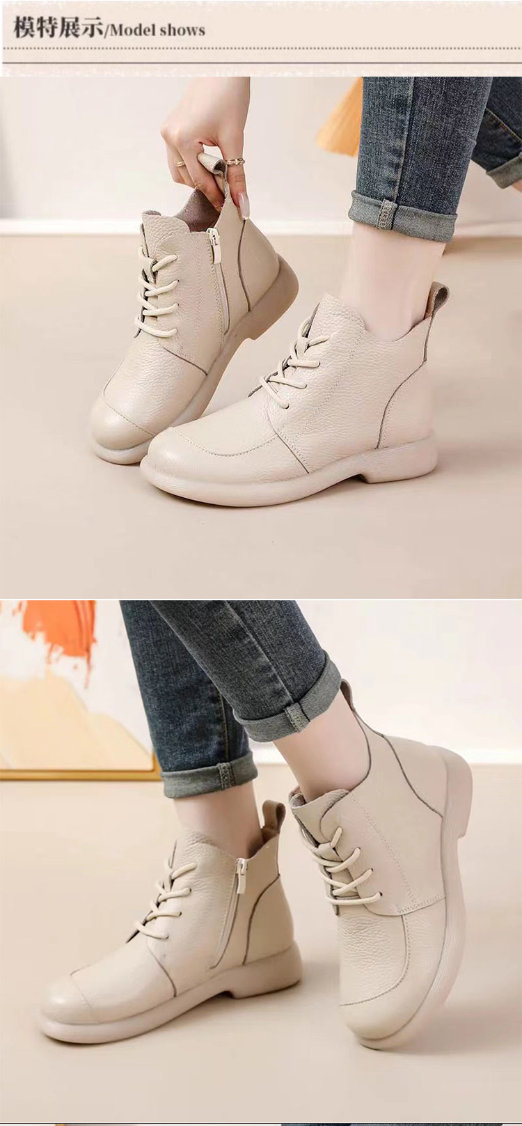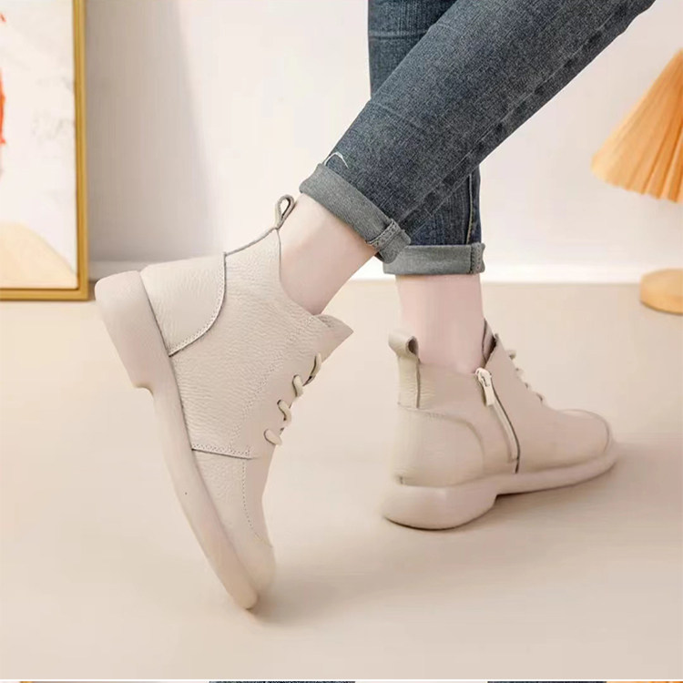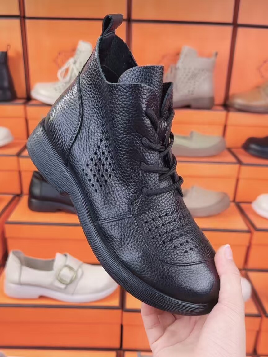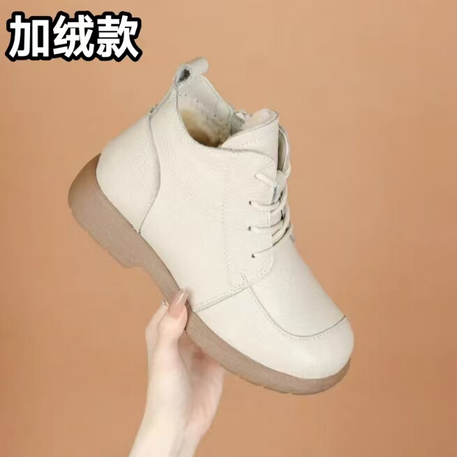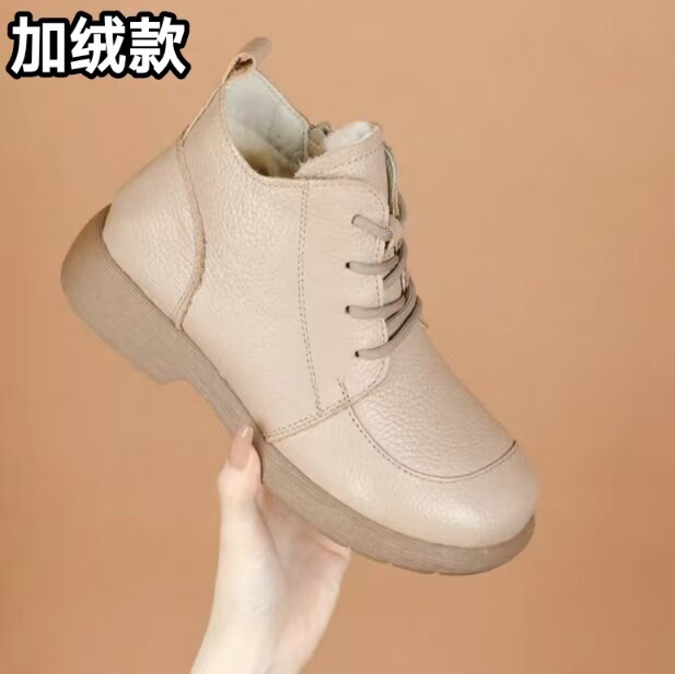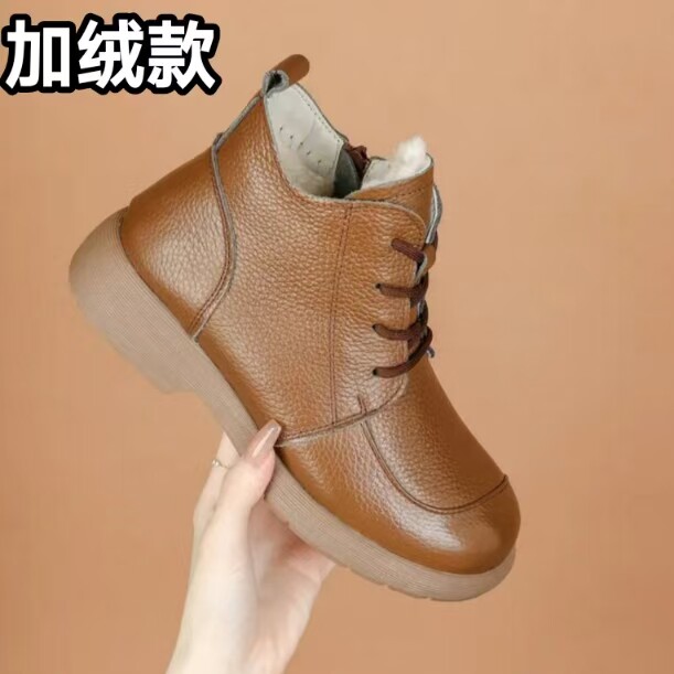 頭層牛皮短靴秋季新款馬丁靴粗跟防滑真皮復古百搭女靴手工媽媽鞋