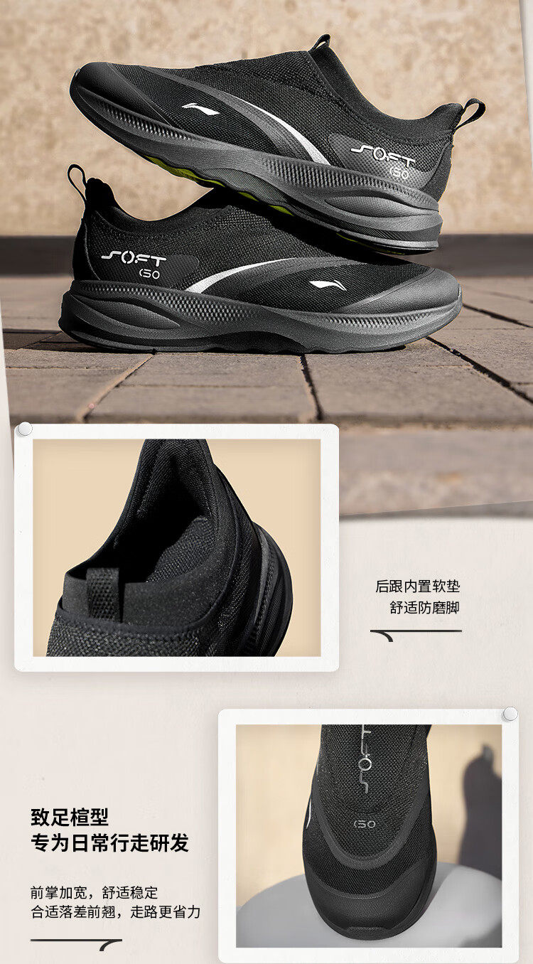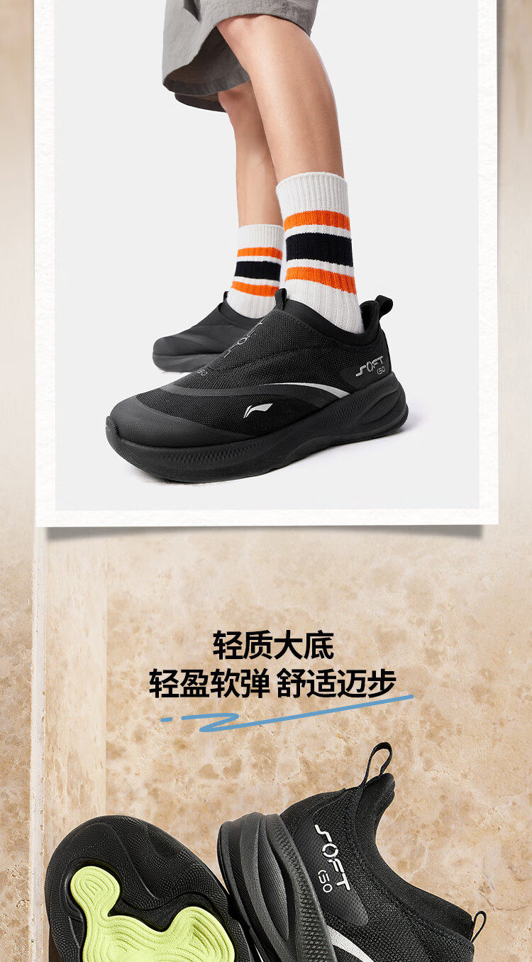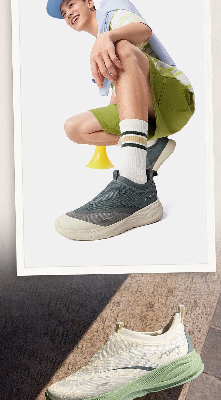 李甯2025春季SOFT GO 2運動休閒鞋男子一腳蹬柔軟運動鞋AGLV005