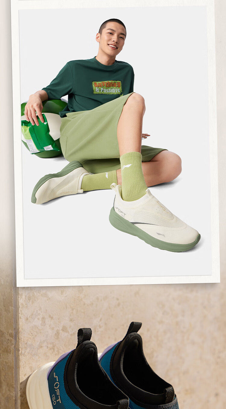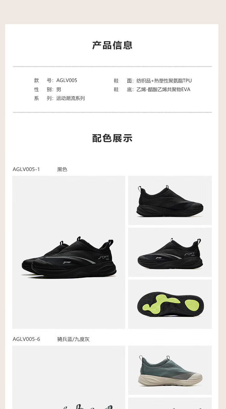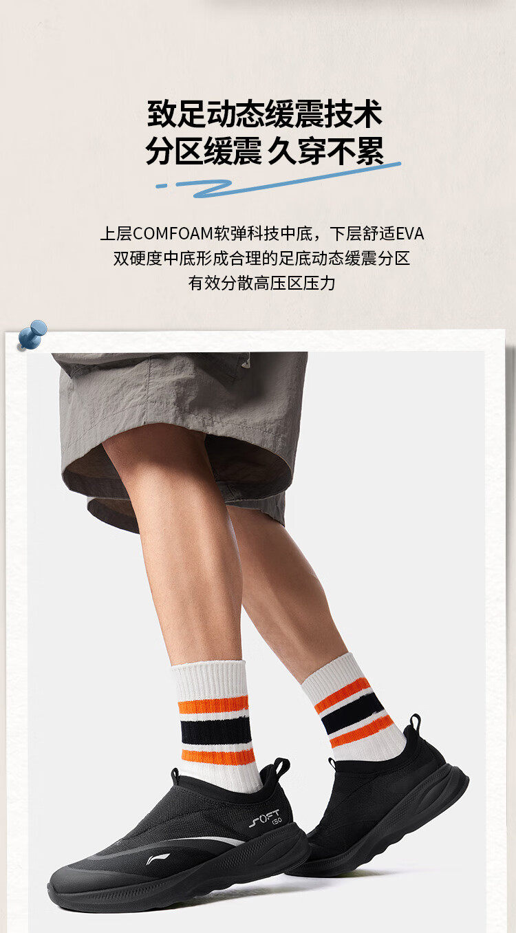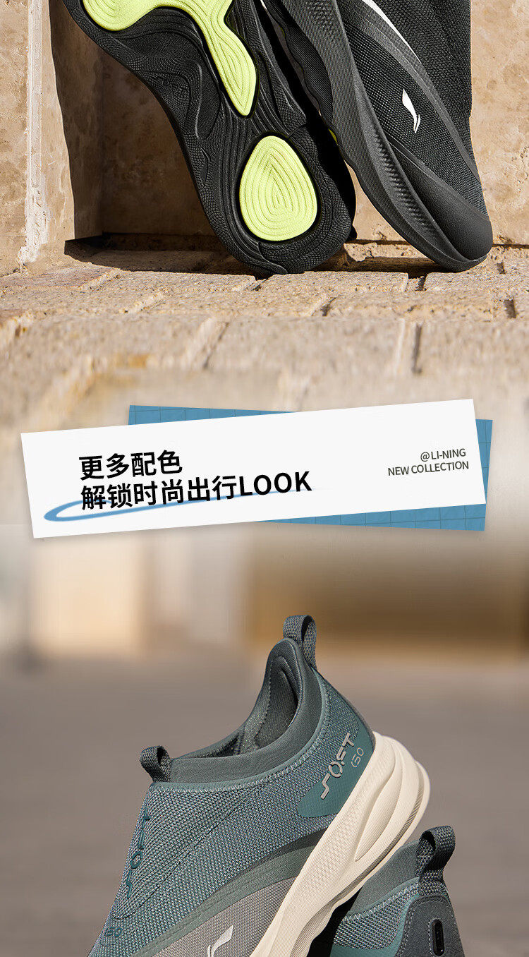 李甯2025春季SOFT GO 2運動休閒鞋男子一腳蹬柔軟運動鞋AGLV005