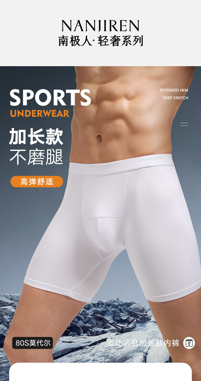 南極人男士內褲防磨腿襠男式莫代爾透氣夏薄款加長款運動跑步四角