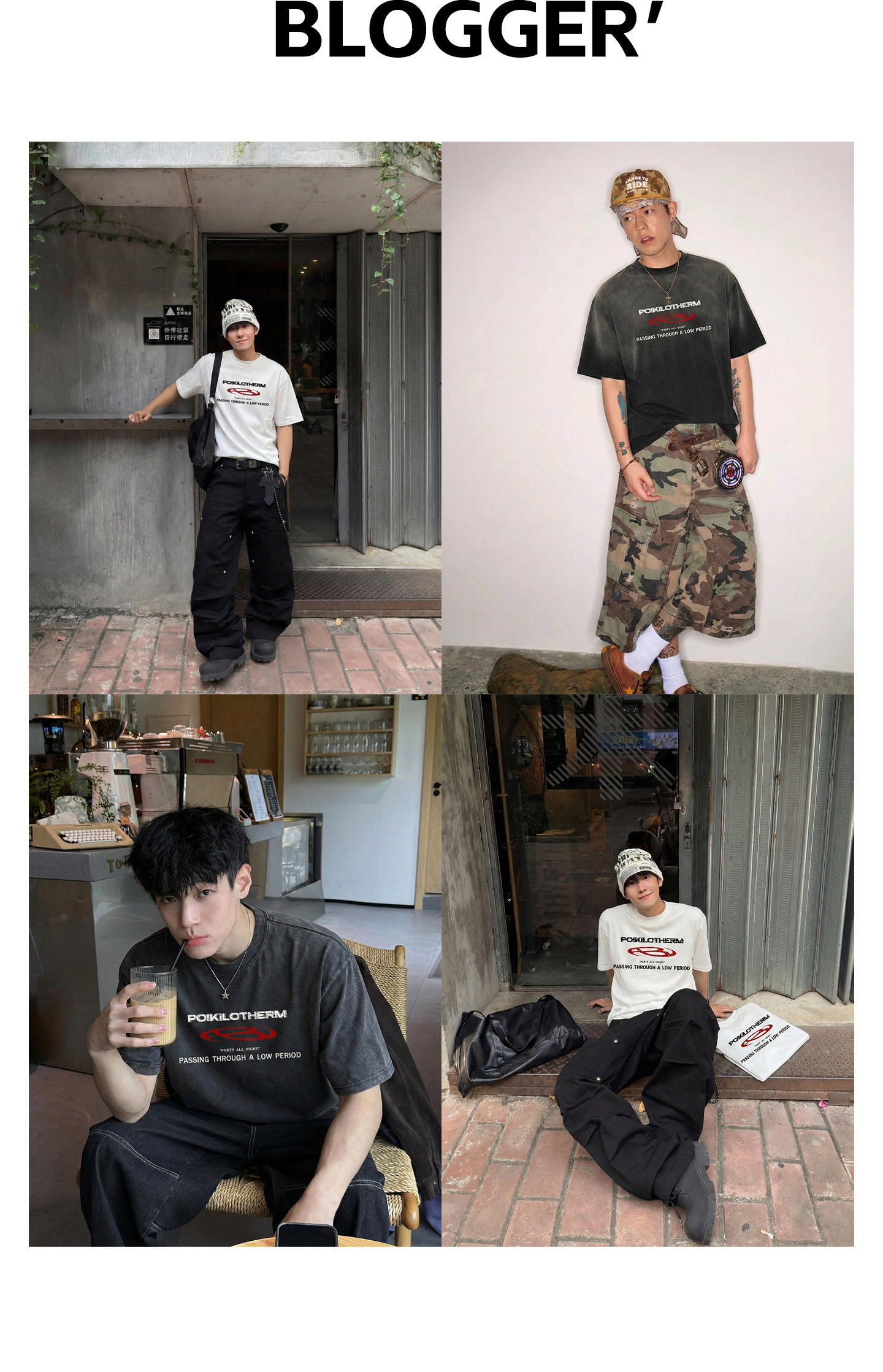 PLTH*漸變水洗重磅美式復古休閒日常百搭T恤男女寬鬆落肩純棉短袖
