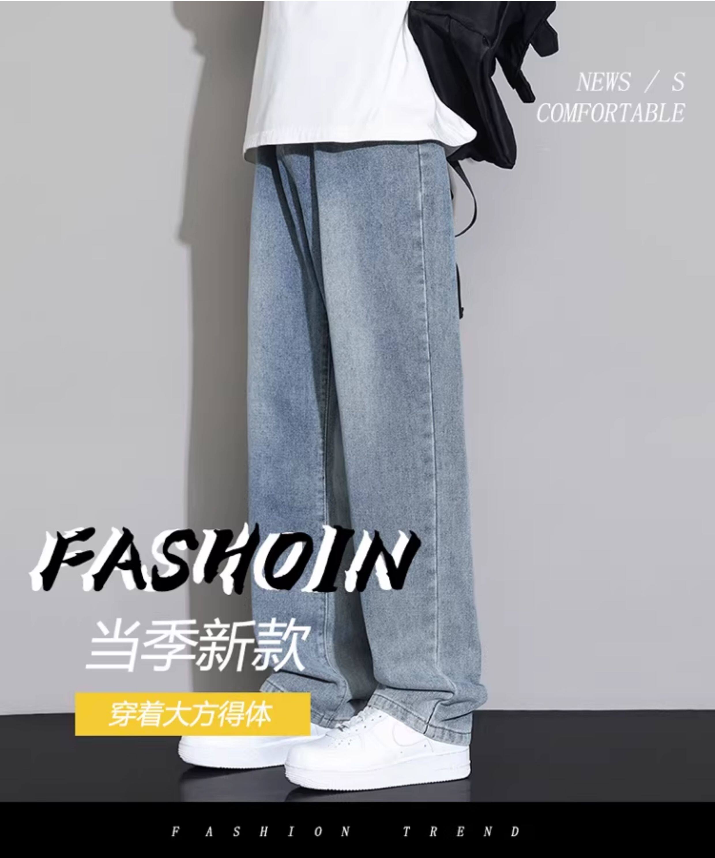 美式牛仔褲男春秋季寬鬆直筒褲子男復古水洗長褲青少年休閒濶腿褲