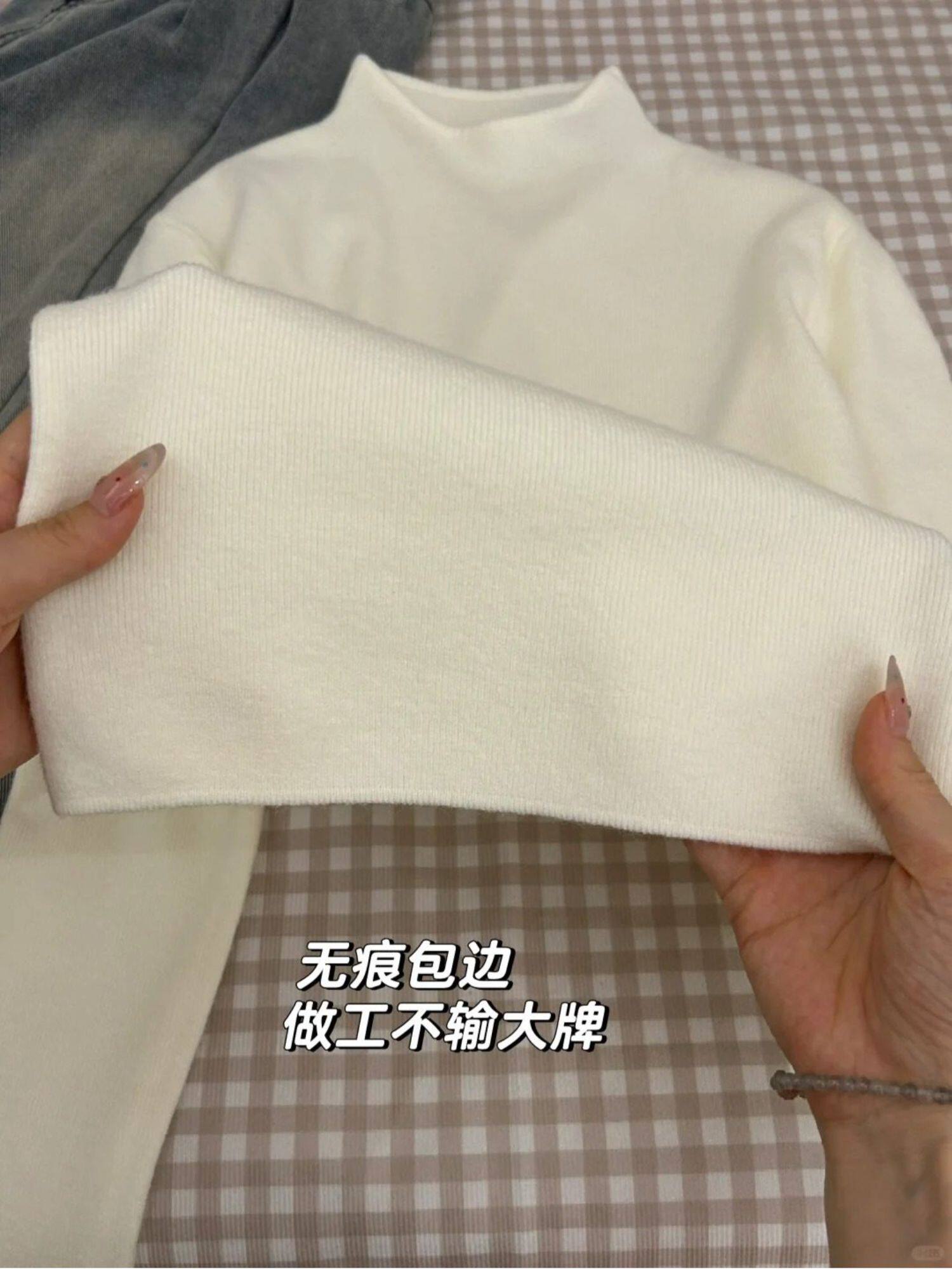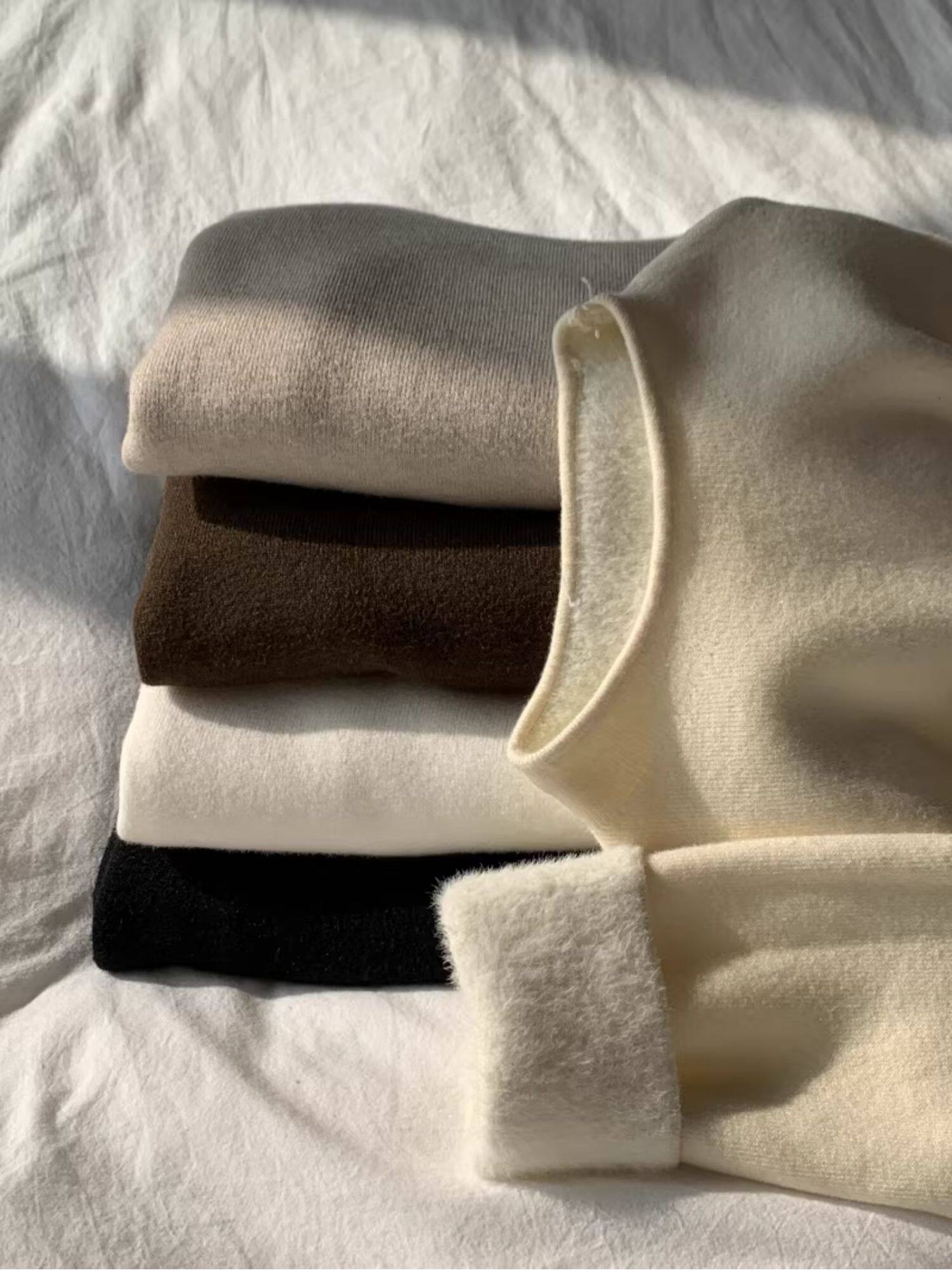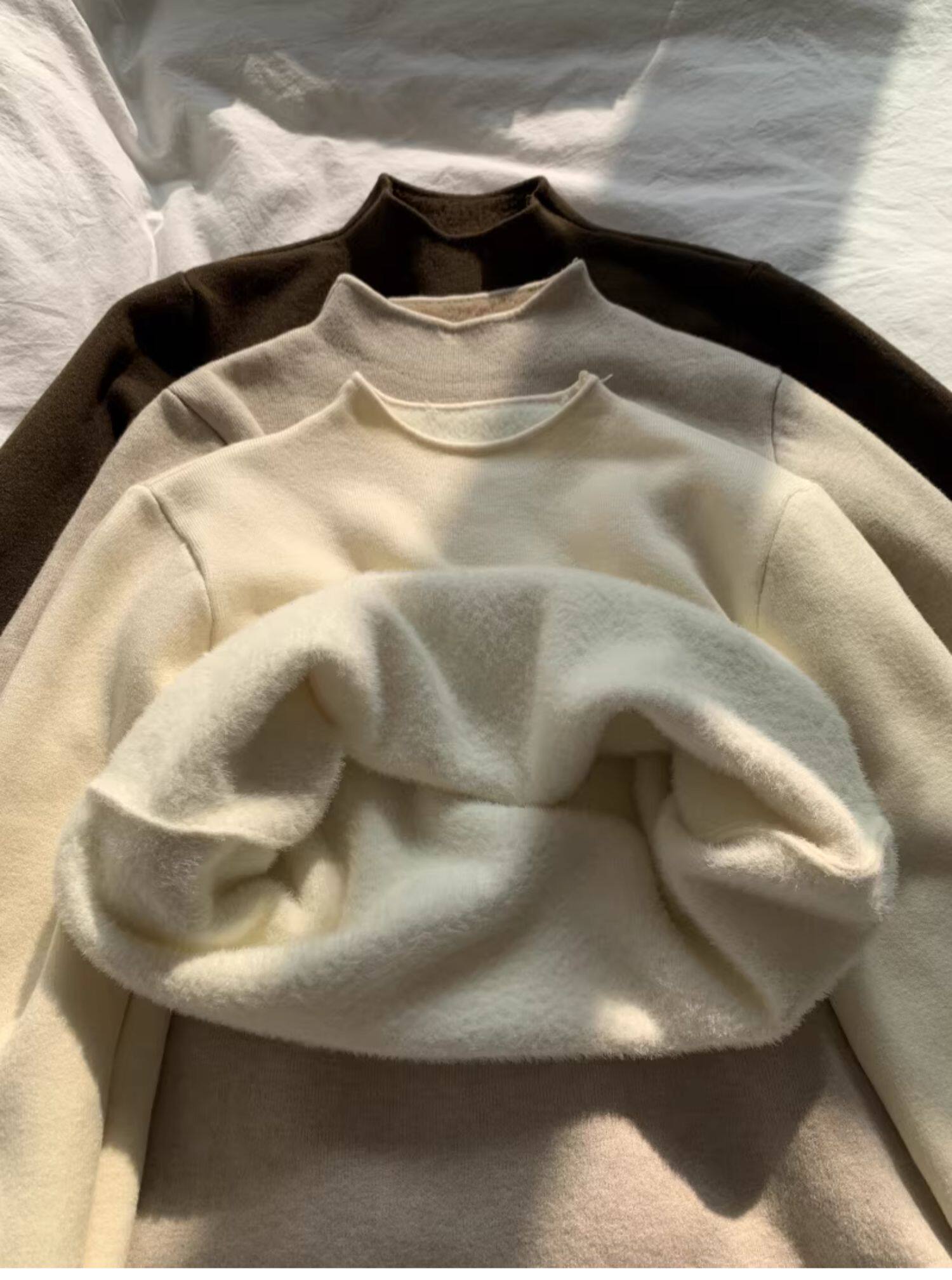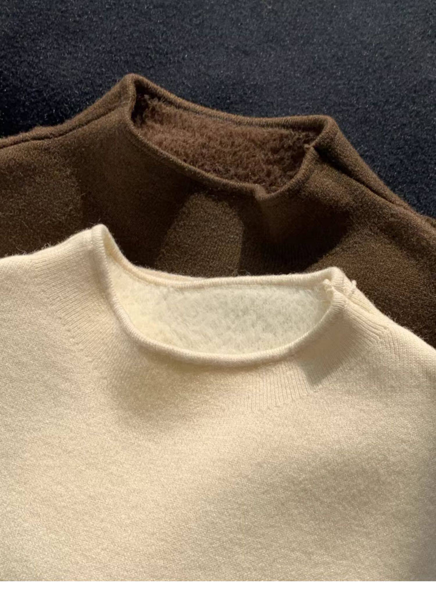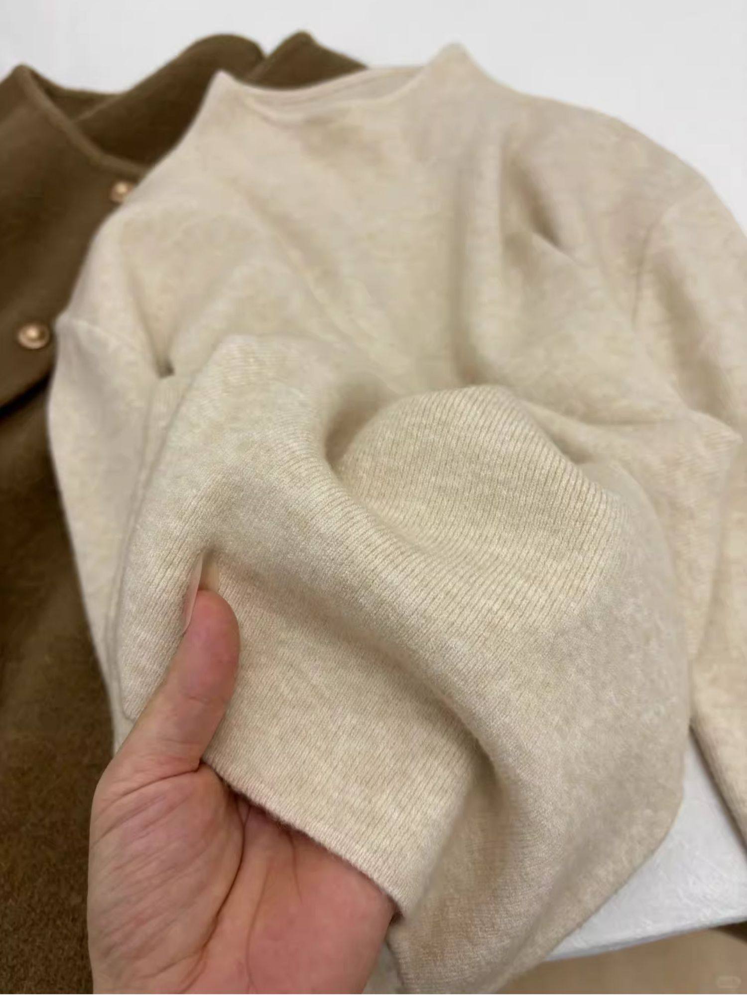 小立領奶fufu軟糯針織衫長袖打底衫女裝春秋冬季加絨毛衣上衣內搭