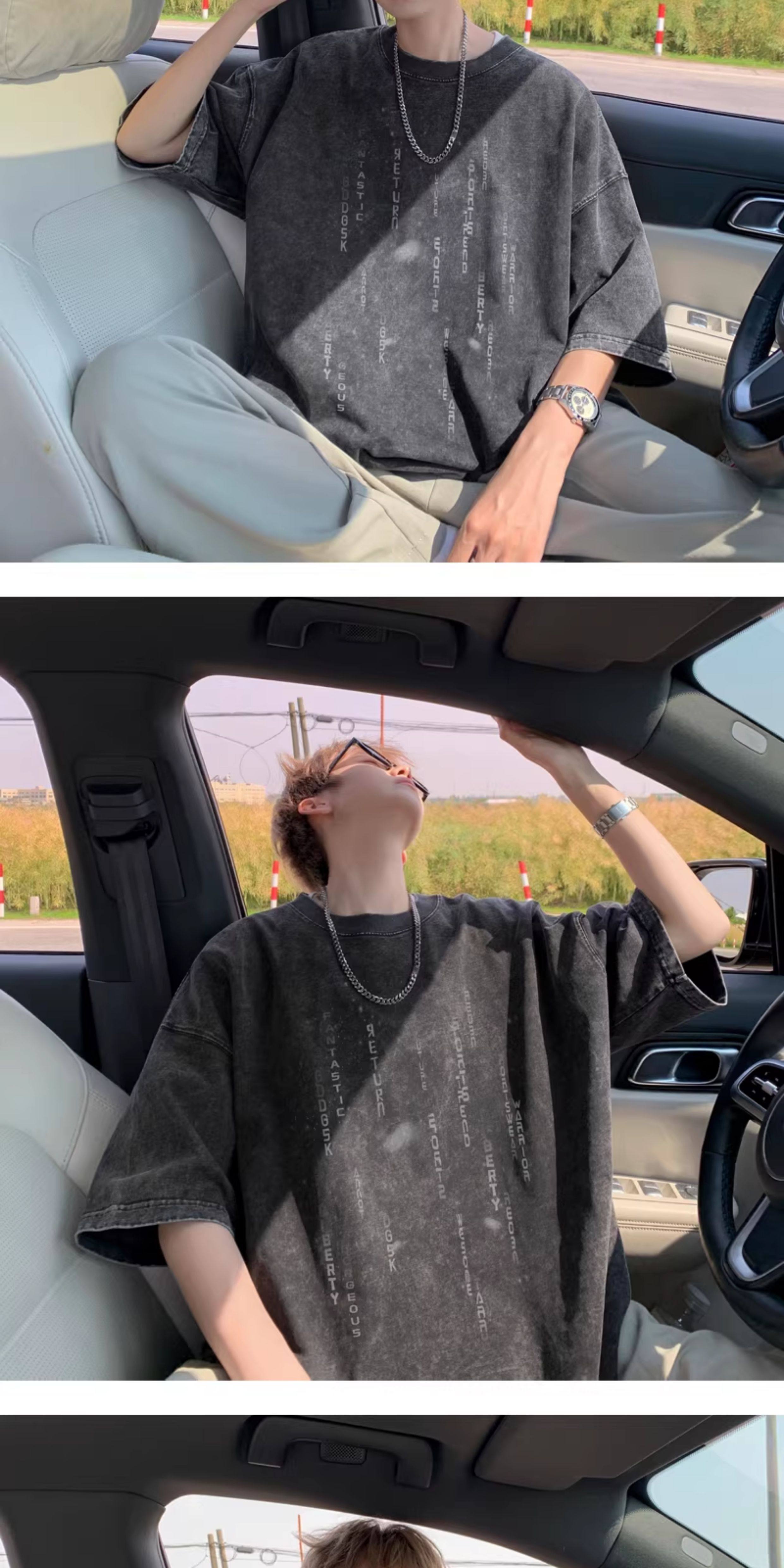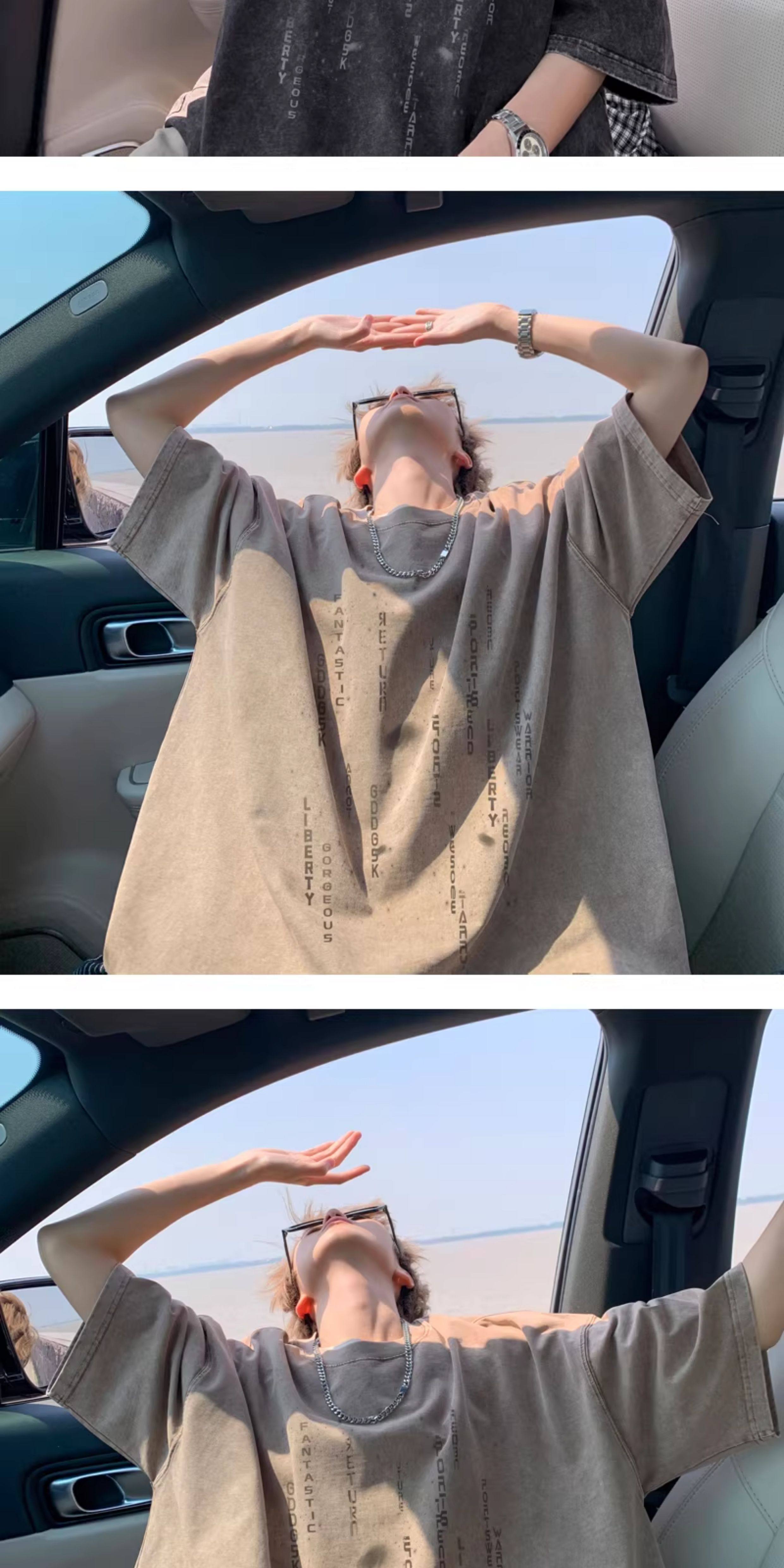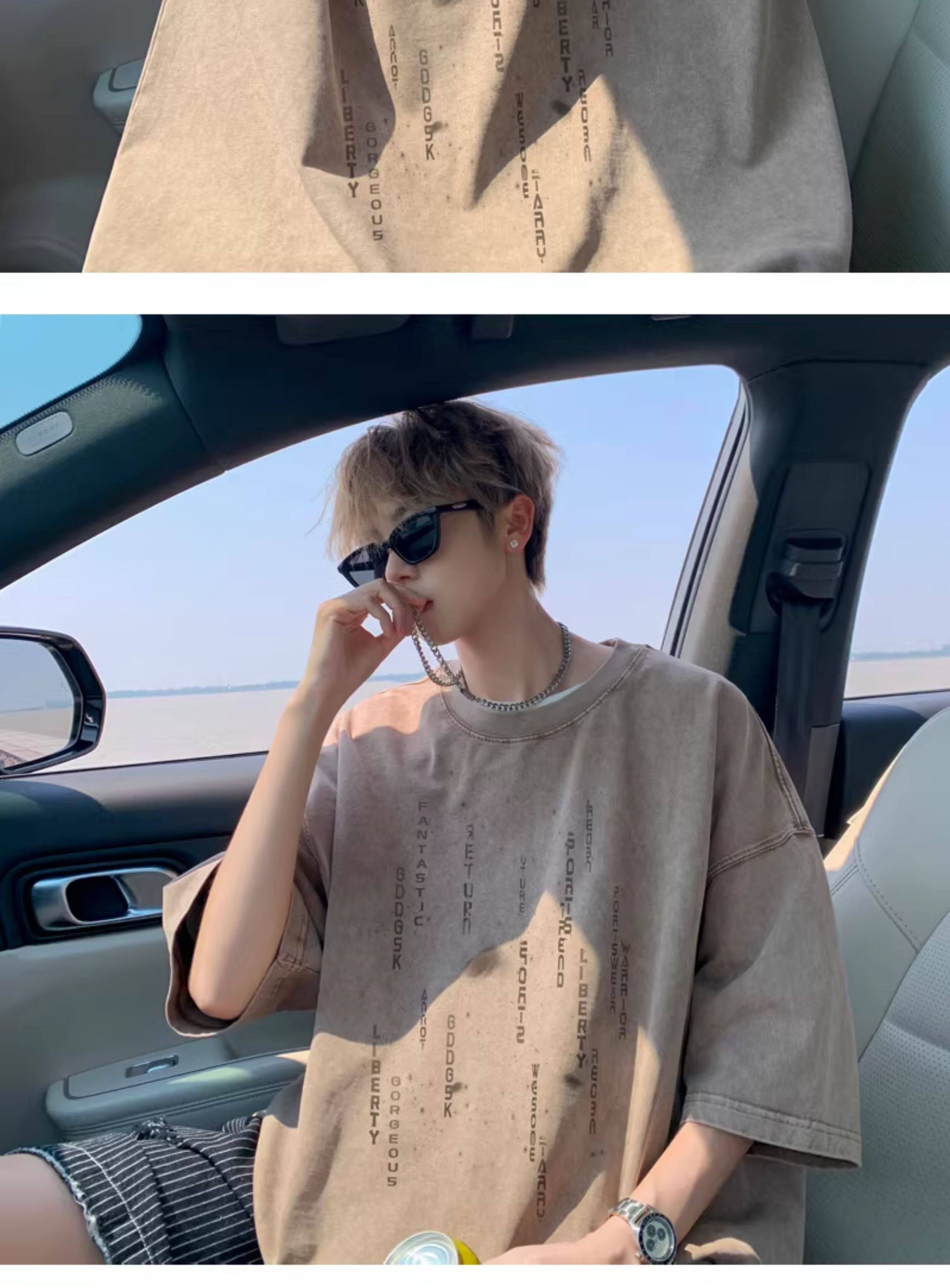 重磅水洗短袖t恤男夏季情侶羽絨馬甲字母印花寬鬆打底衫半袖體恤