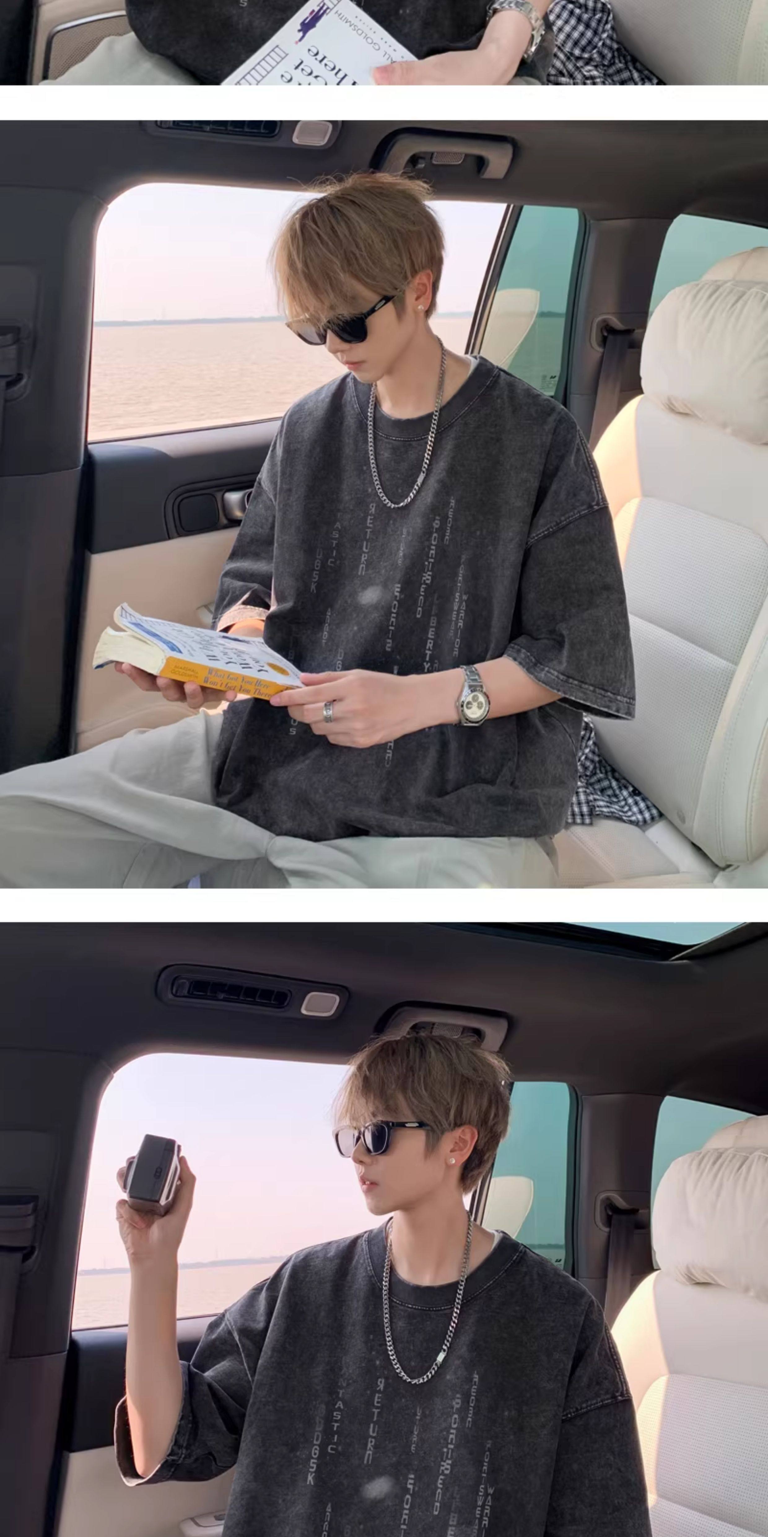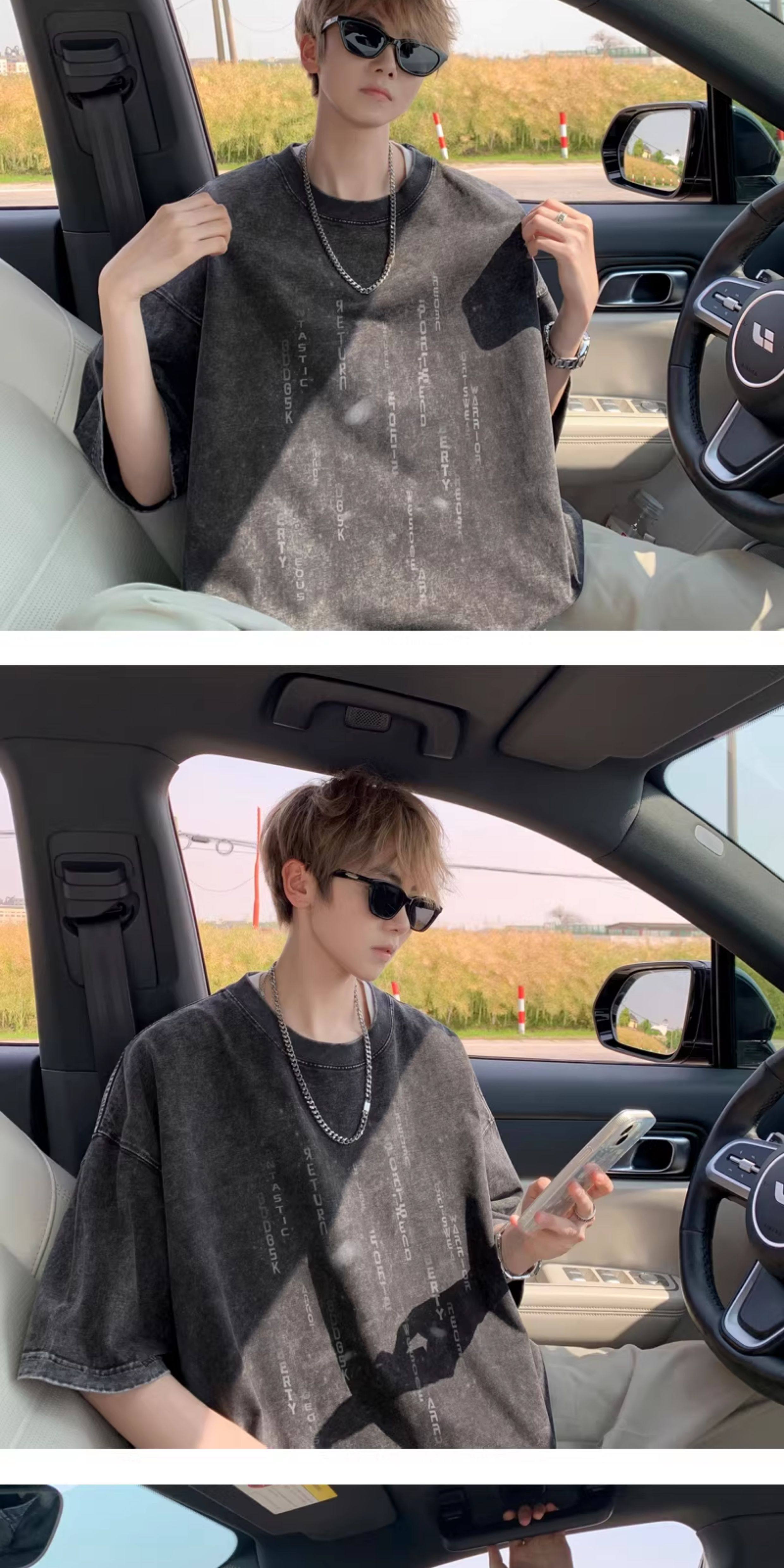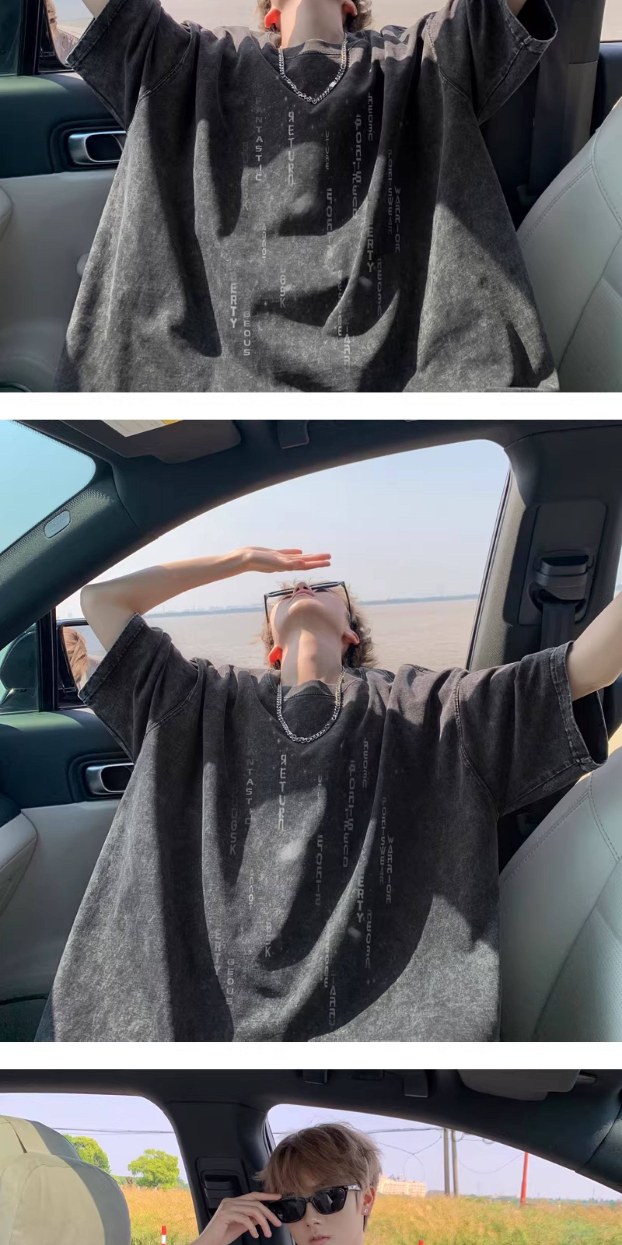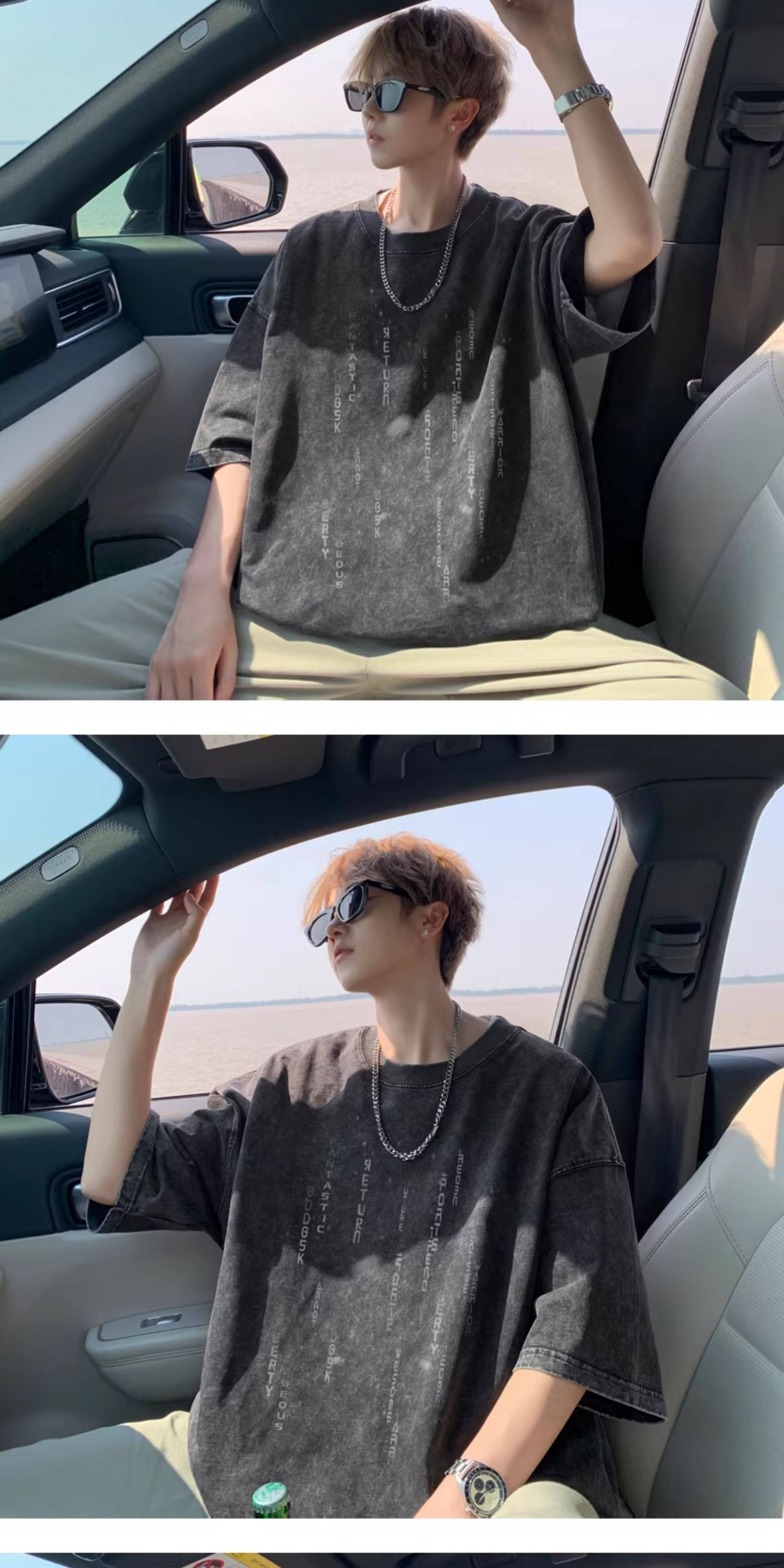 重磅水洗短袖t恤男夏季情侶羽絨馬甲字母印花寬鬆打底衫半袖體恤