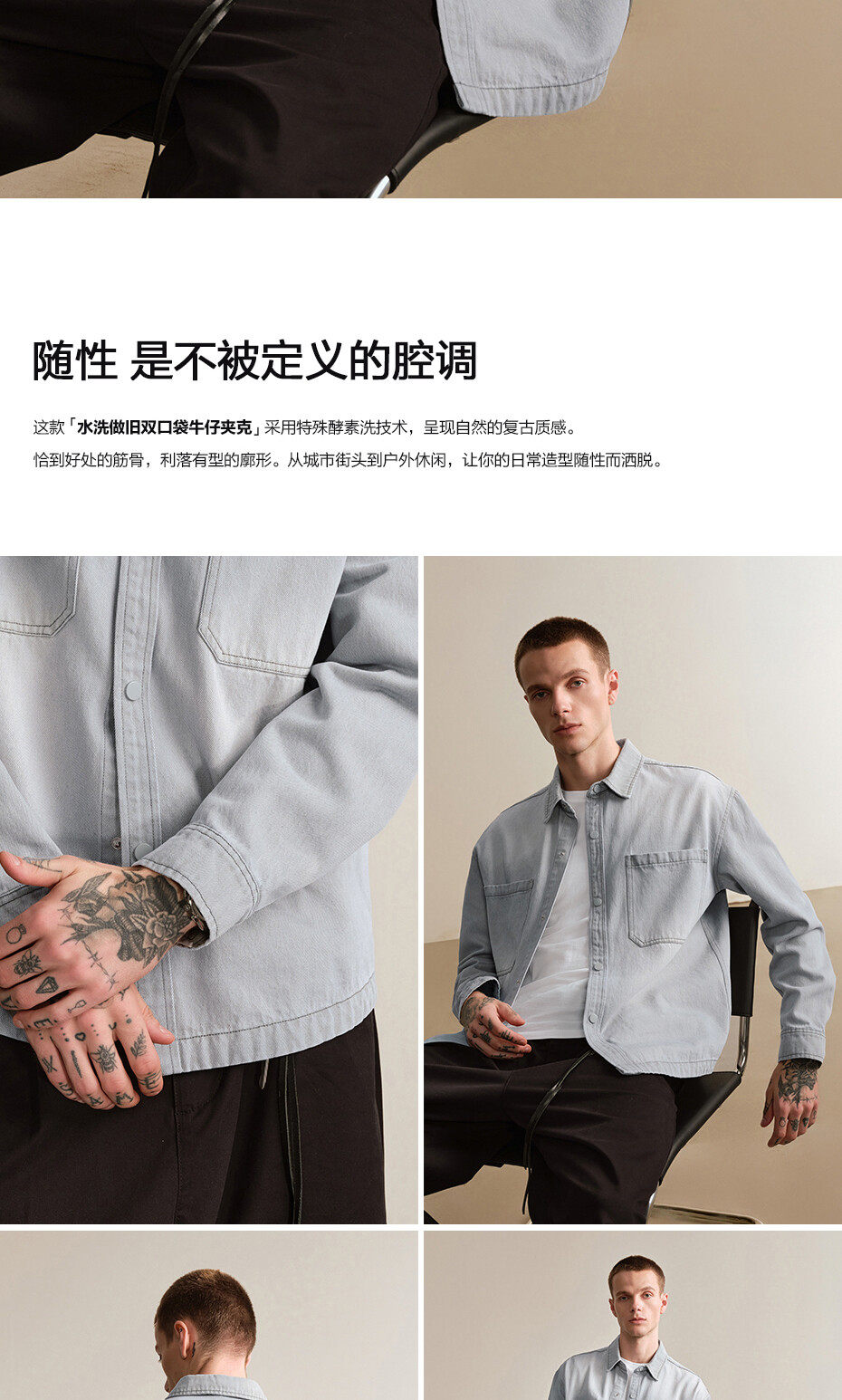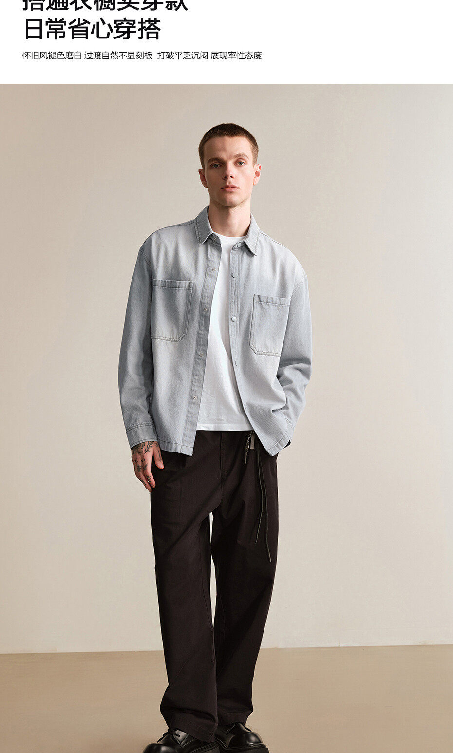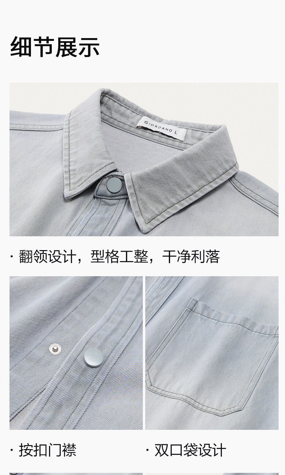 佐丹奴設計師款繙領牛仔夾克男新款水洗寬鬆牛仔襯衫外套18075806