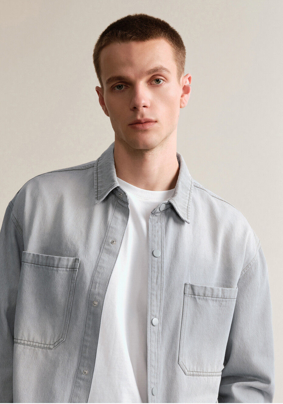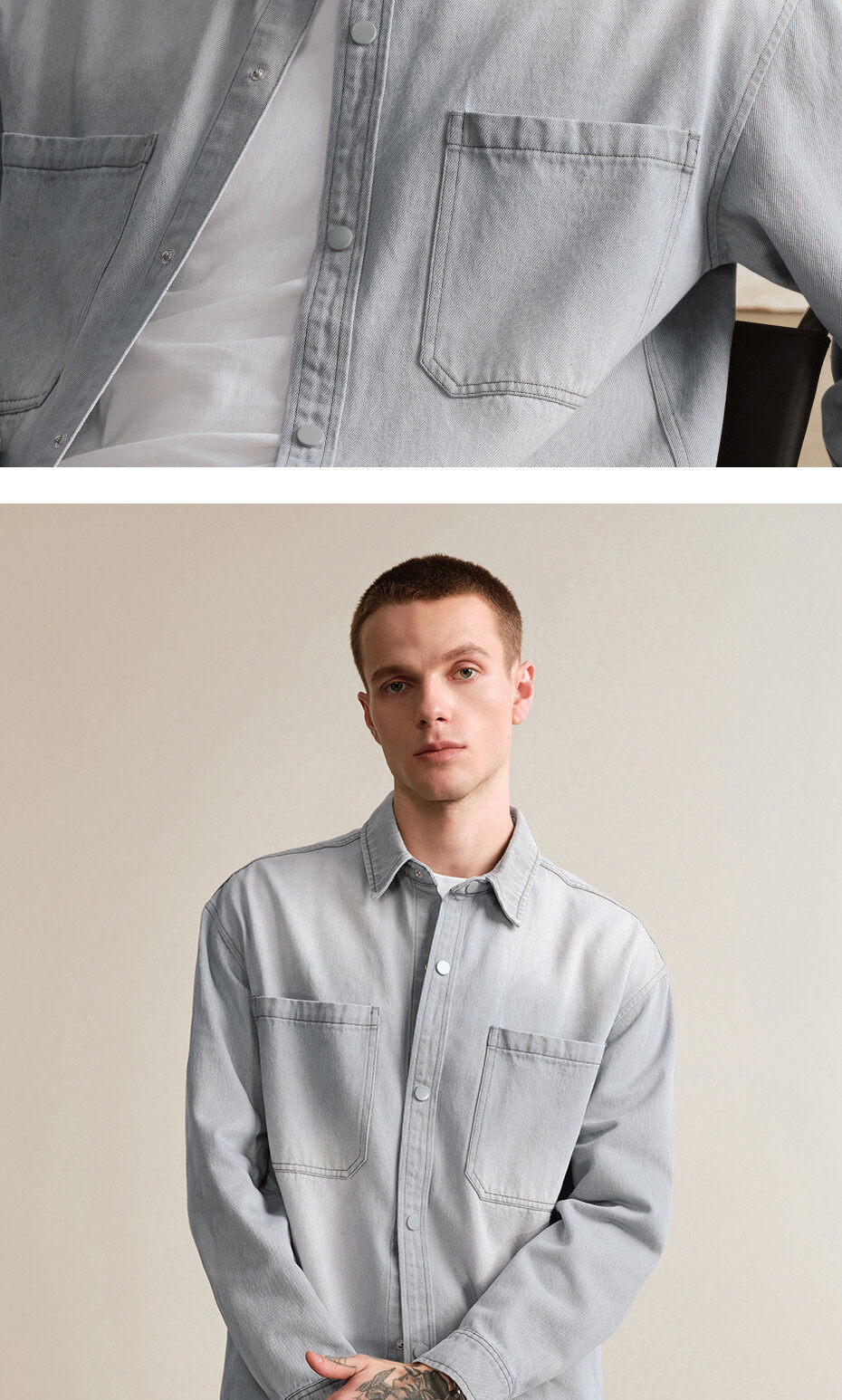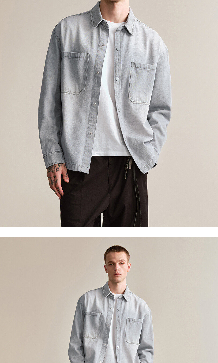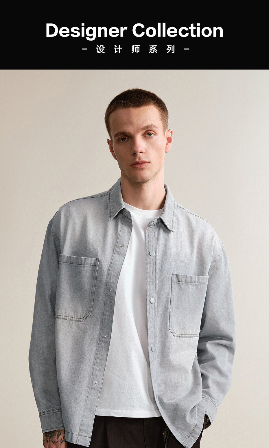 佐丹奴設計師款繙領牛仔夾克男新款水洗寬鬆牛仔襯衫外套18075806