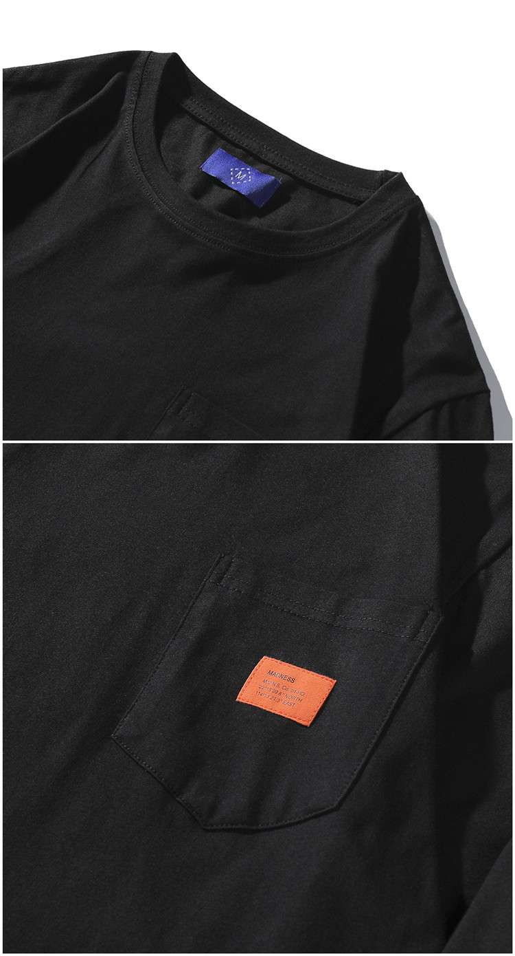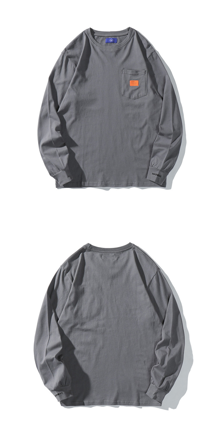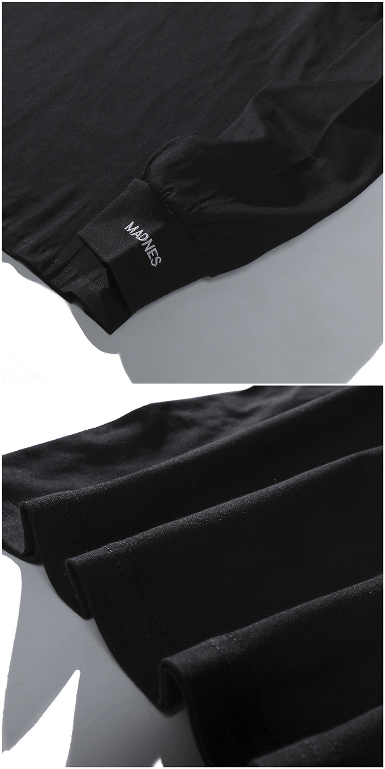 潮牌MDNS餘文樂春秋季長袖t恤男寬鬆圓領純色刺綉純棉打底衫衛衣