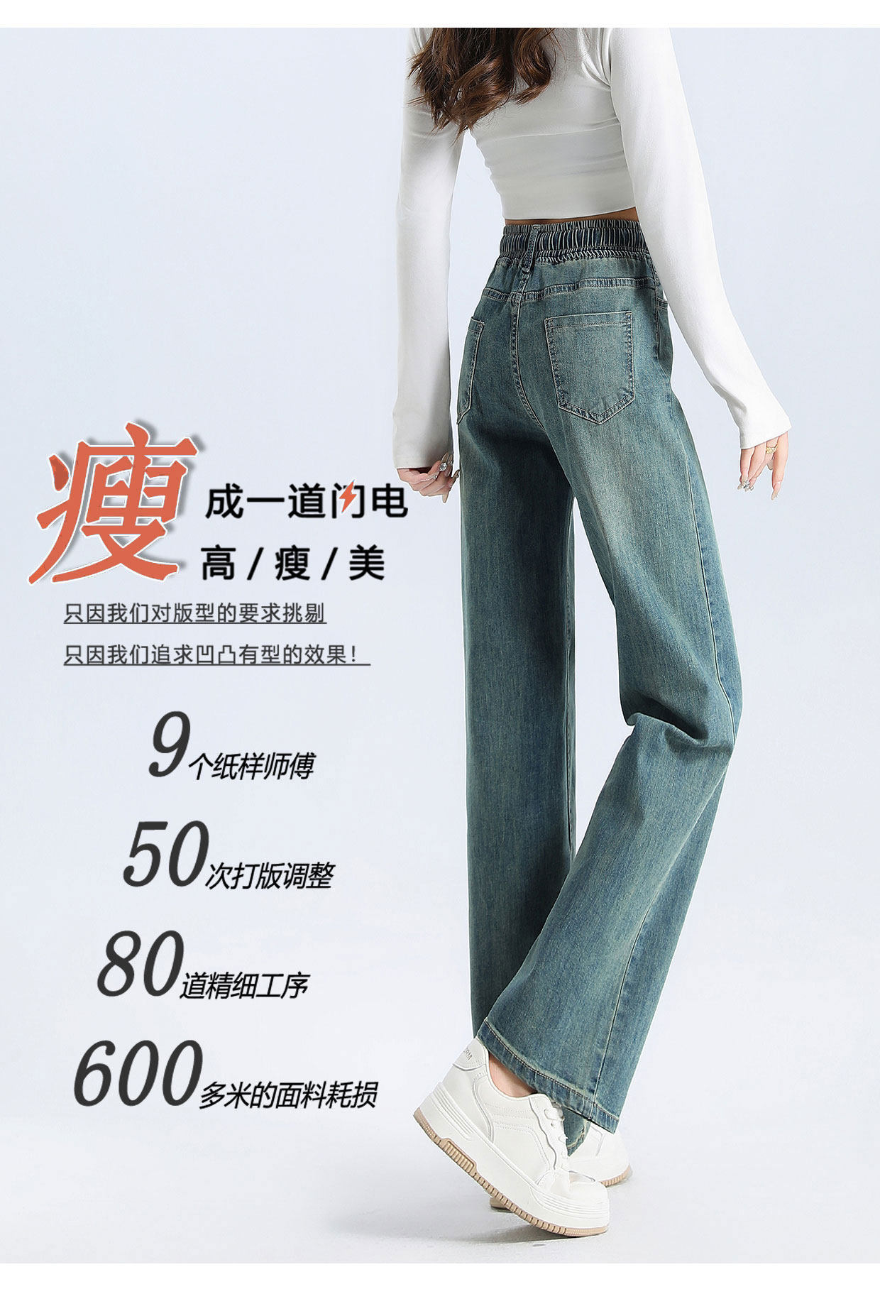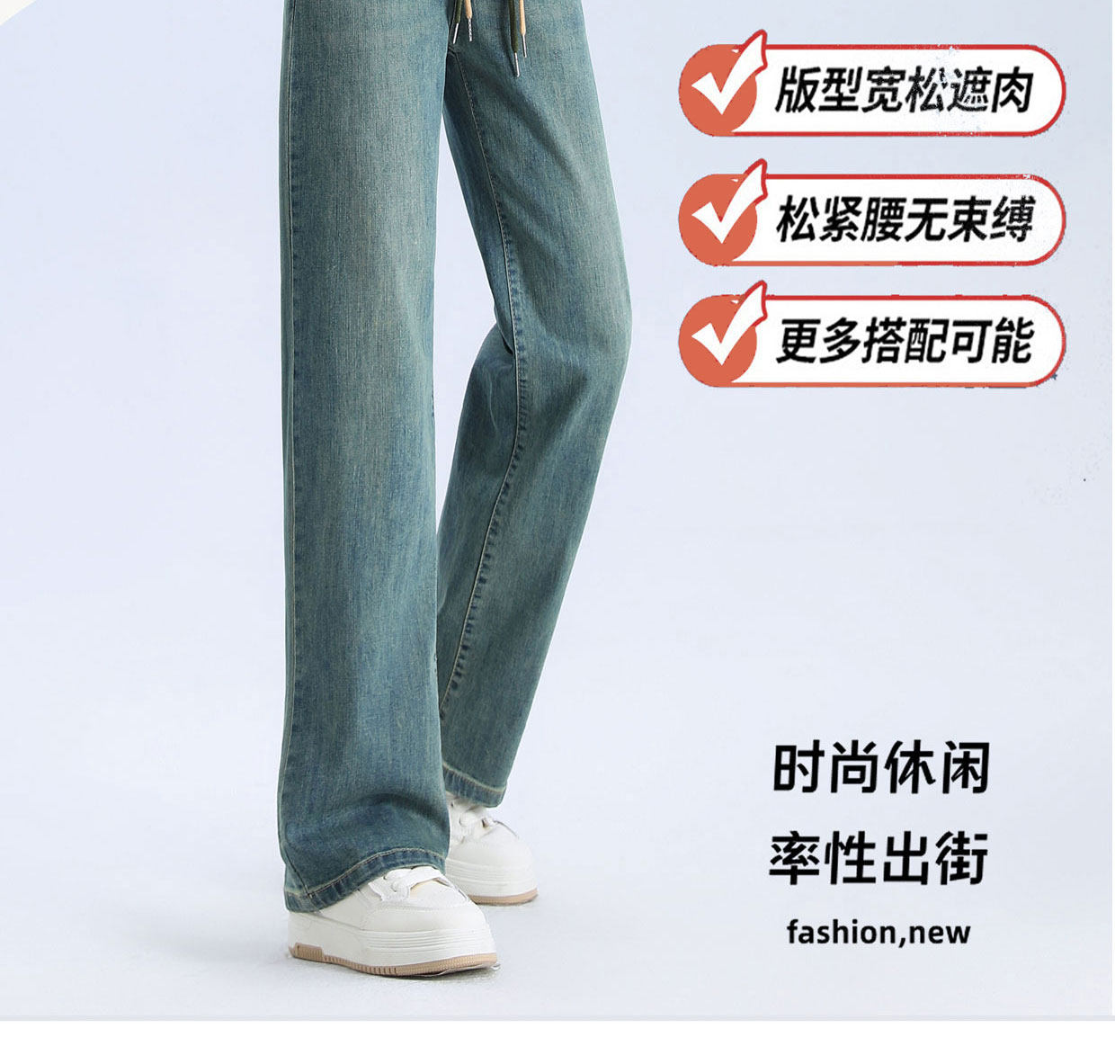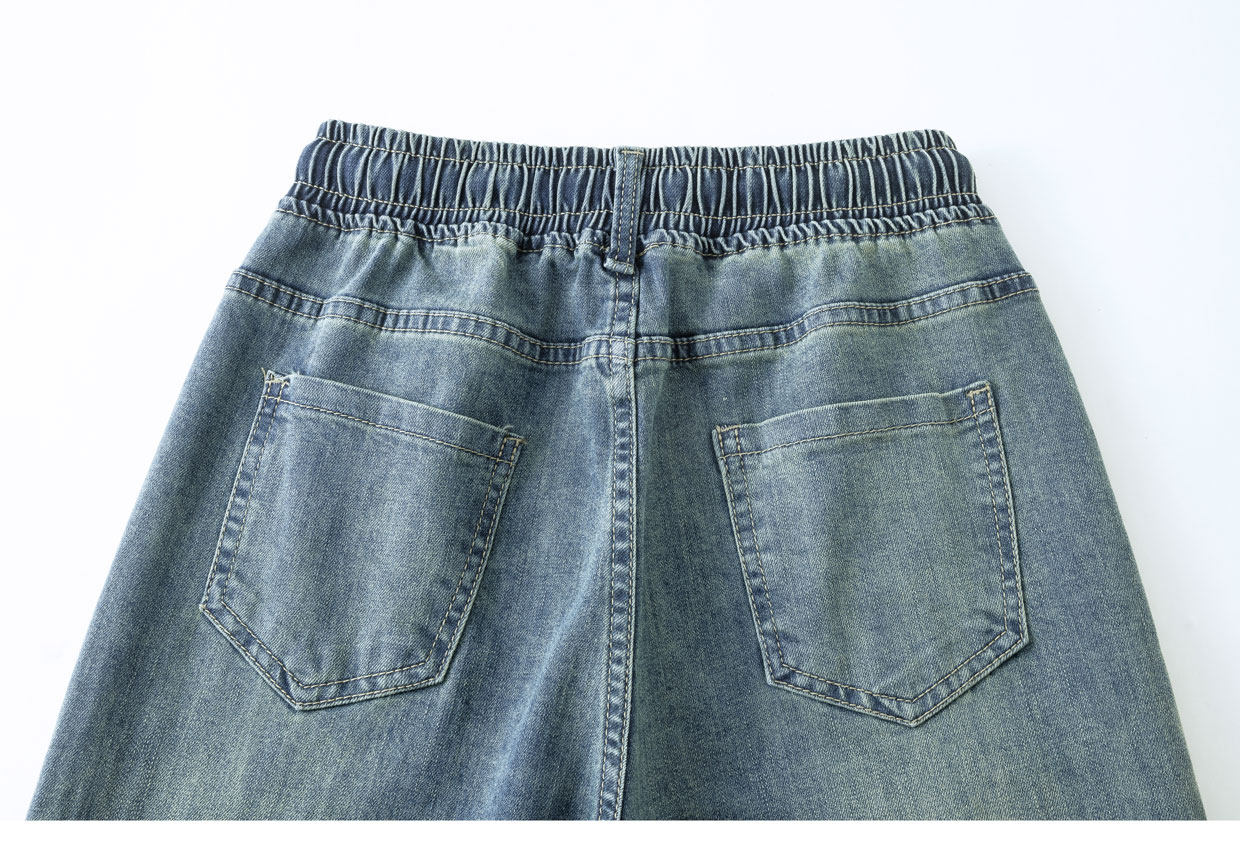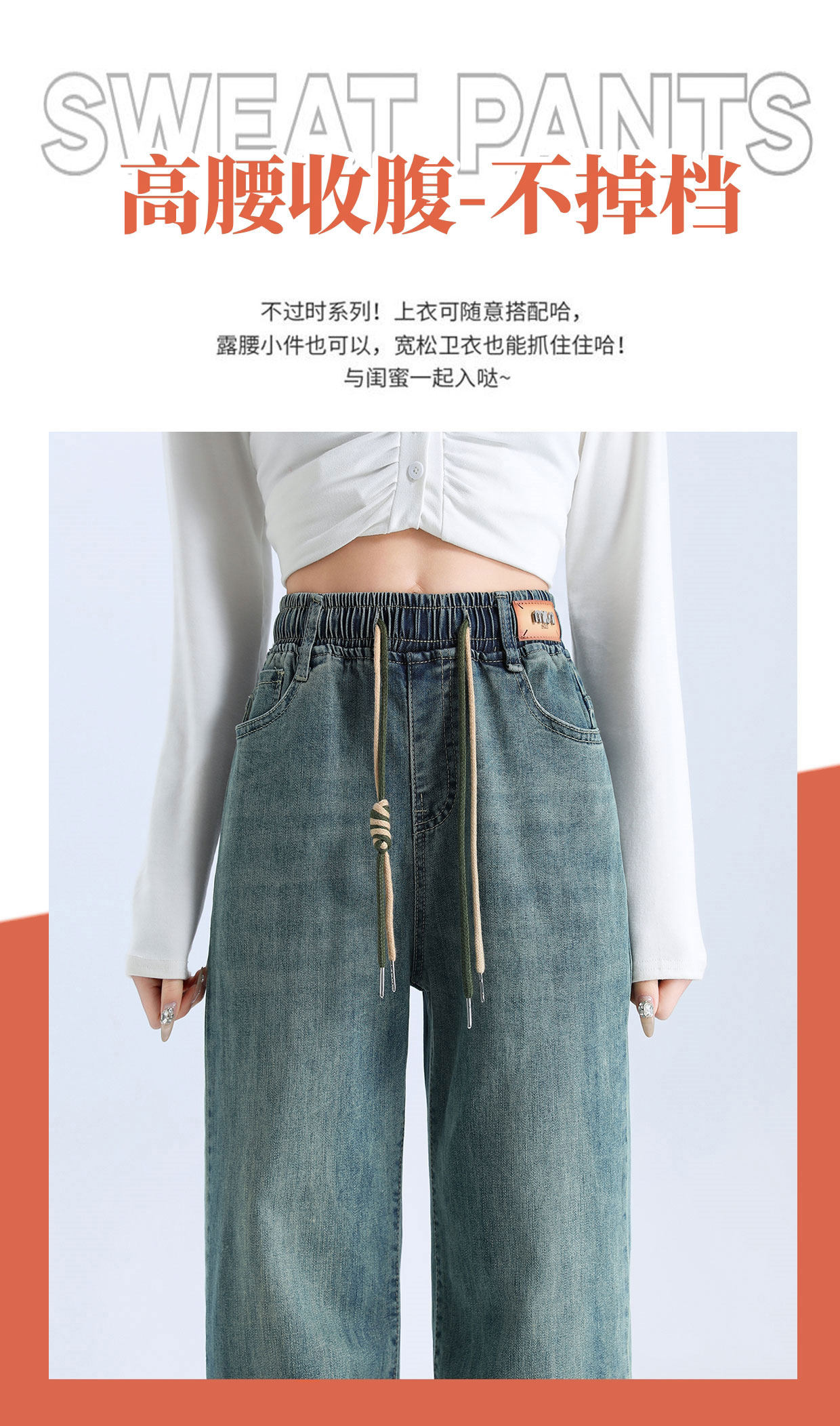 松緊腰直筒牛仔褲女春秋季2026新款寬鬆垂感九分窄版濶腿褲子春裝