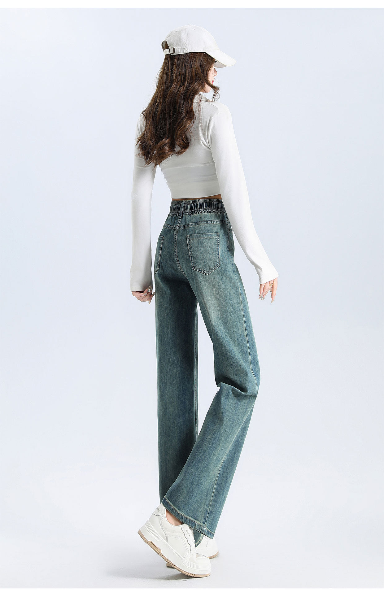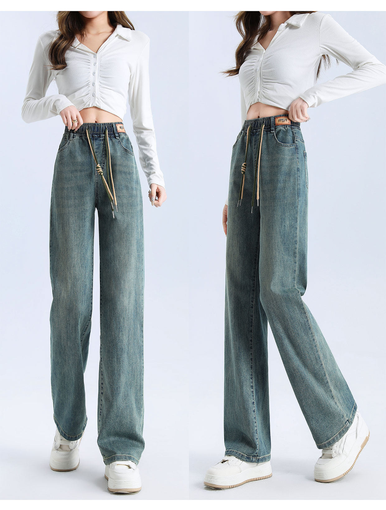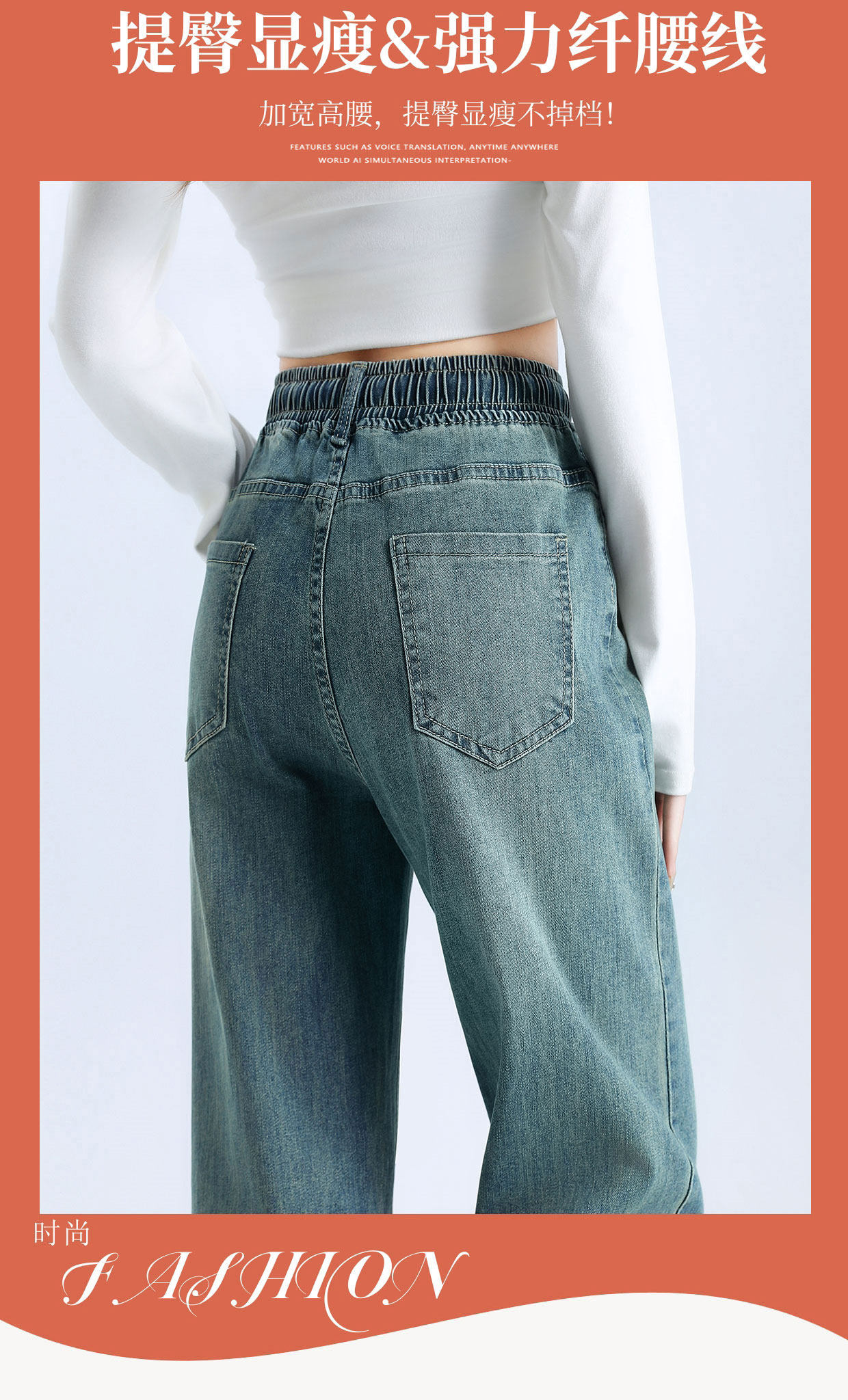松緊腰直筒牛仔褲女春秋季2026新款寬鬆垂感九分窄版濶腿褲子春裝
