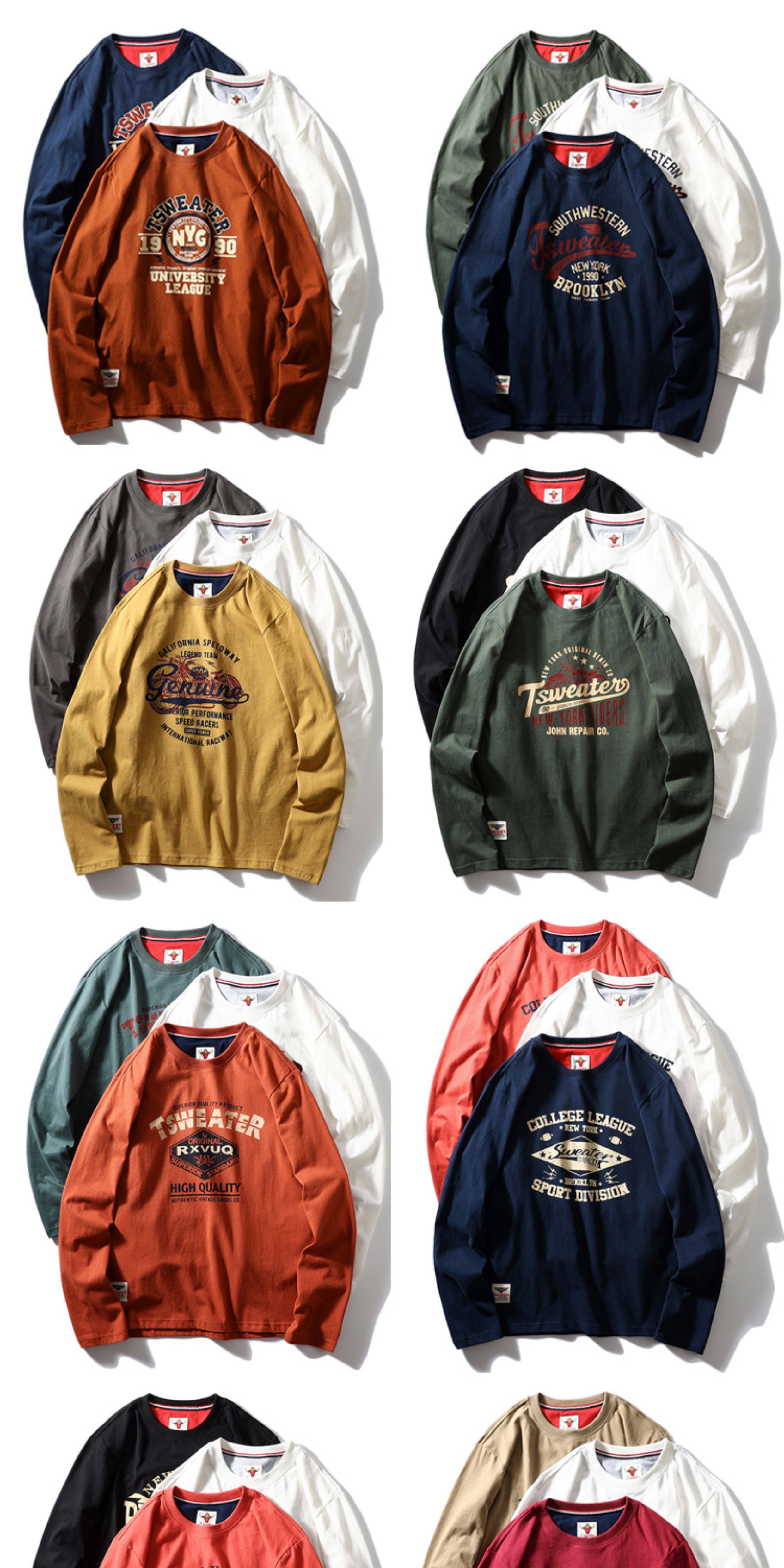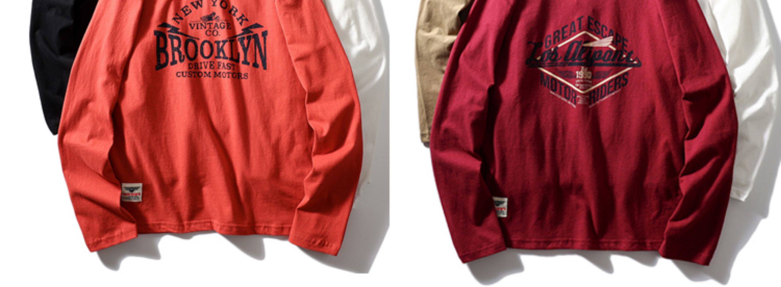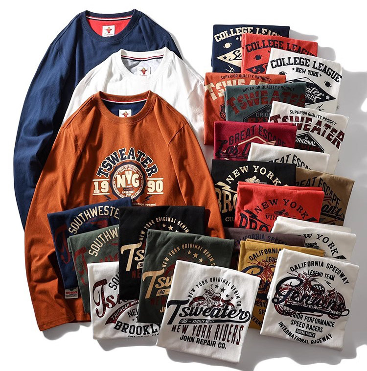 重磅復古!純棉磨毛長袖t恤男 美式休閒圓領打底衫 日系潮流T恤衫