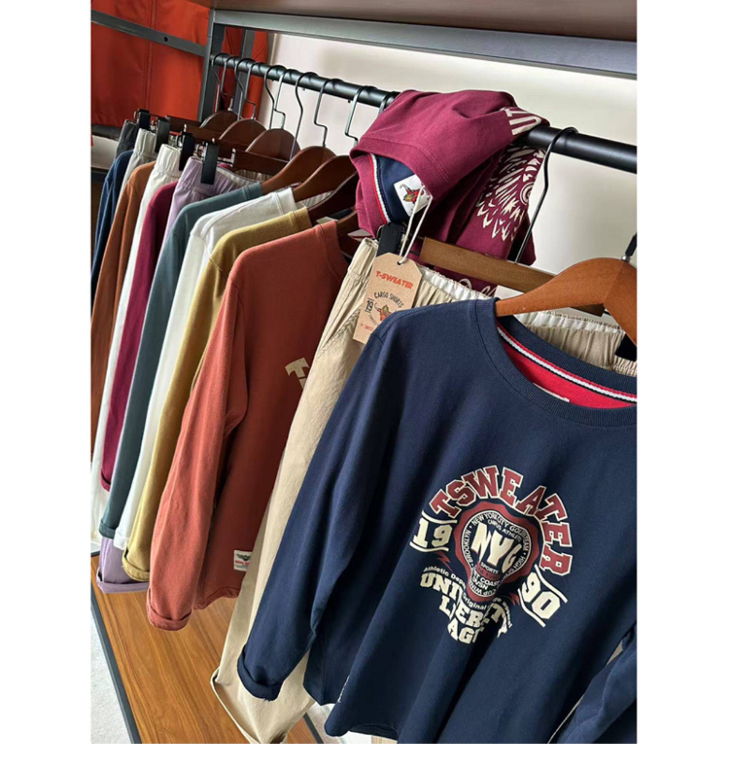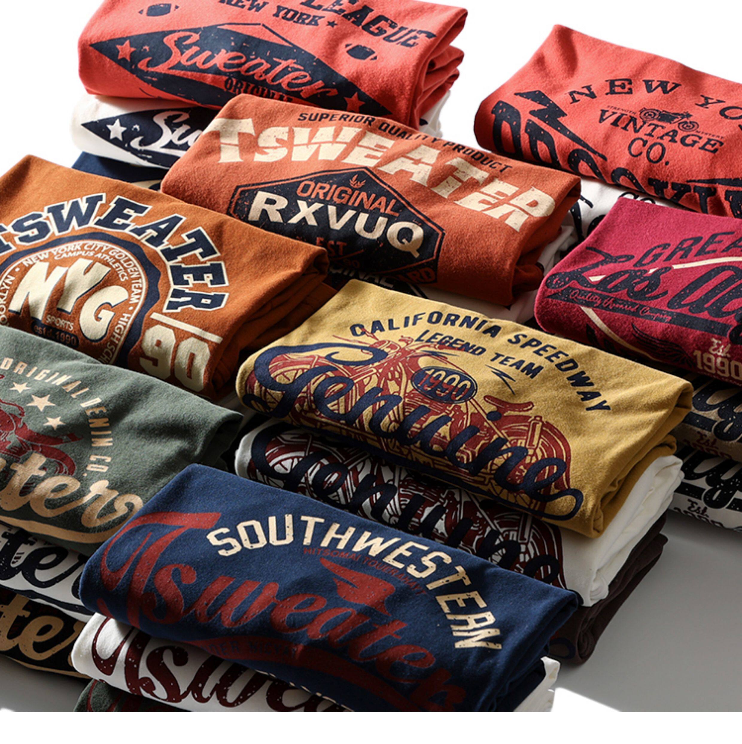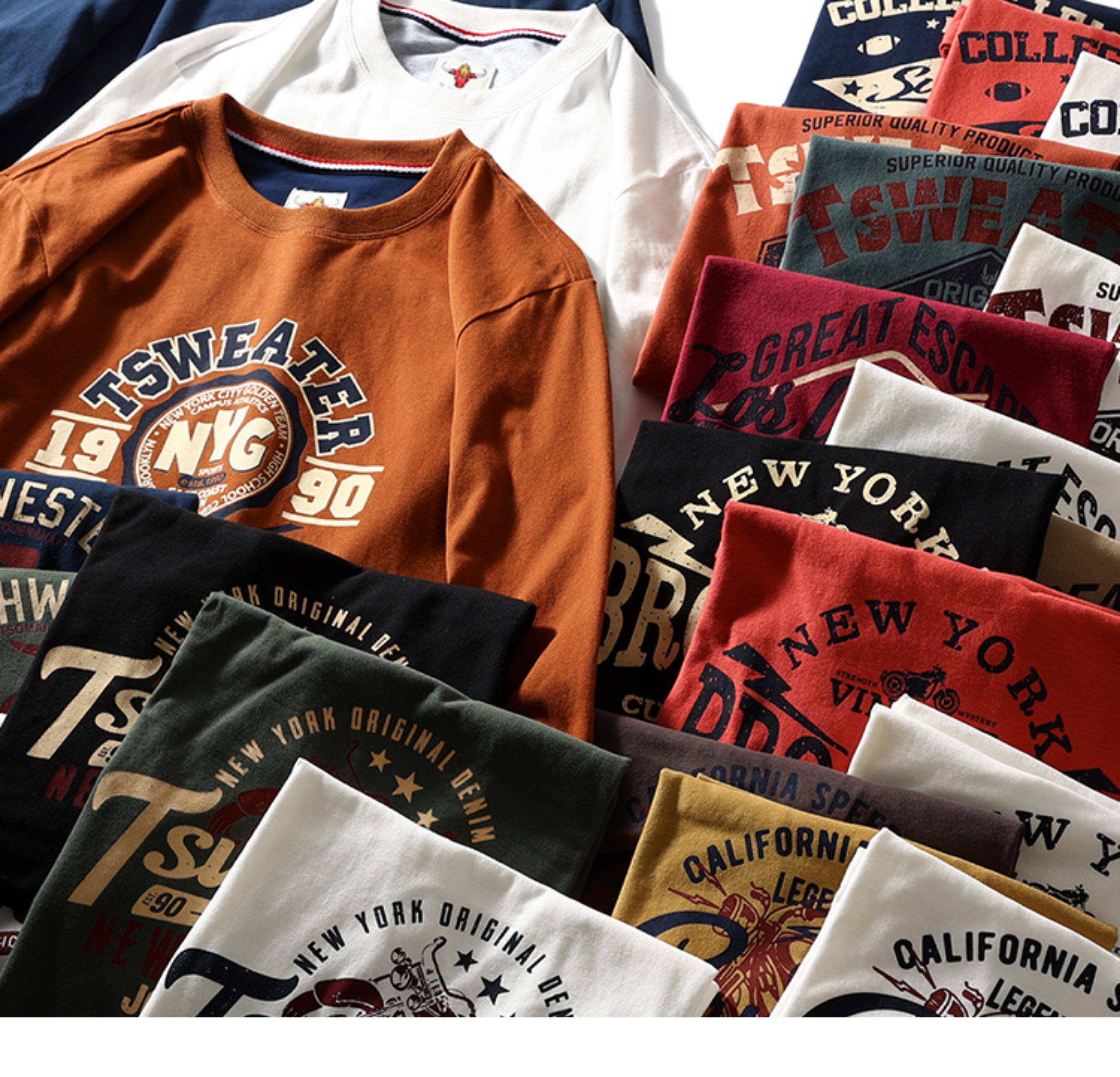 重磅復古!純棉磨毛長袖t恤男 美式休閒圓領打底衫 日系潮流T恤衫