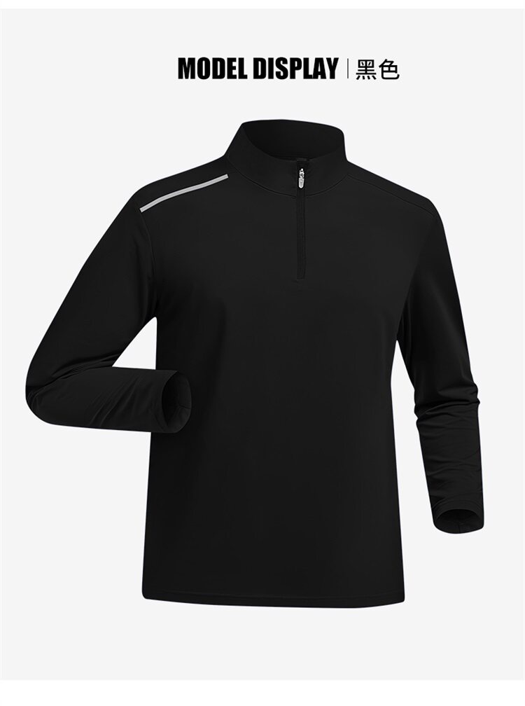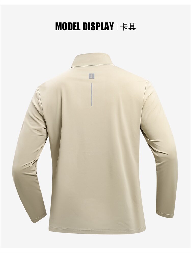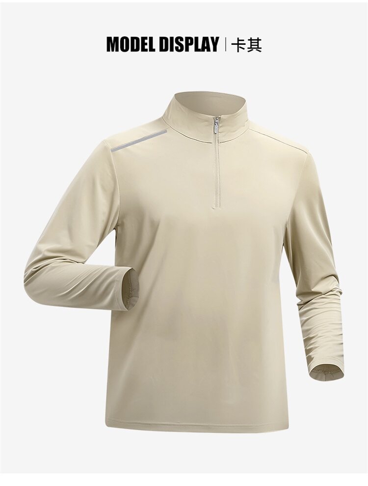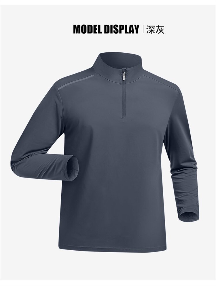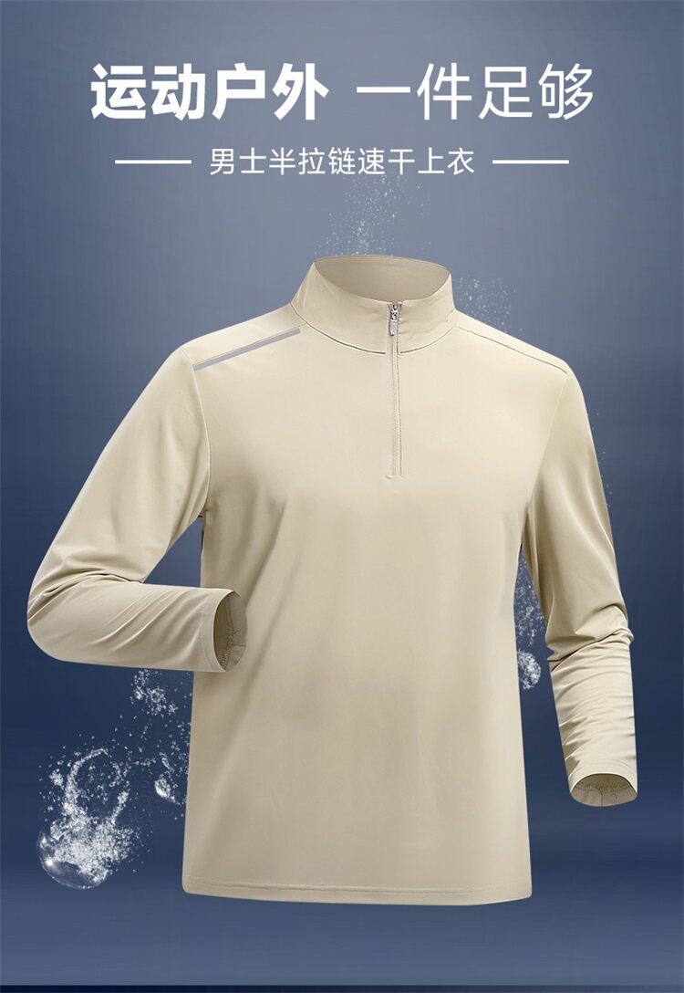 啄木鳥男士薄款速乾彈力半拉鍊立領長袖戶外防曬徒步登山透氣上衣