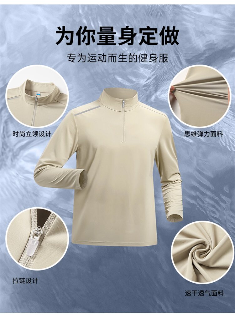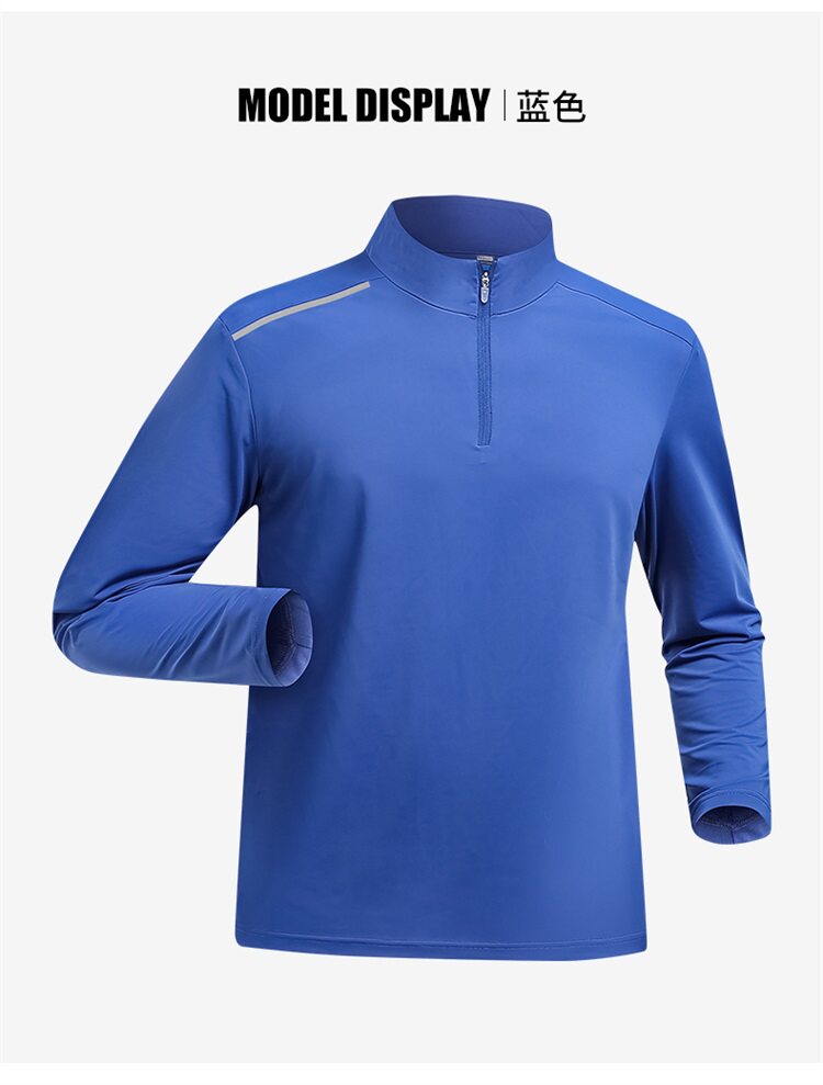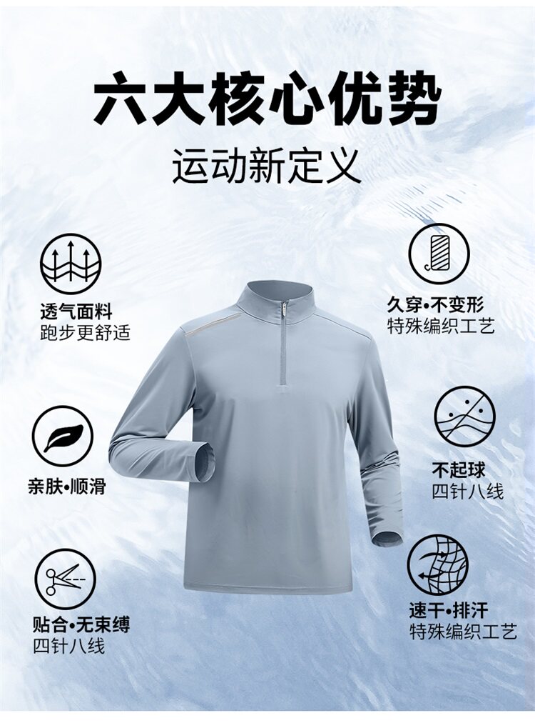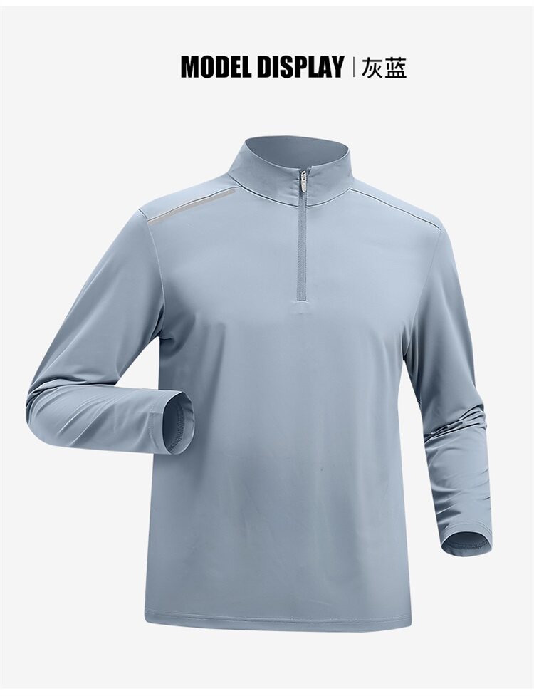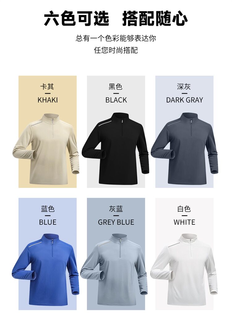 啄木鳥男士薄款速乾彈力半拉鍊立領長袖戶外防曬徒步登山透氣上衣