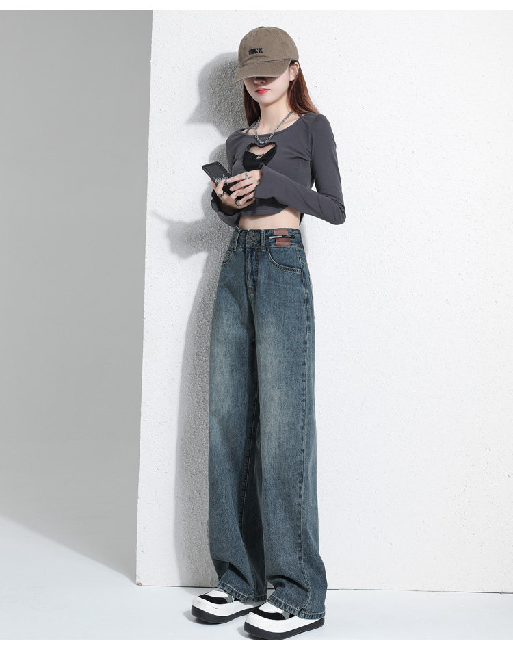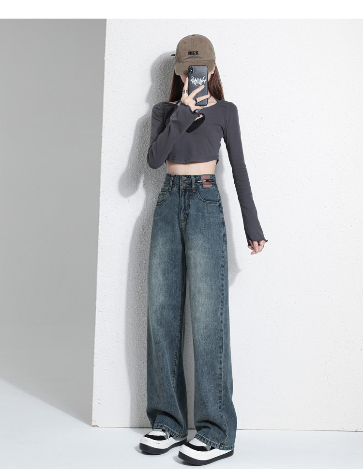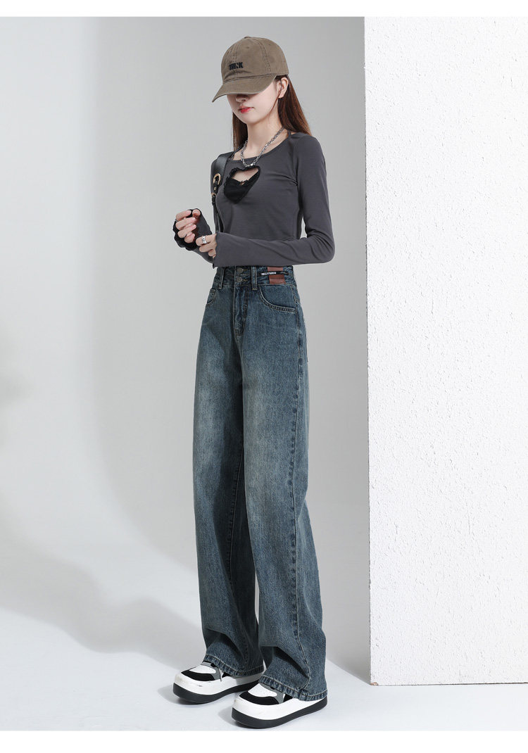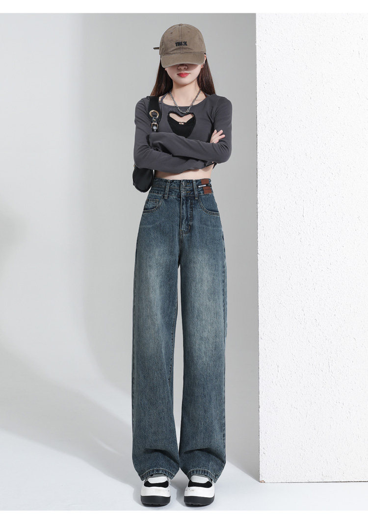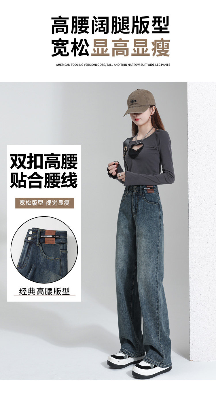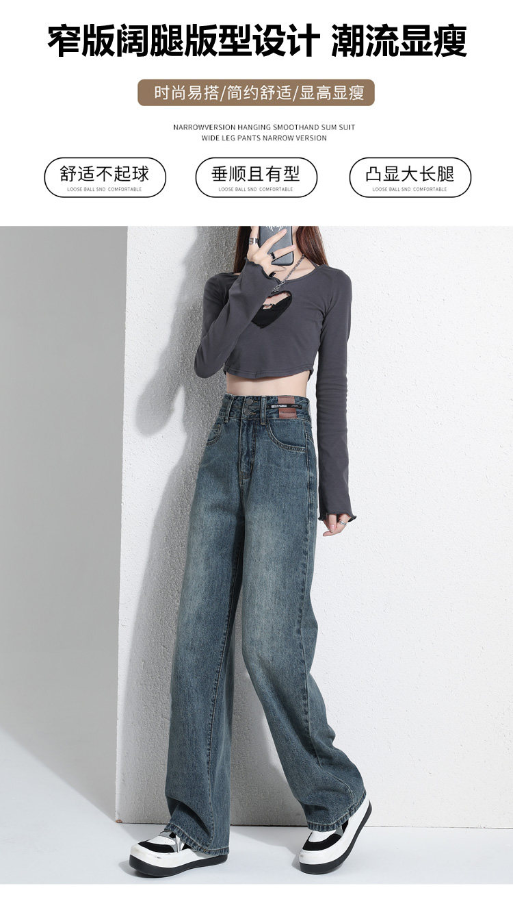 真維斯 JEANS復古窄版濶腿牛仔褲女春季新款高腰顯瘦小個子直筒褲