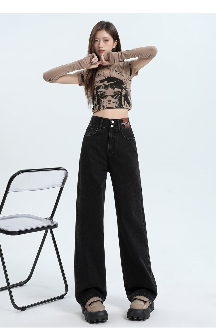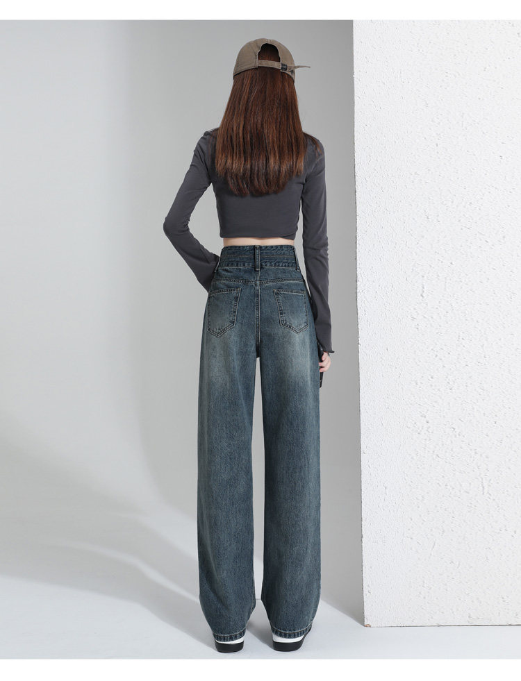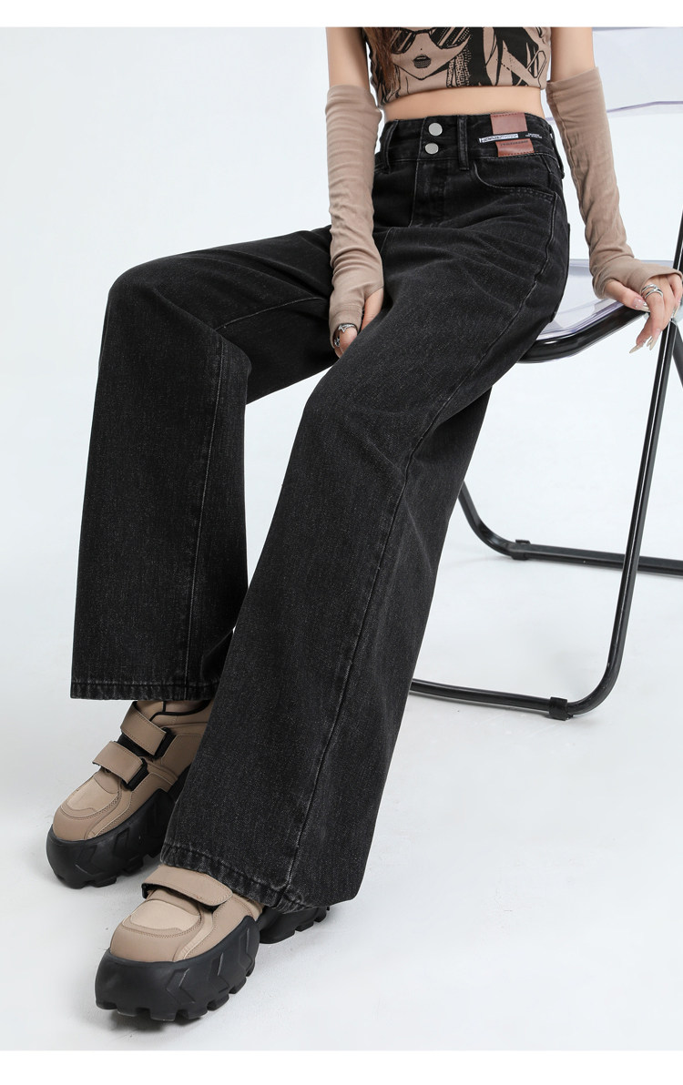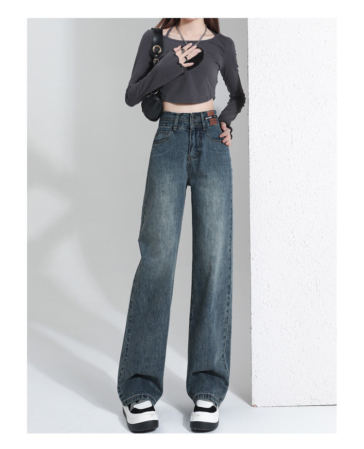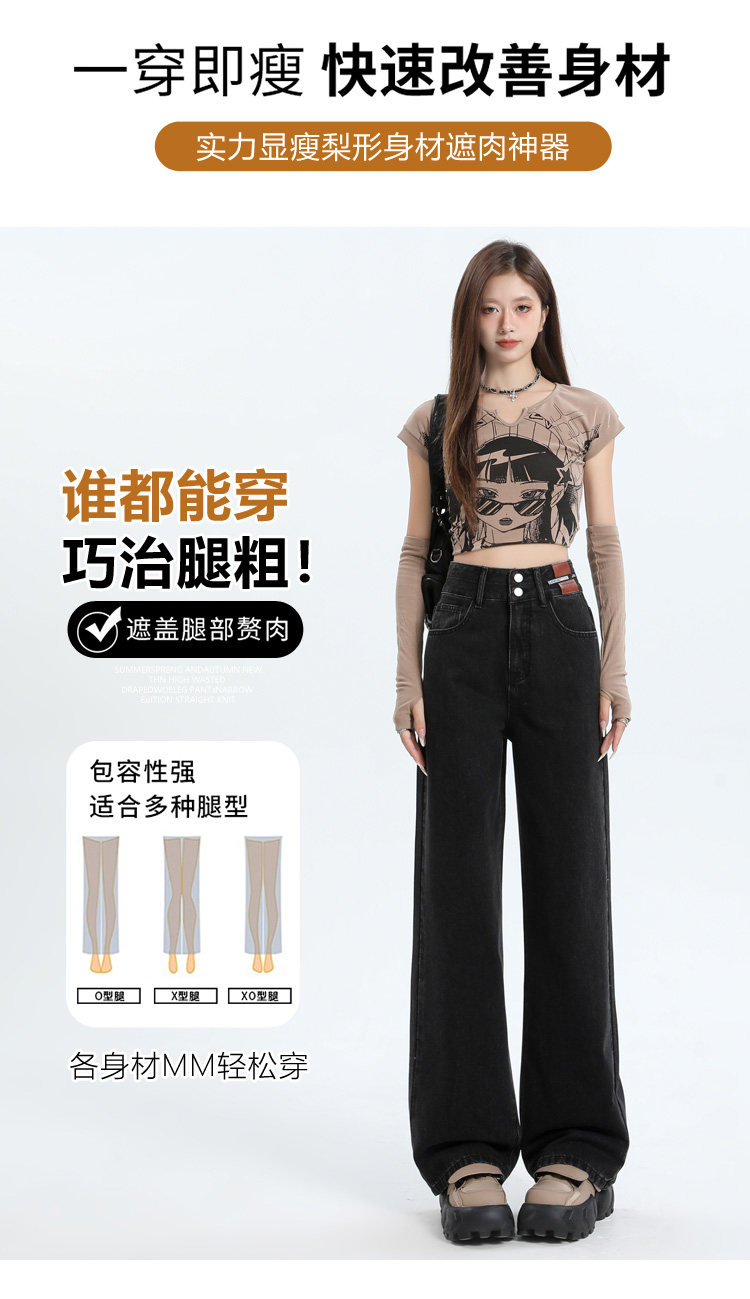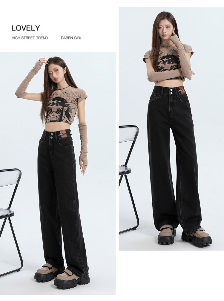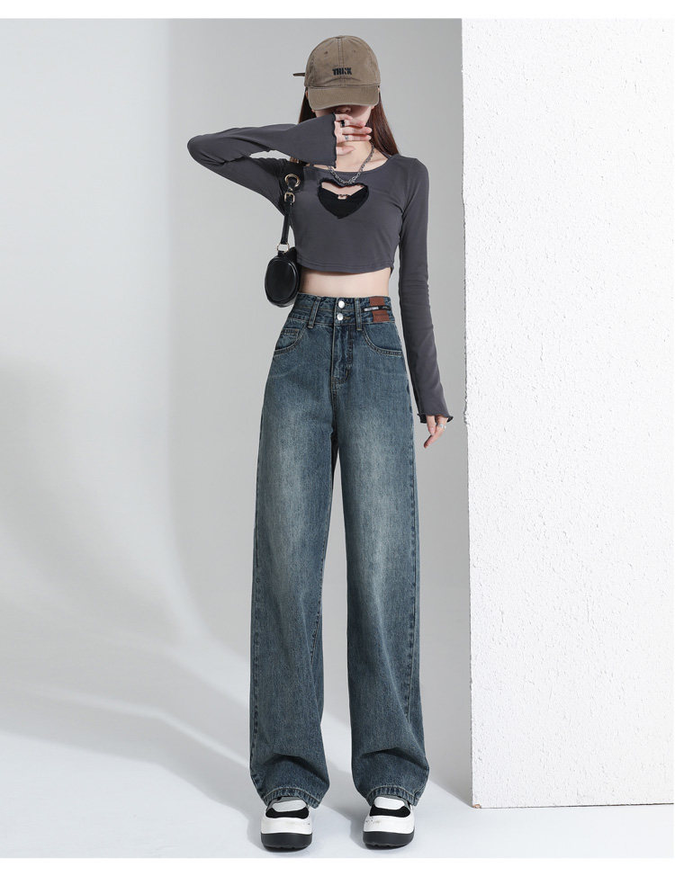 真維斯 JEANS復古窄版濶腿牛仔褲女春季新款高腰顯瘦小個子直筒褲
