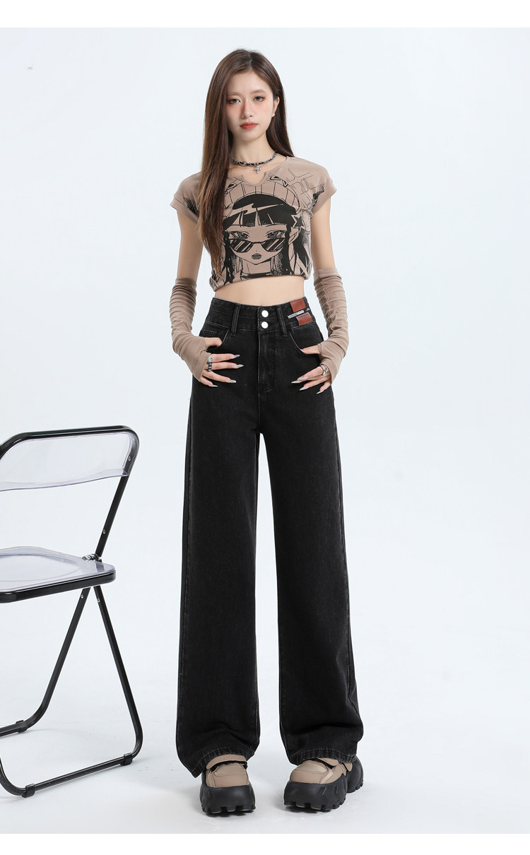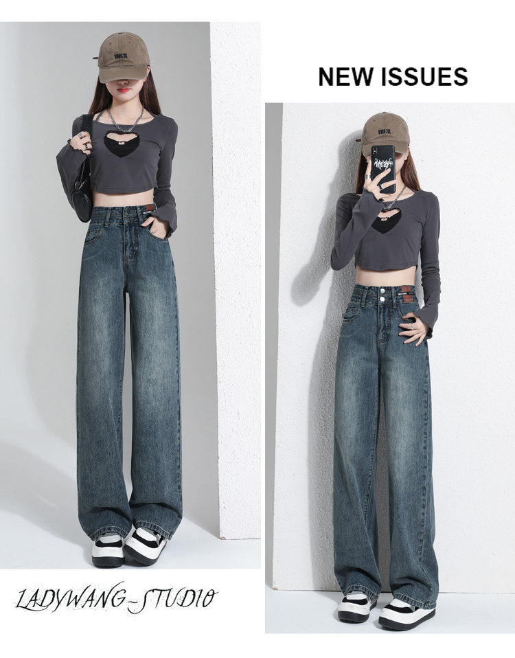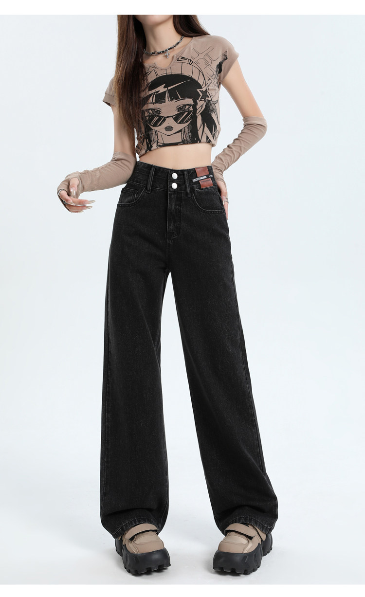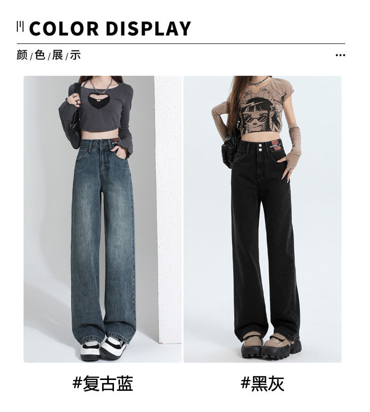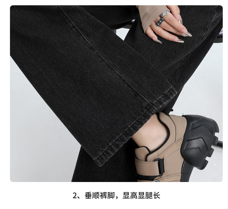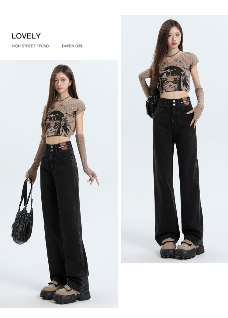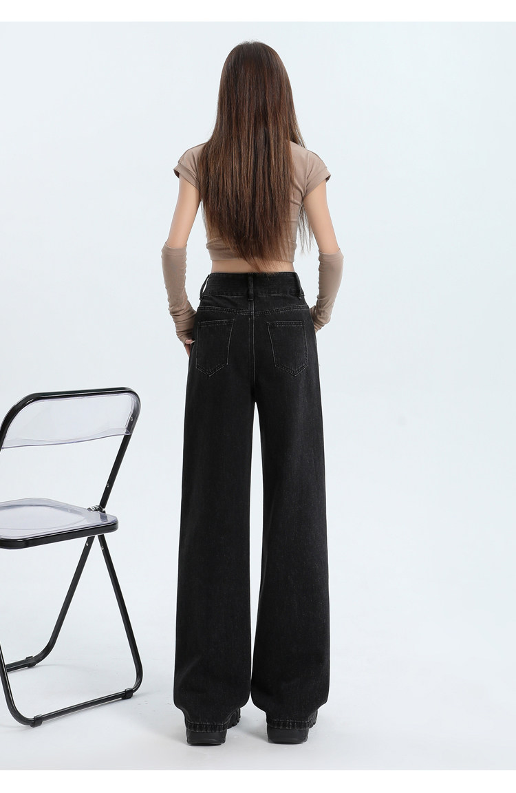 真維斯 JEANS復古窄版濶腿牛仔褲女春季新款高腰顯瘦小個子直筒褲