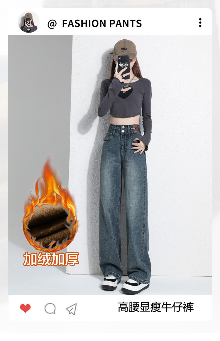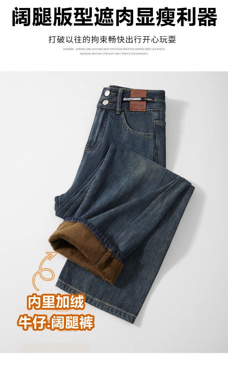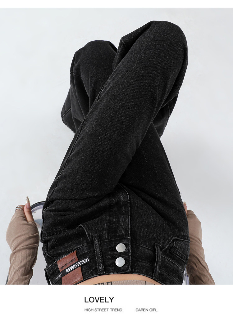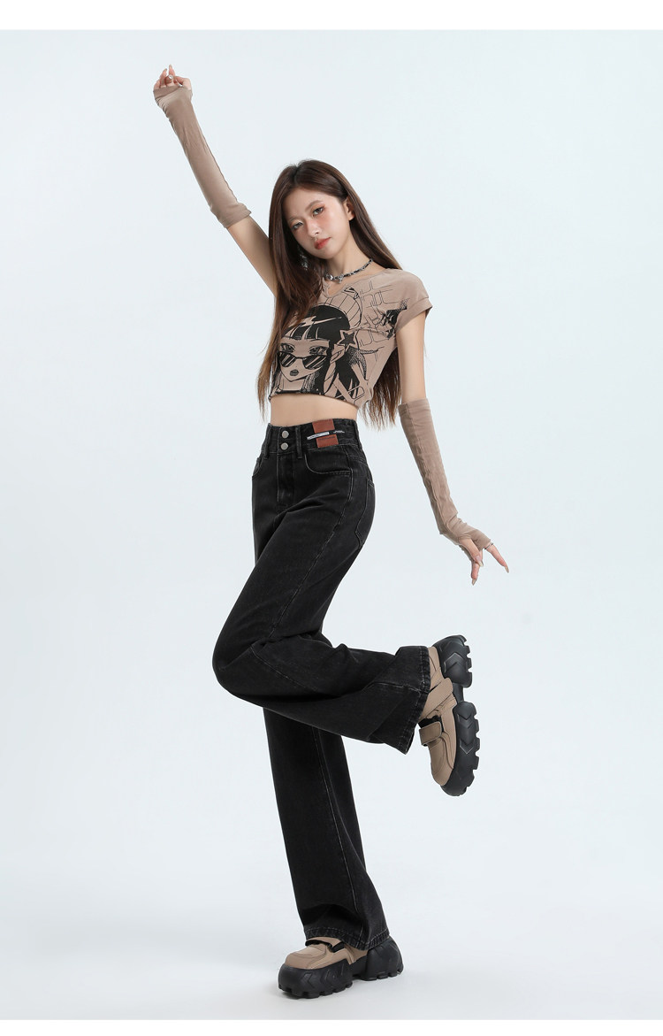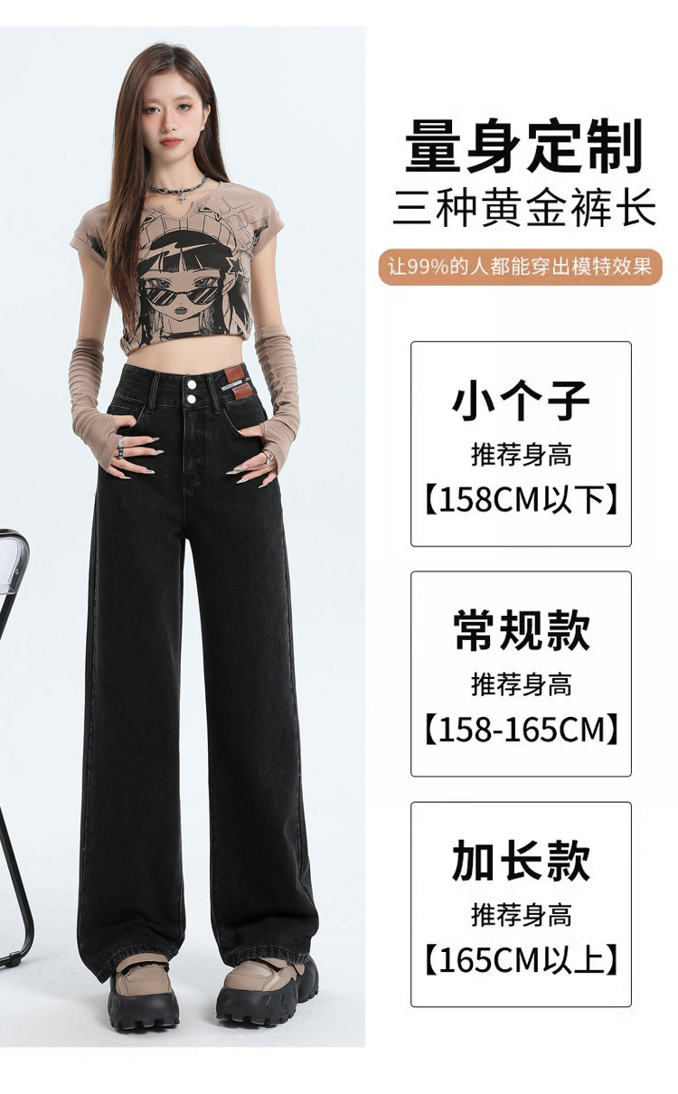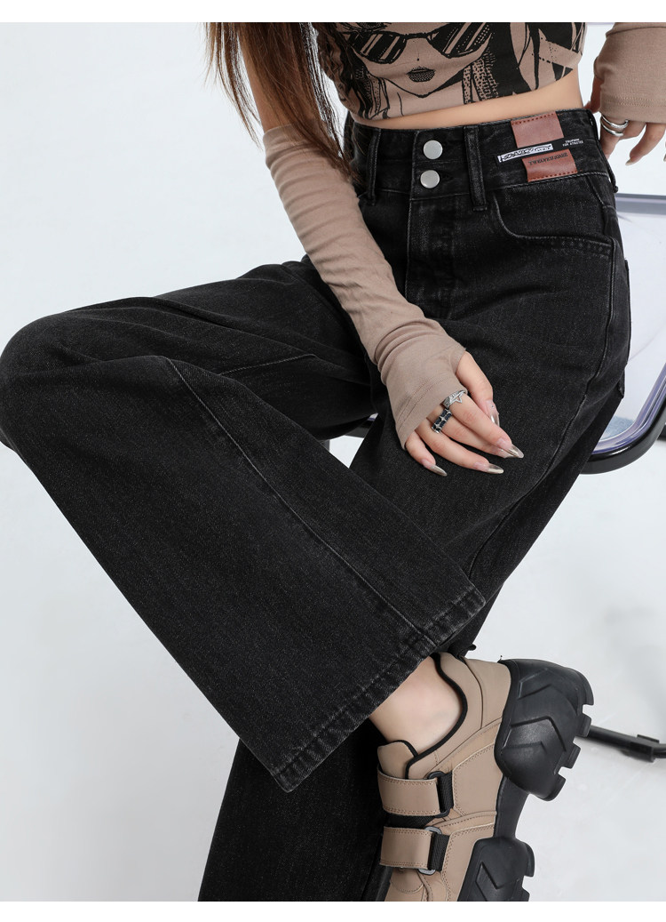 真維斯 JEANS復古窄版濶腿牛仔褲女春季新款高腰顯瘦小個子直筒褲