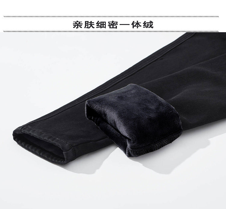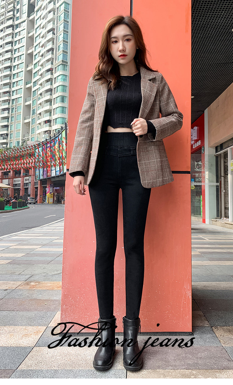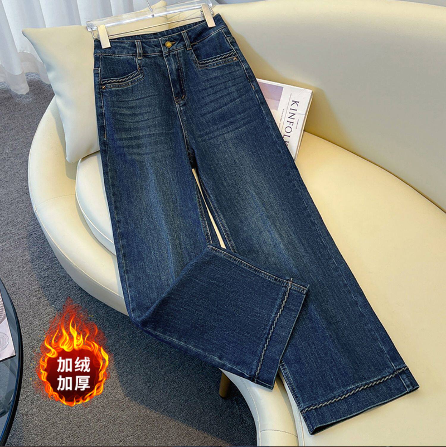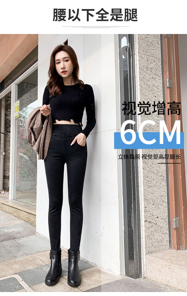 松緊腰高腰加絨牛仔褲女2025新款秋冬季胖mm大碼緊身顯瘦黑色褲子