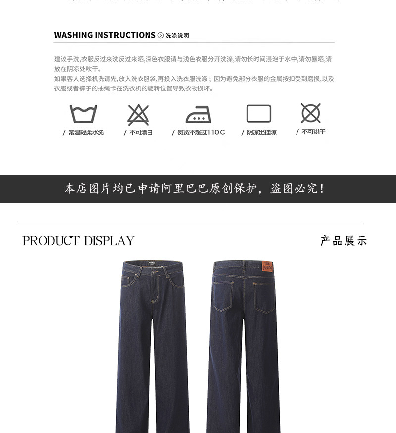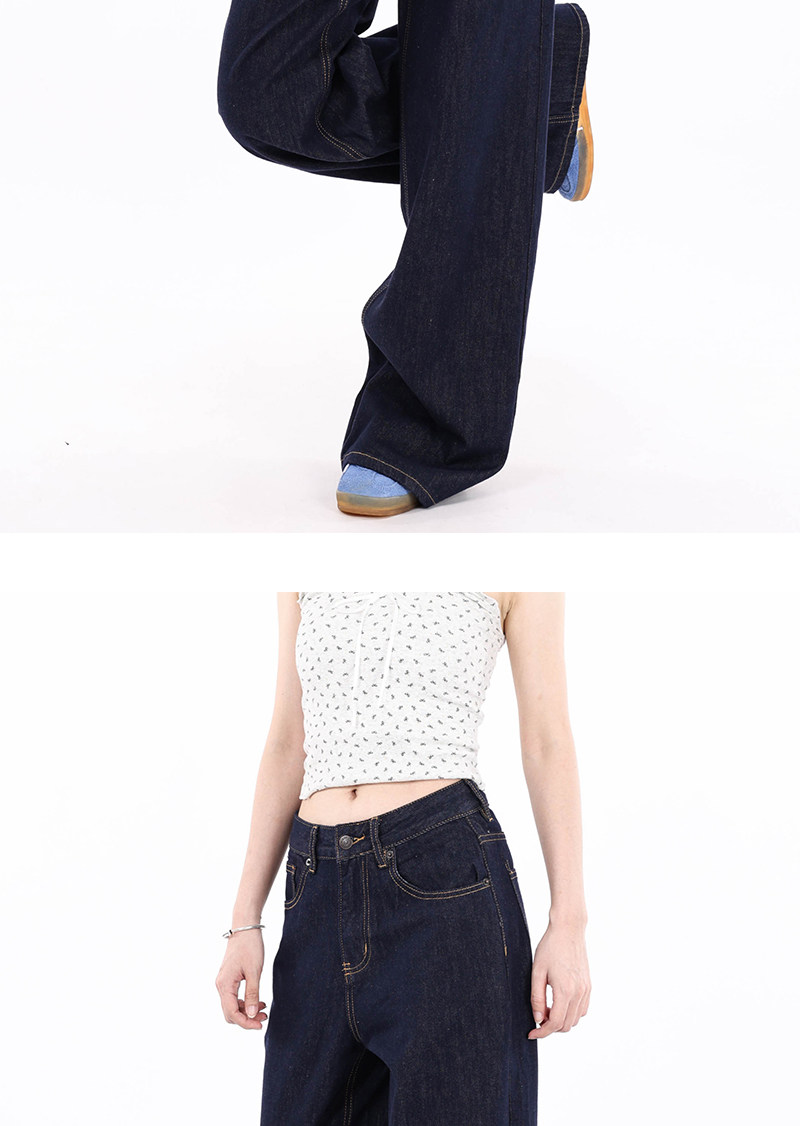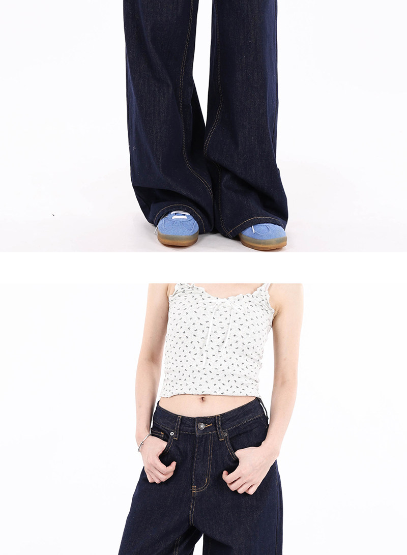 Free Sonata復古丹甯直筒寬鬆濶腿牛仔褲男女靛藍cleanfit休閒褲