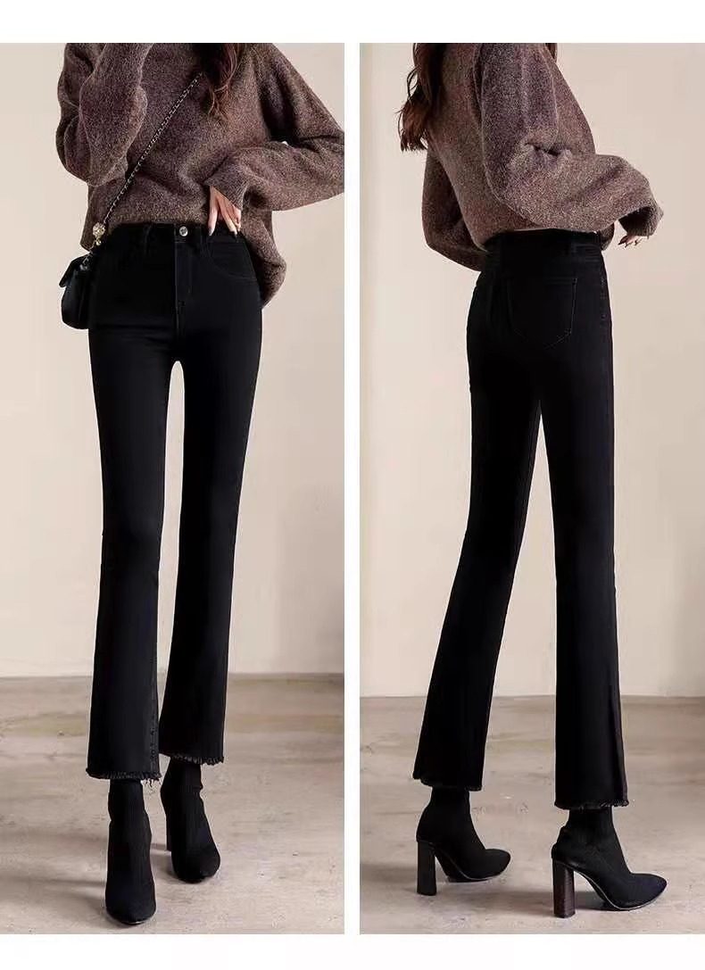 高腰微喇牛仔褲女2026年春秋新款爆款秋冬加絨小個子女士喇叭褲子