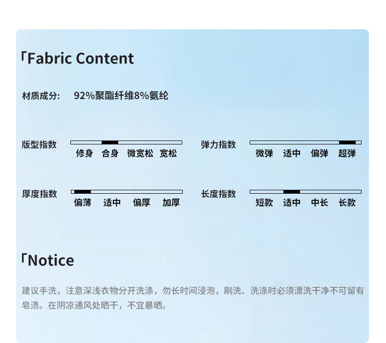 | 材質成分 | 聚酯纖維92% 聚氨酯彈性纖維(氨綸)8% |