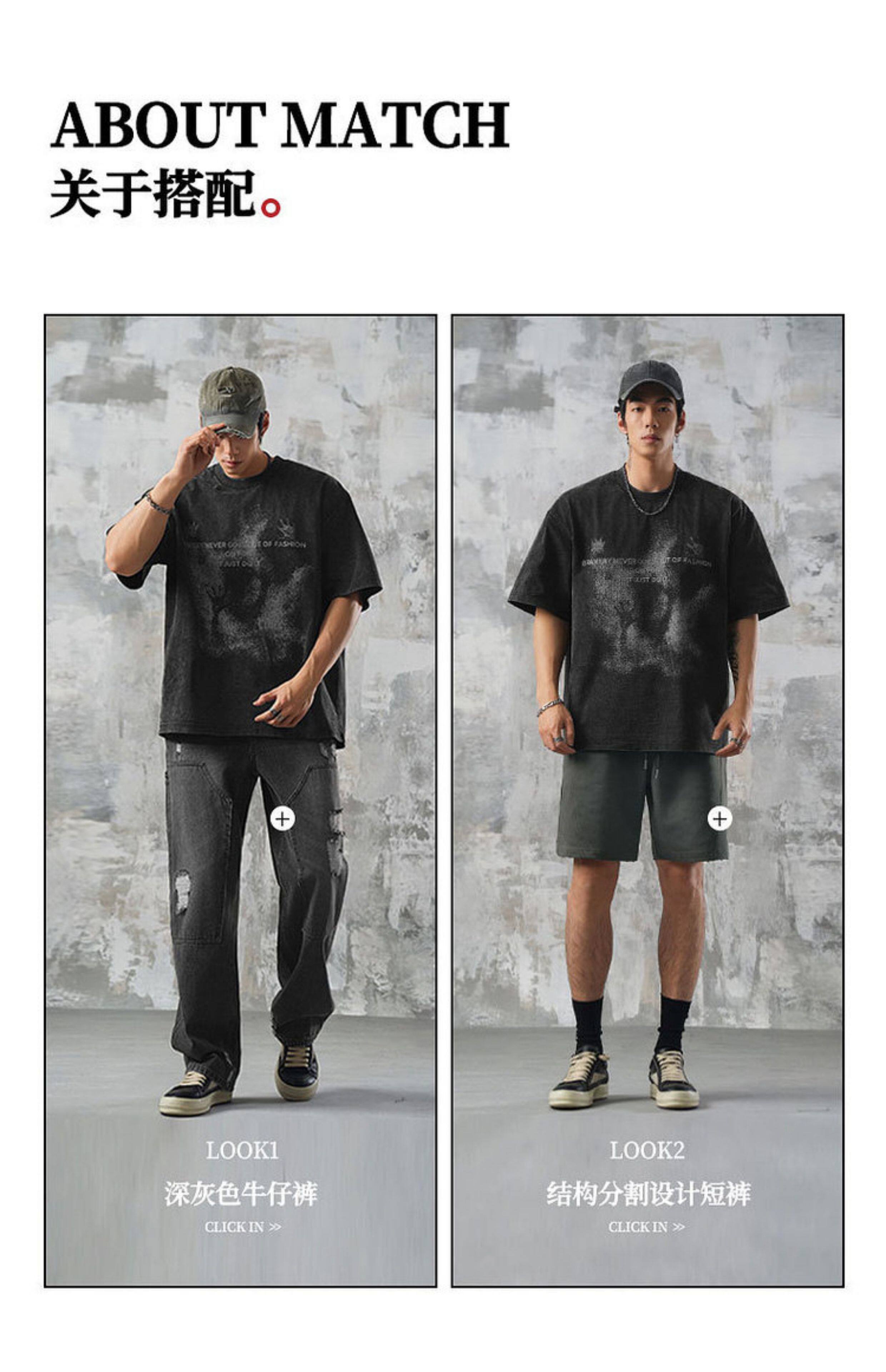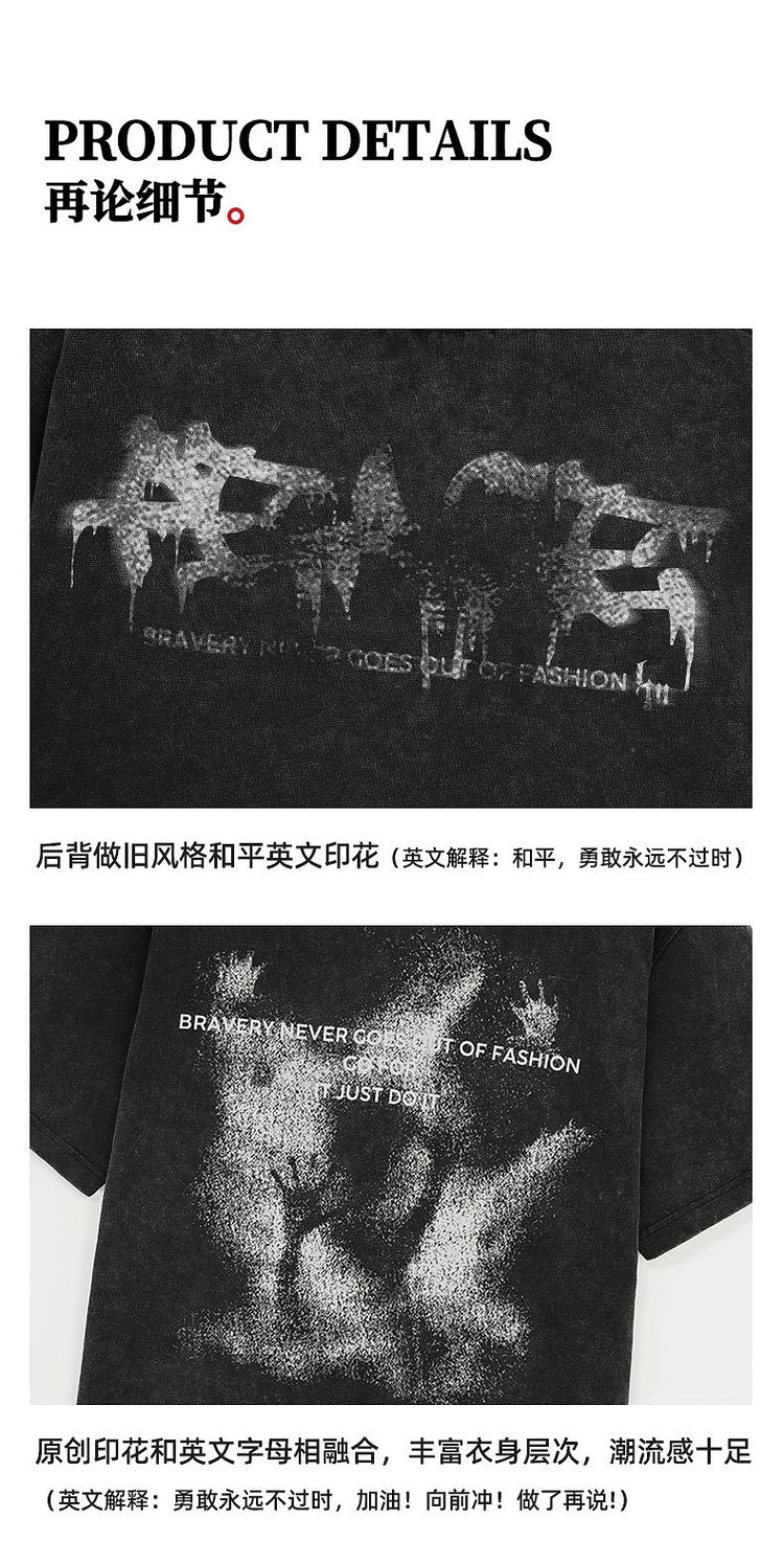 鹿家門炒色短袖男夏季新款男T恤美式高街休閒寬鬆大碼打底衫男款