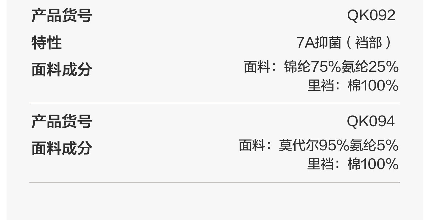 | 內衣質地 | 莫代爾 |