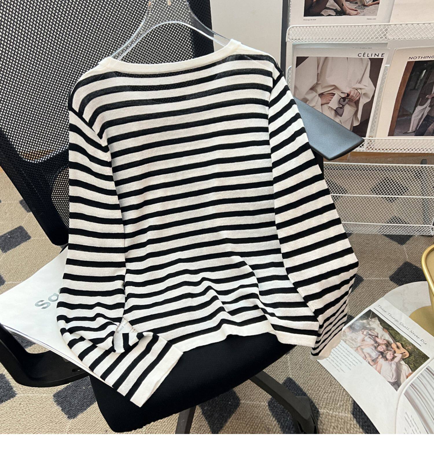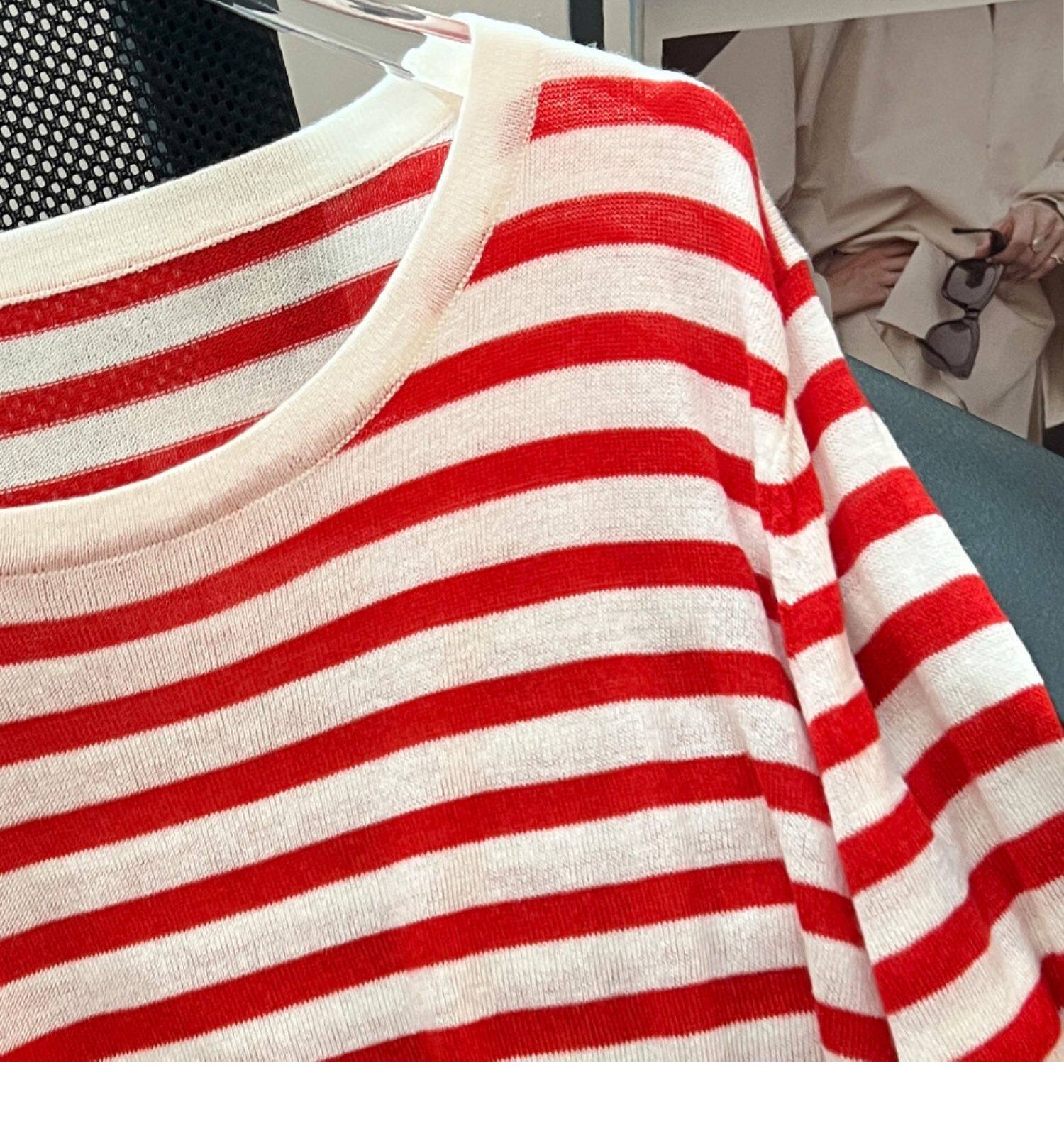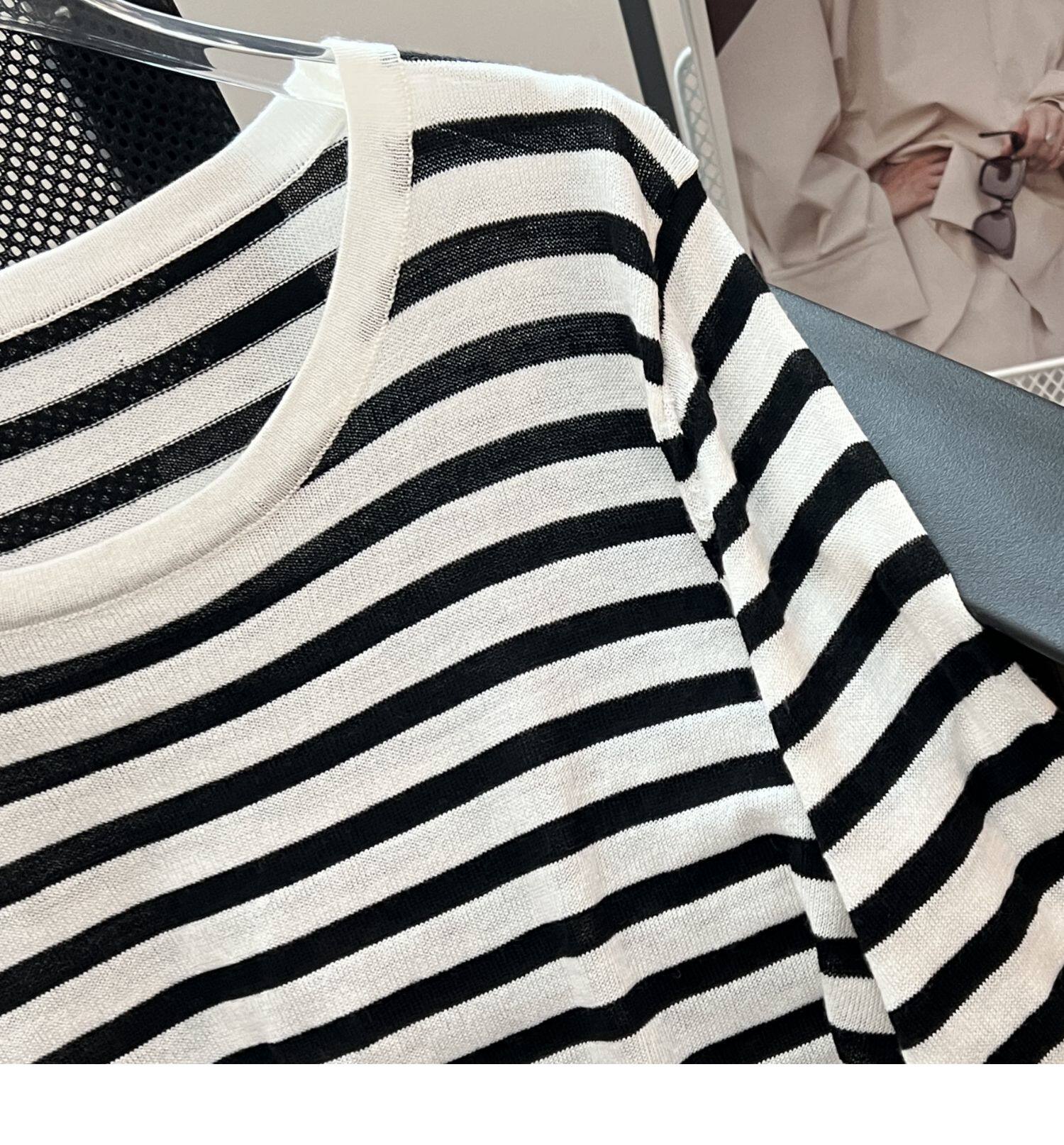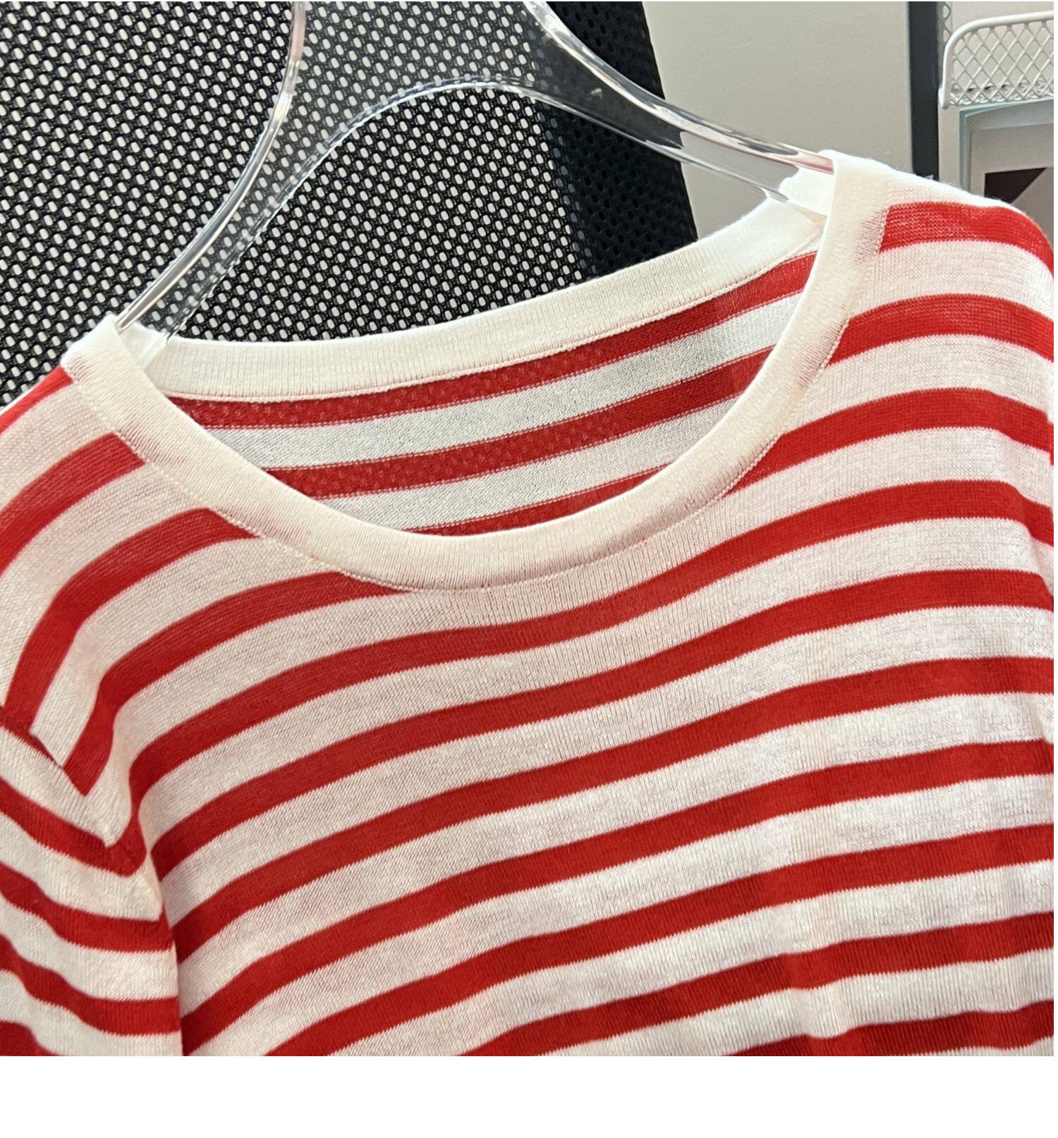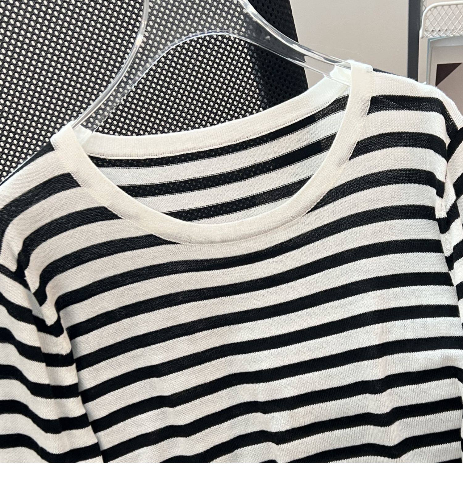 【旅行藝術】萊賽爾天絲2026春夏新款休閒長袖條紋針織衫女打底衫